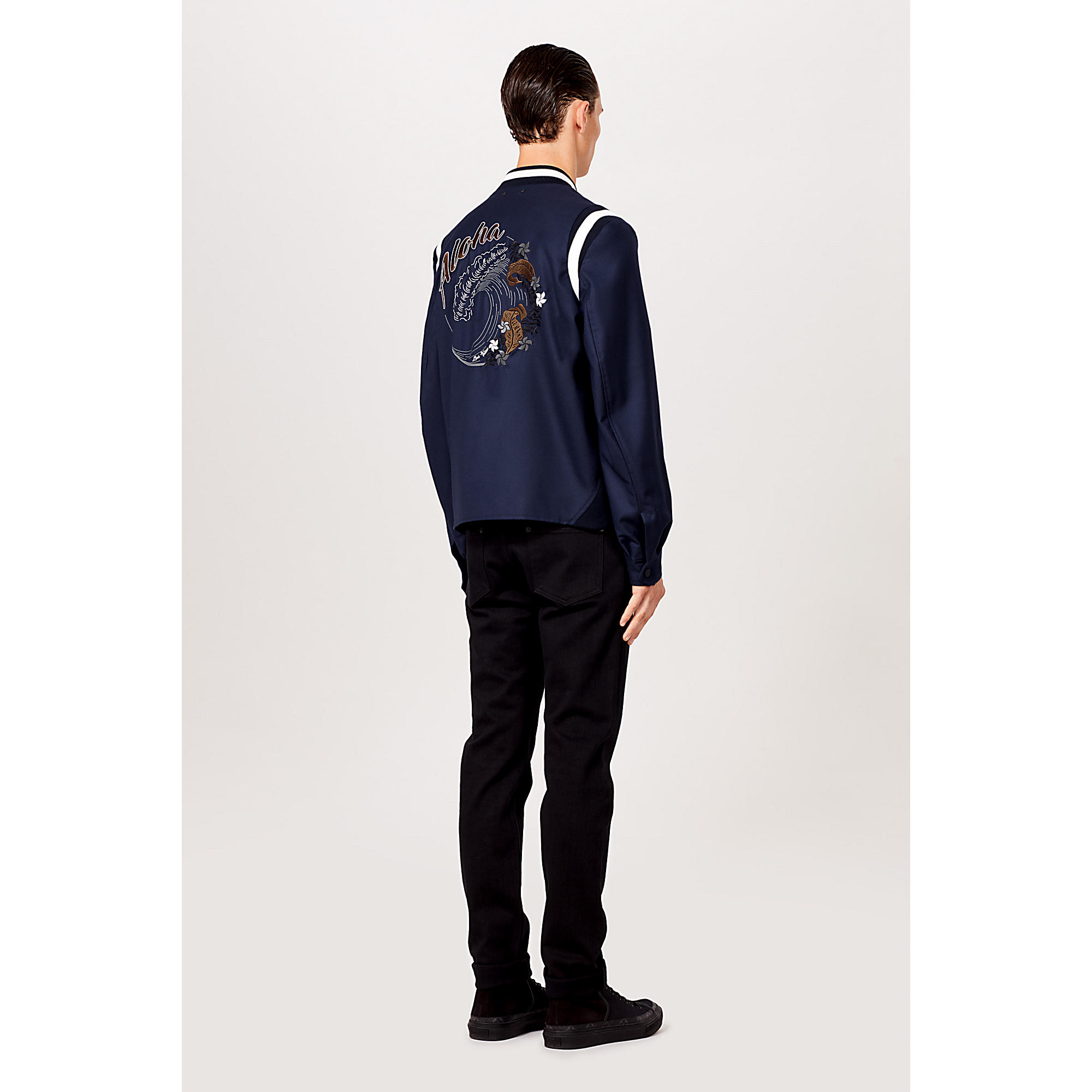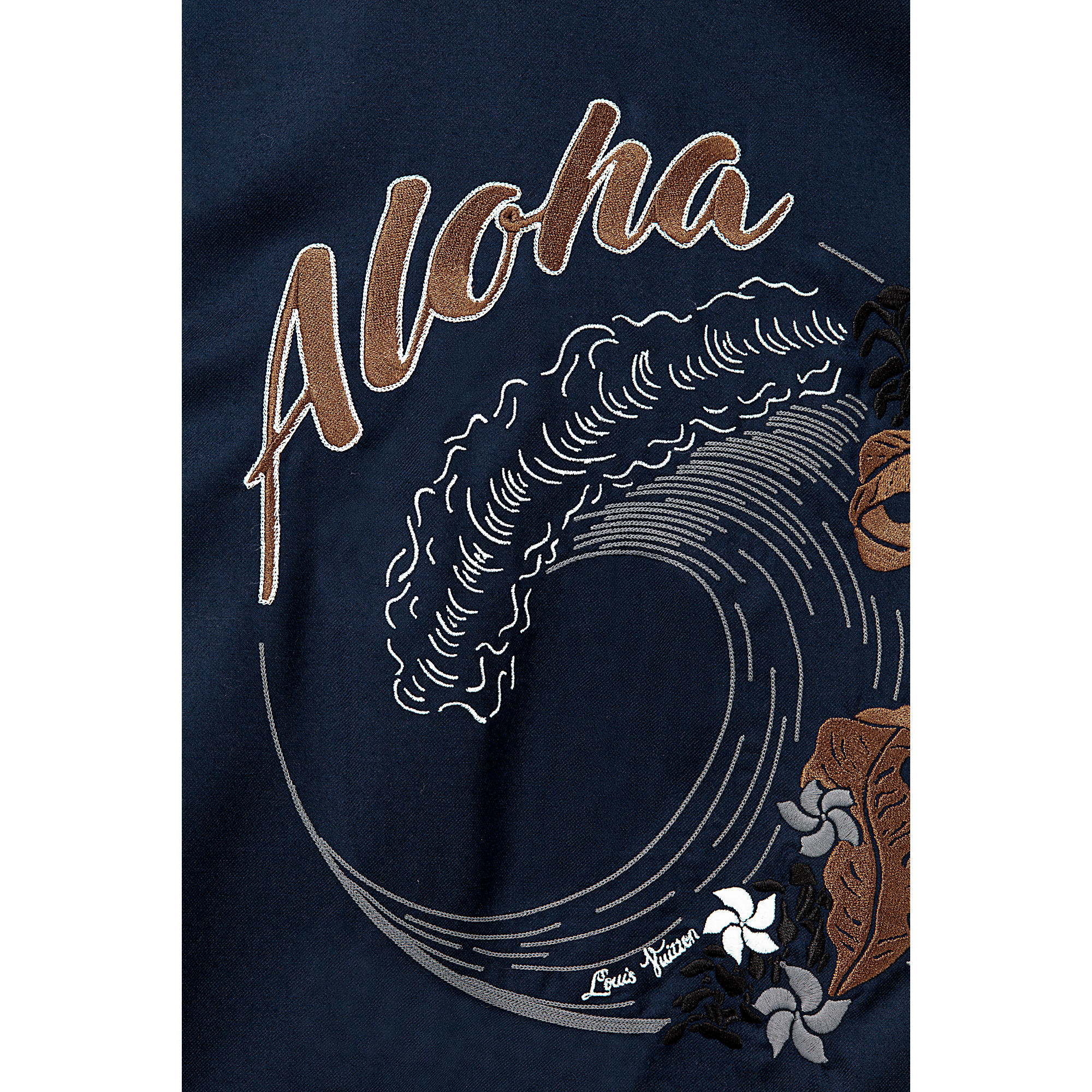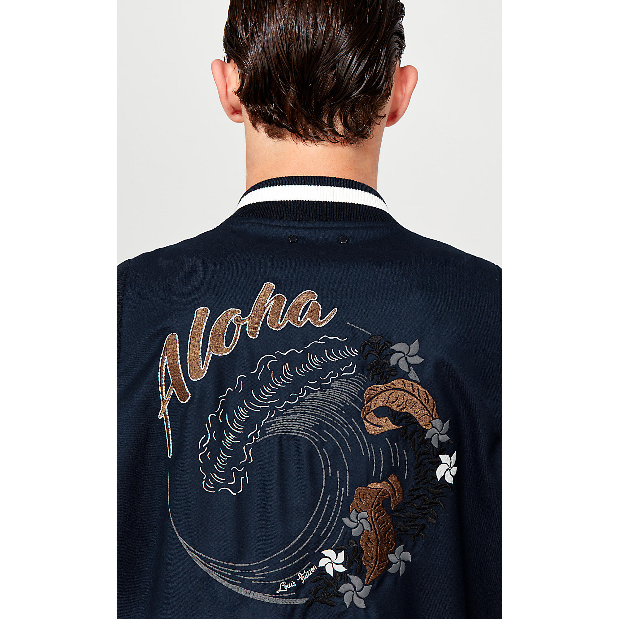 Embroidered with the season’s emblematic Aloha motif, this varsity jacket combines iconic casual wear with a distinctive Venice Beach vibe. Contrasting ribs on the collar and shoulders and a cotton poplin lining add to the summery feel.