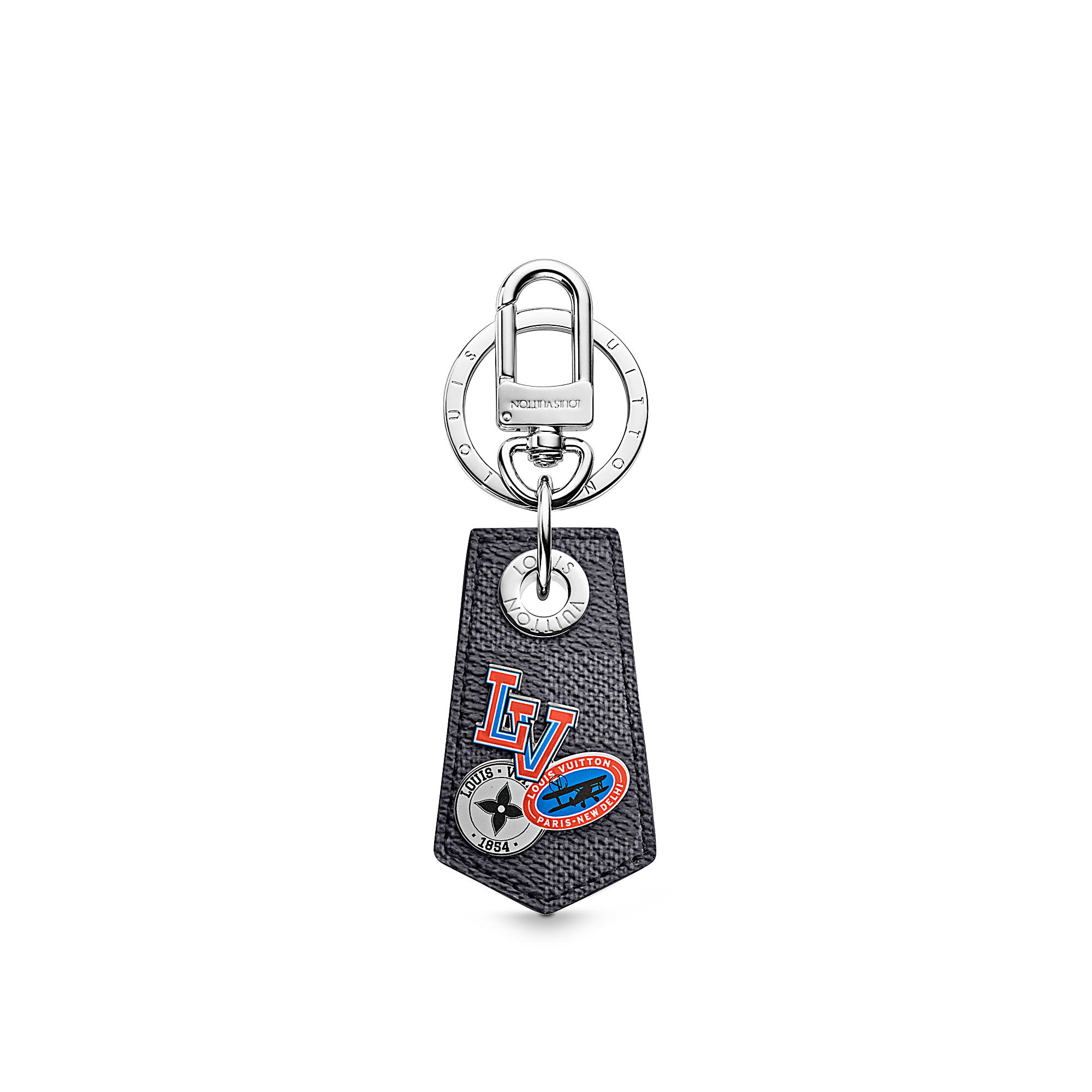 This versatile bag charm and key ring recalls the distinctive handle mounts on classic Louis Vuitton leather goods. This season, the Damier Graphite canvas is decorated with “college spirit” pins. A capital choice for gifting, it can be personalised as well.