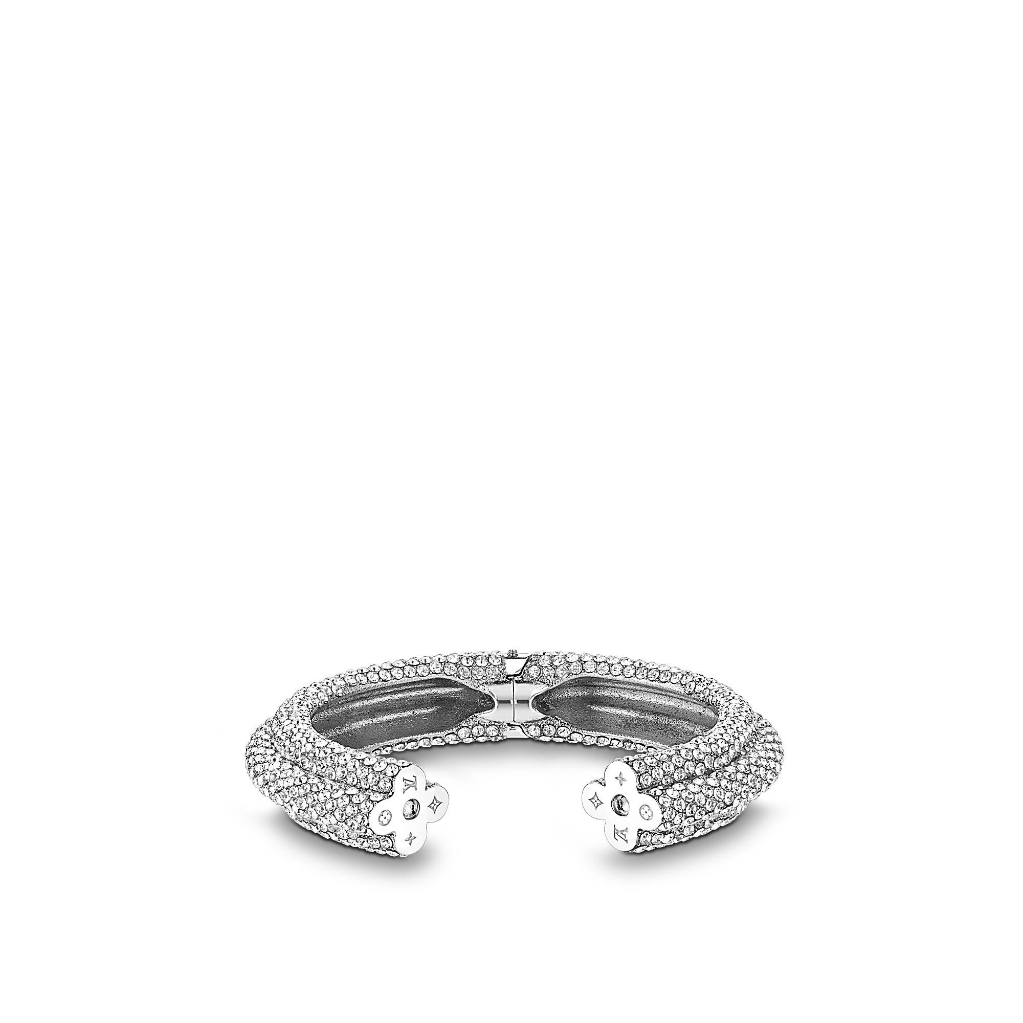 Fast Flower reinterprets the Maison’s iconic Monogram Flower in pure and graphic lines, tinted with Art Deco. Featuring highly feminine strass micro-paving, this delicate cuff bracelet is an ideal piece to mix-and-match.