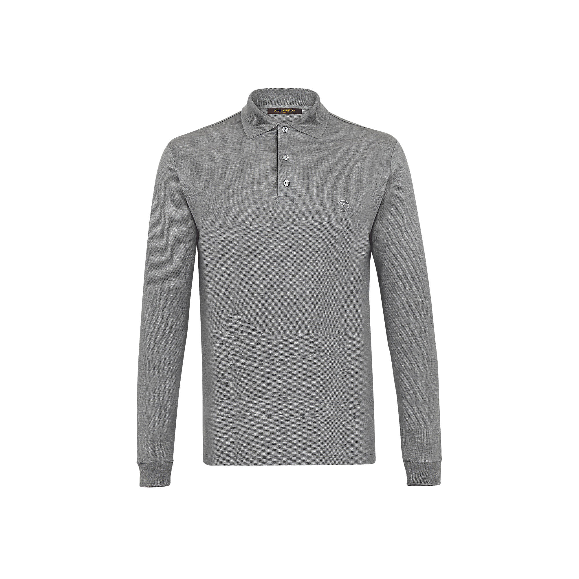An elegant polo shirt whose fil à fil cotton fabric contributes a small striped motif and adorned with a LV embroidery on the chest.
