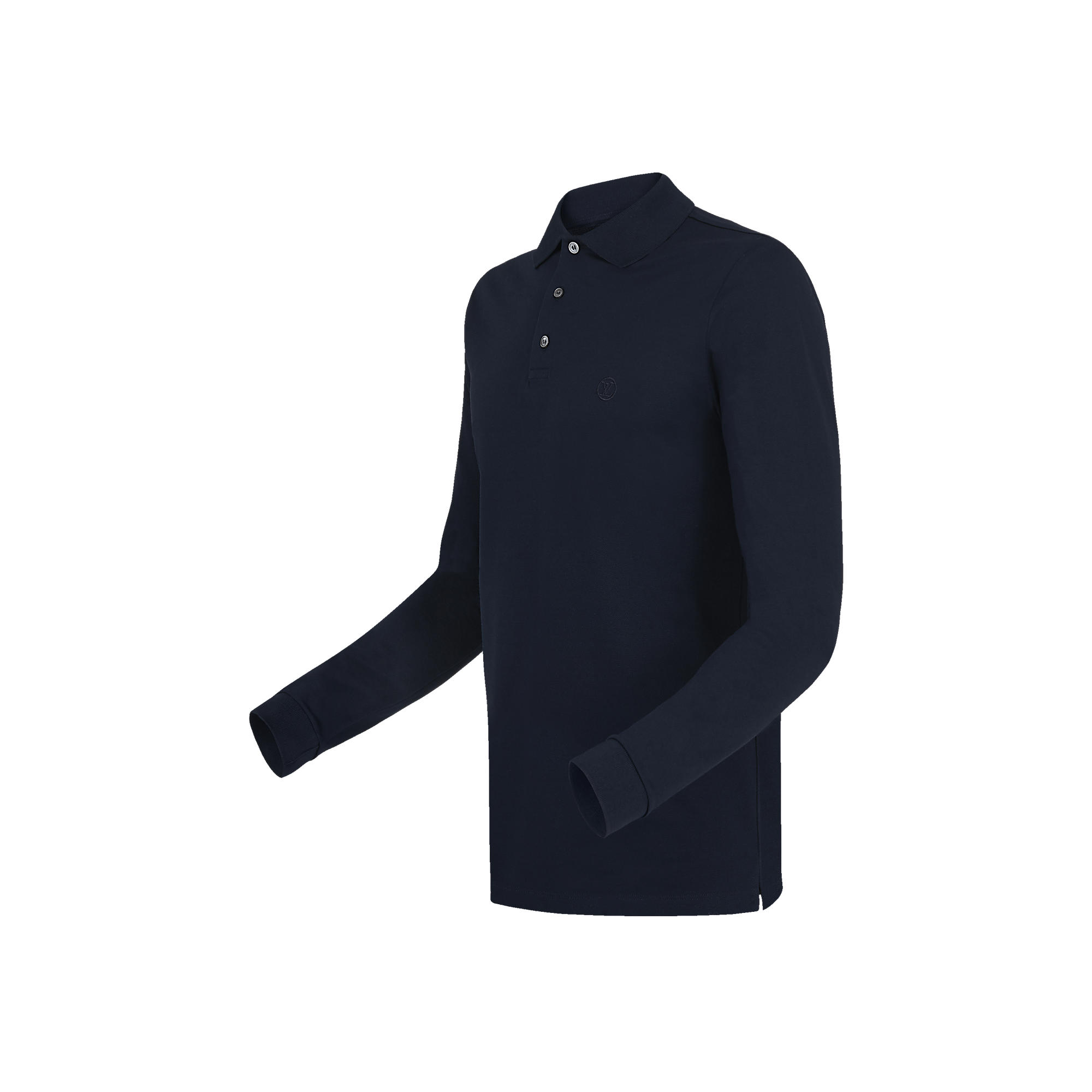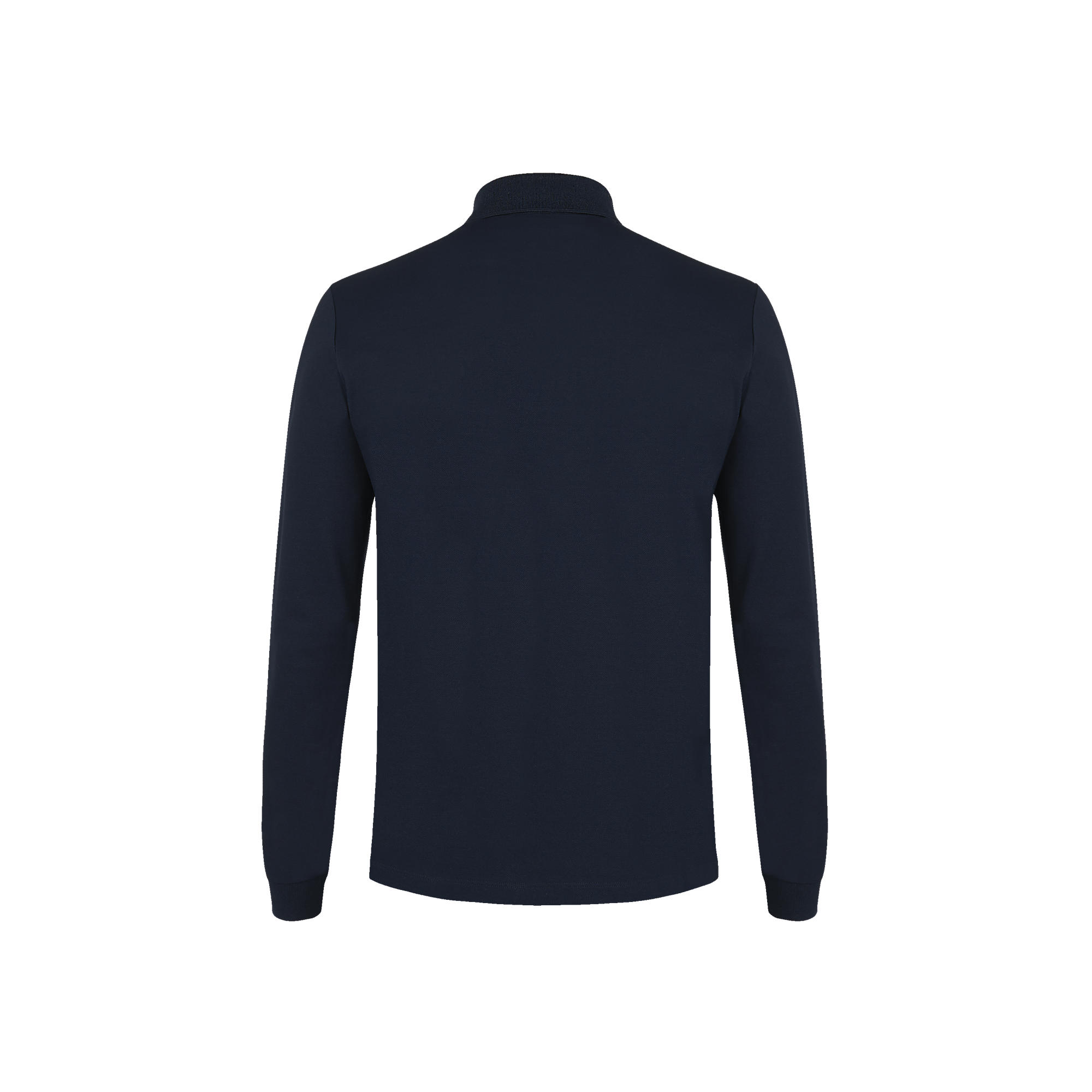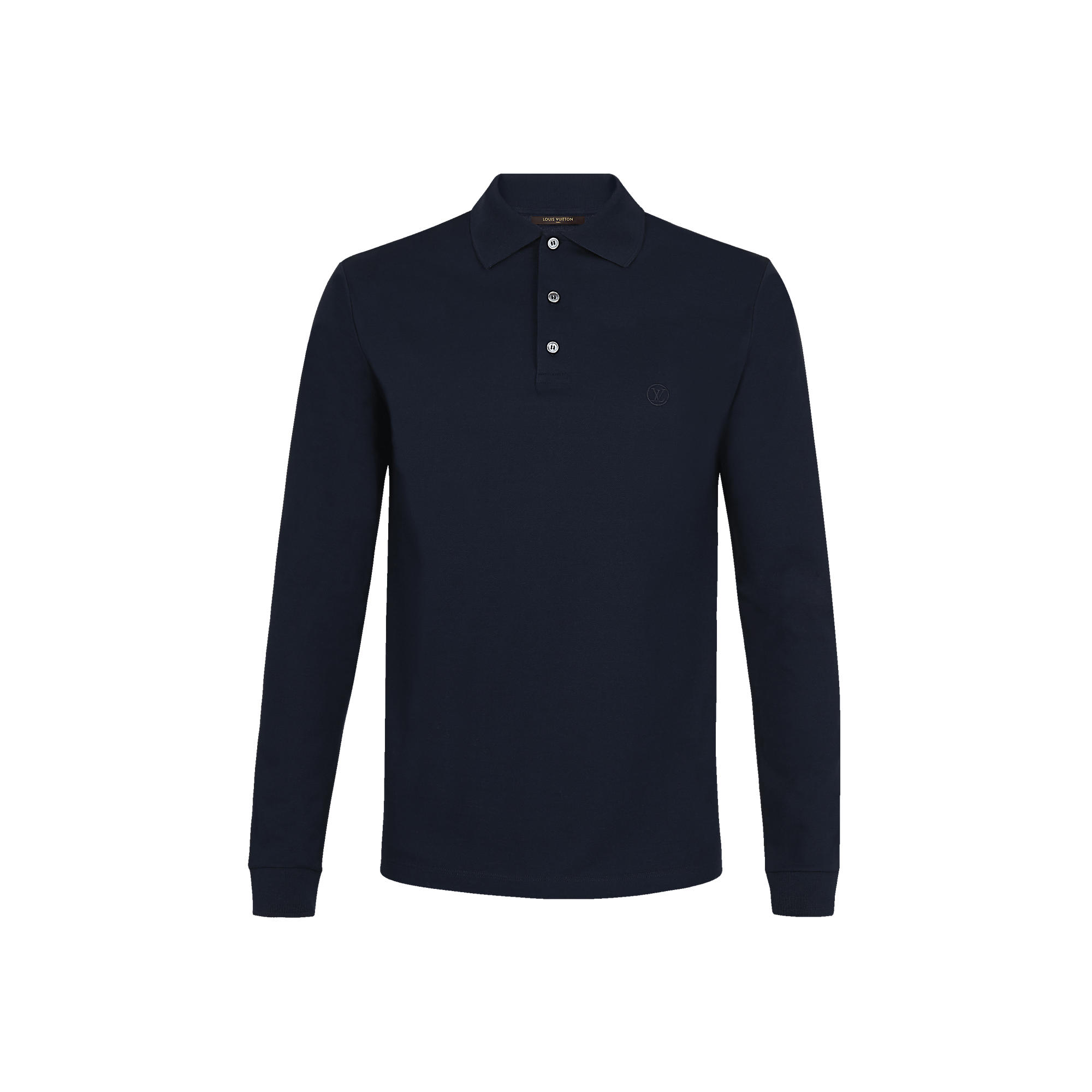 An elegant polo shirt whose fil à fil cotton fabric contributes a small striped motif and adorned with a LV embroidery on the chest.