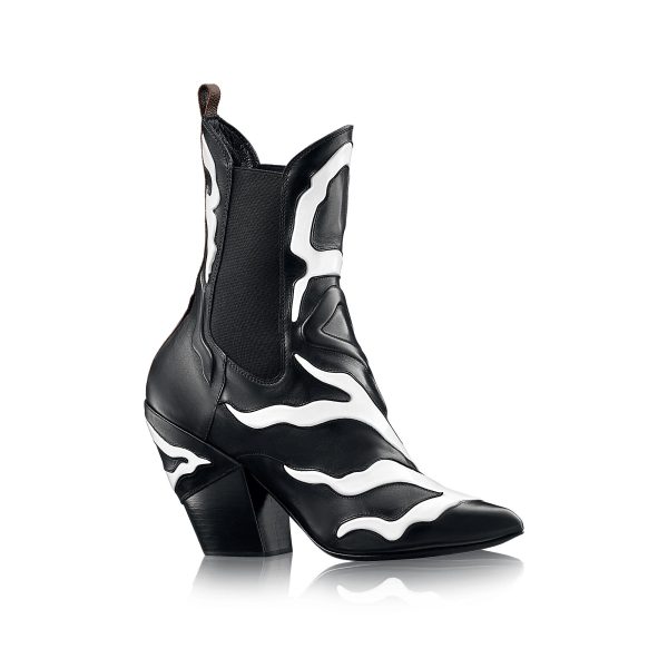 Seen at Louis Vuitton’s Cruise 2018 fashion show, this cutting-edge ankle boot is a cross between a santiag and a classic Chelsea boot.