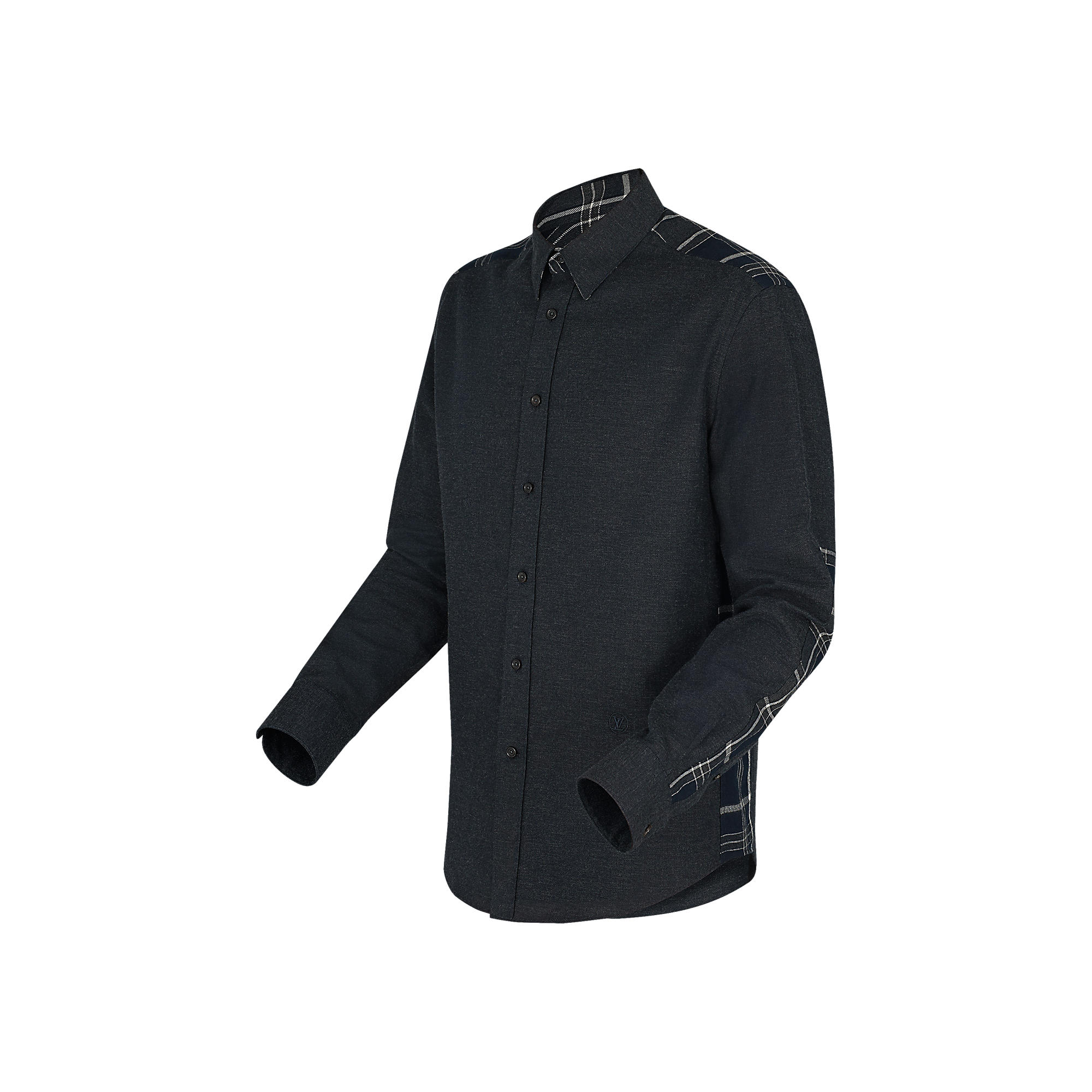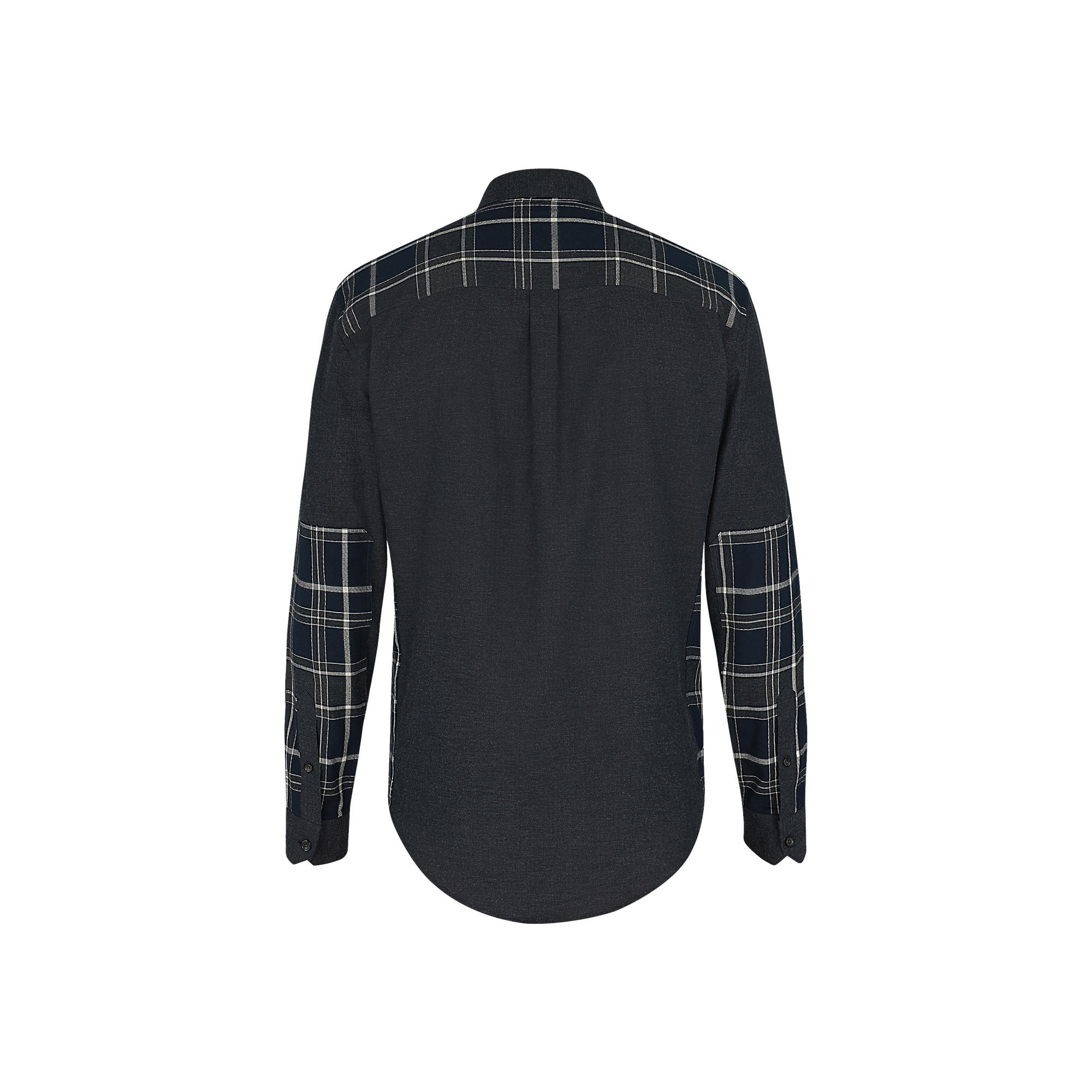 Yokes in contrasting checks are applied to the sleeve, back and sides to create a relaxed and casual silhouette.