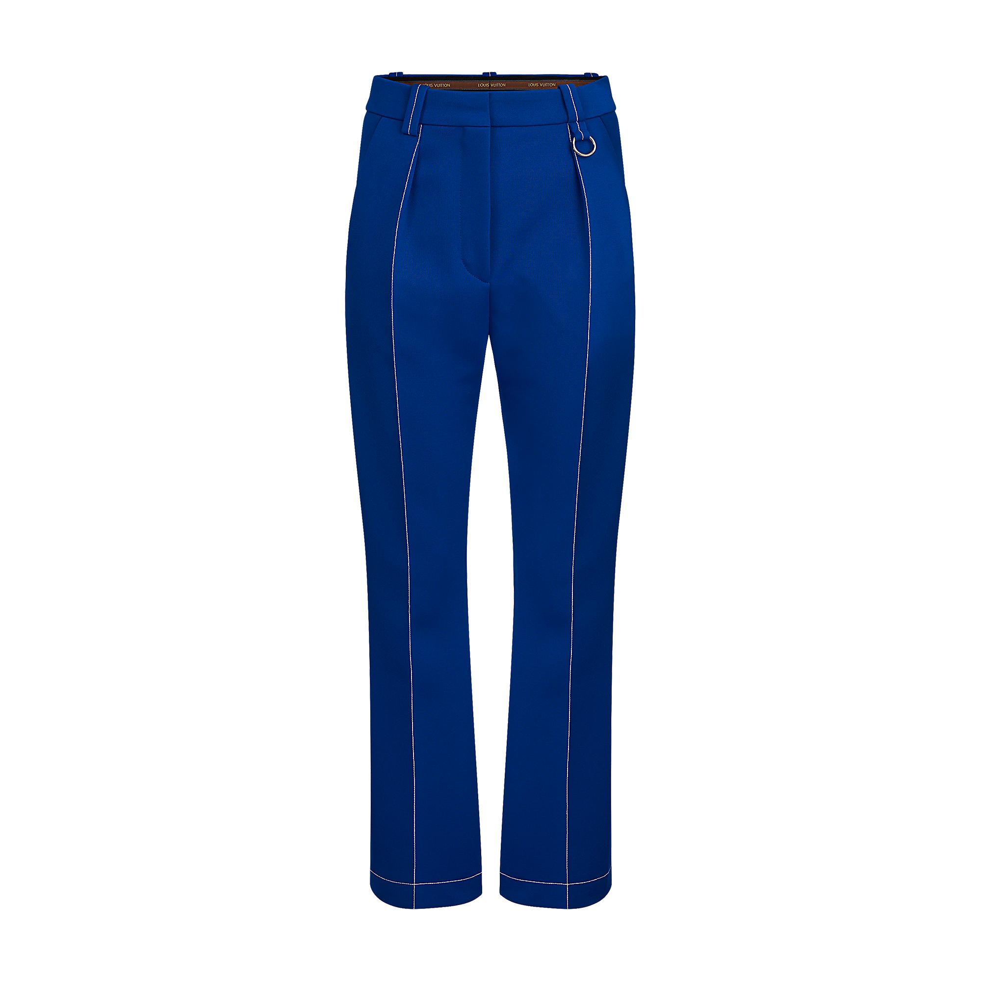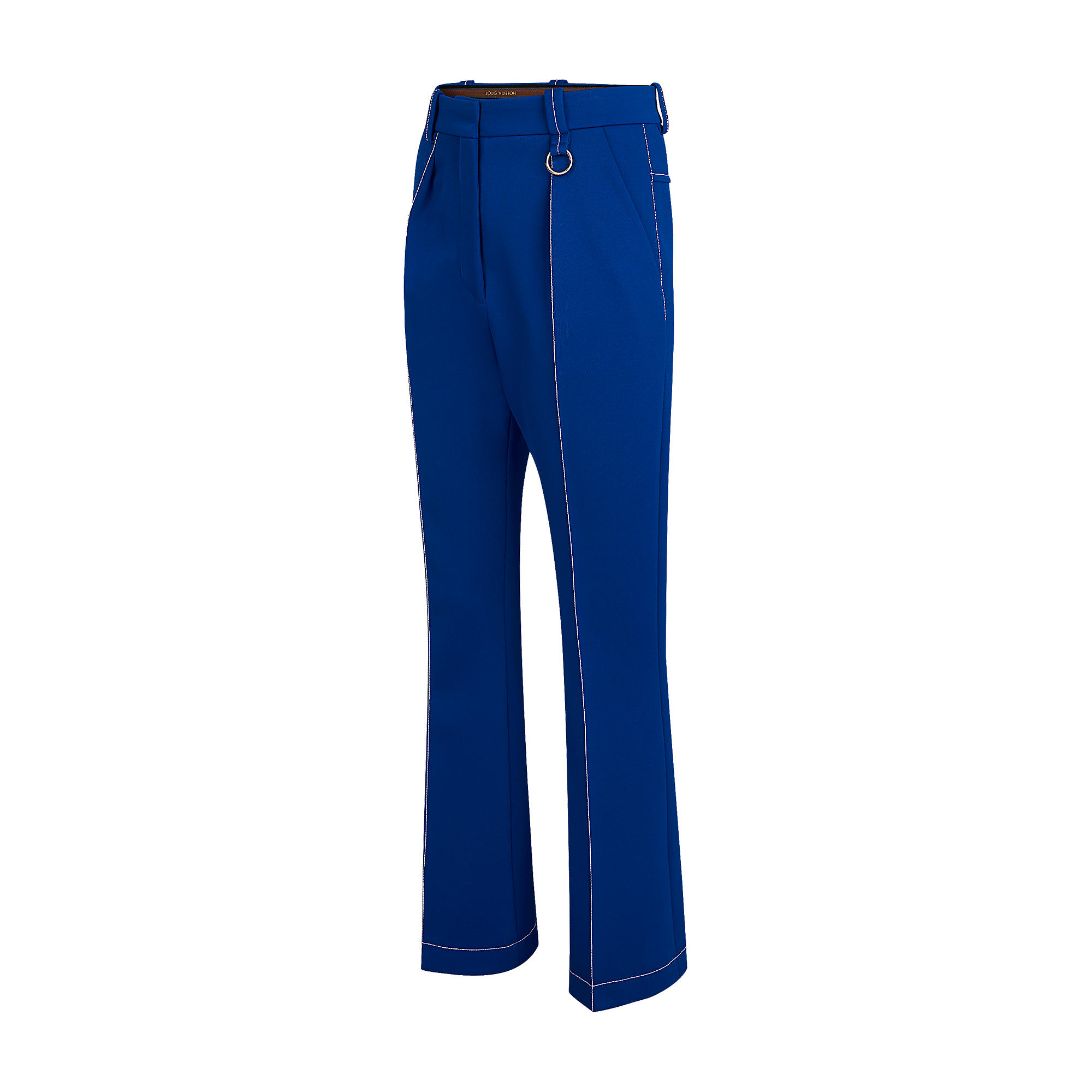 Designed to be worn low on the hips, the season’s new pant shape features a low crotch, flared leg and cropped length. Adorned with contrasting stitching, this model’s signature details include a Louis Vuitton engraved silver ring and the new embossed Louis Vuitton triangle leather patch on the back pocket.