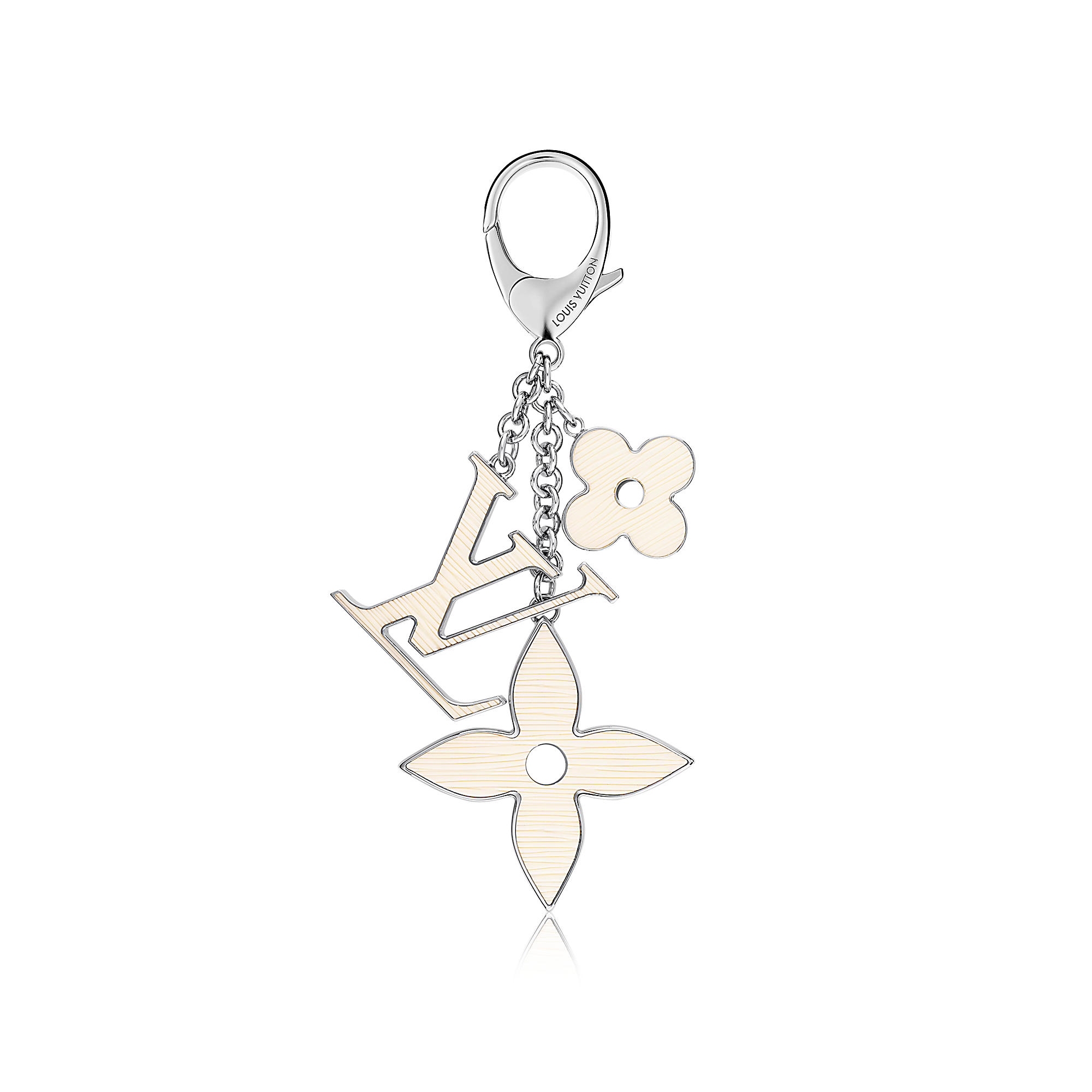 With its iconic Monogram flowers the Fleur d’Epi bag charm can accessorize elegantly any Louis Vuitton’s Epi leather goods recreating the distinctive grained effect of Epi leather on the coloured resin.