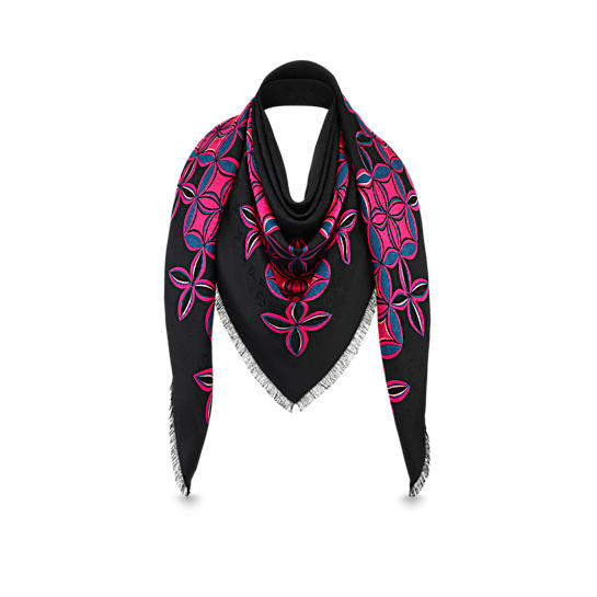 A playful piece that will create a playful wintry vibe to any silhouette. The design offers a new twist on the Monogram Flower motif, inspired by traditional winter jacquard pattern.