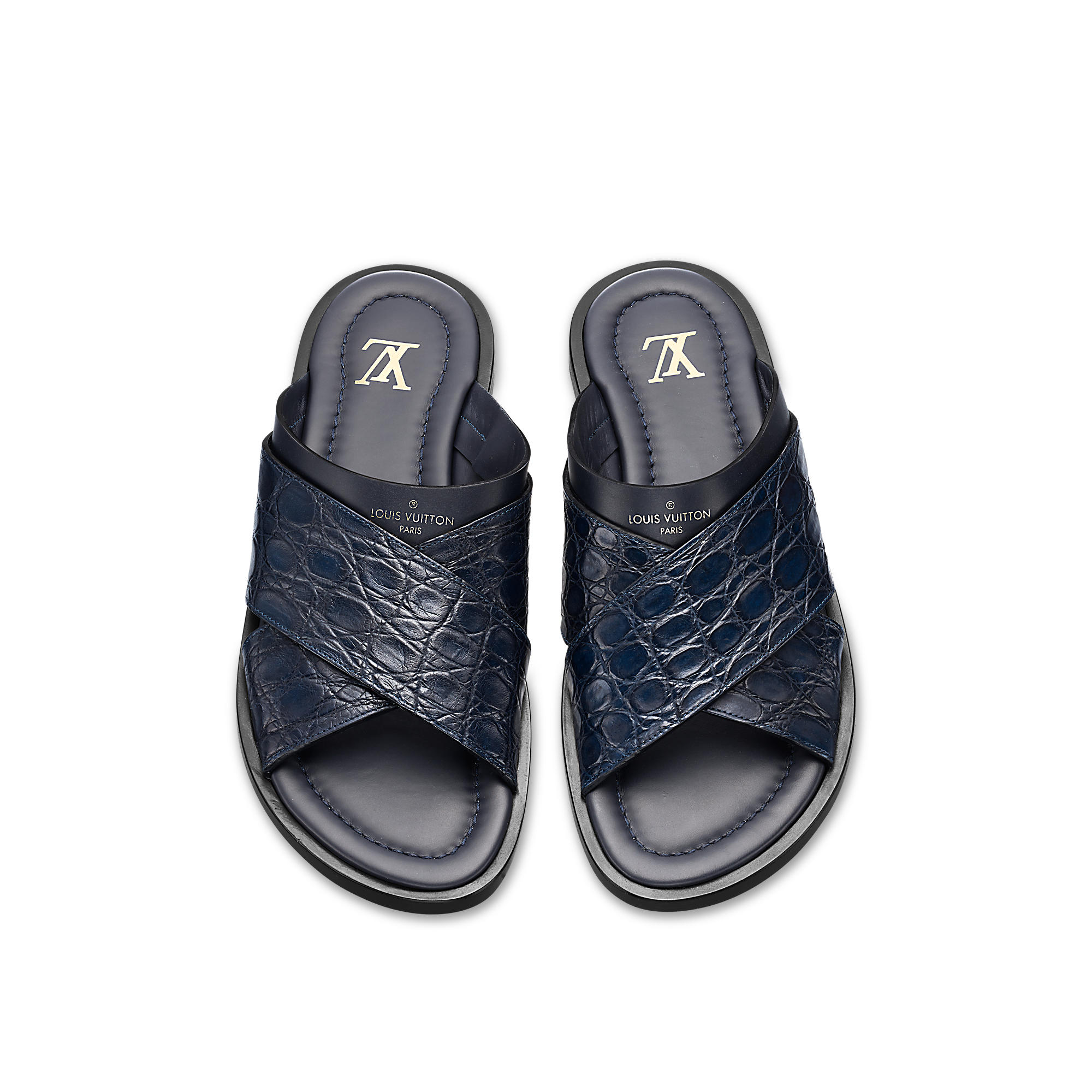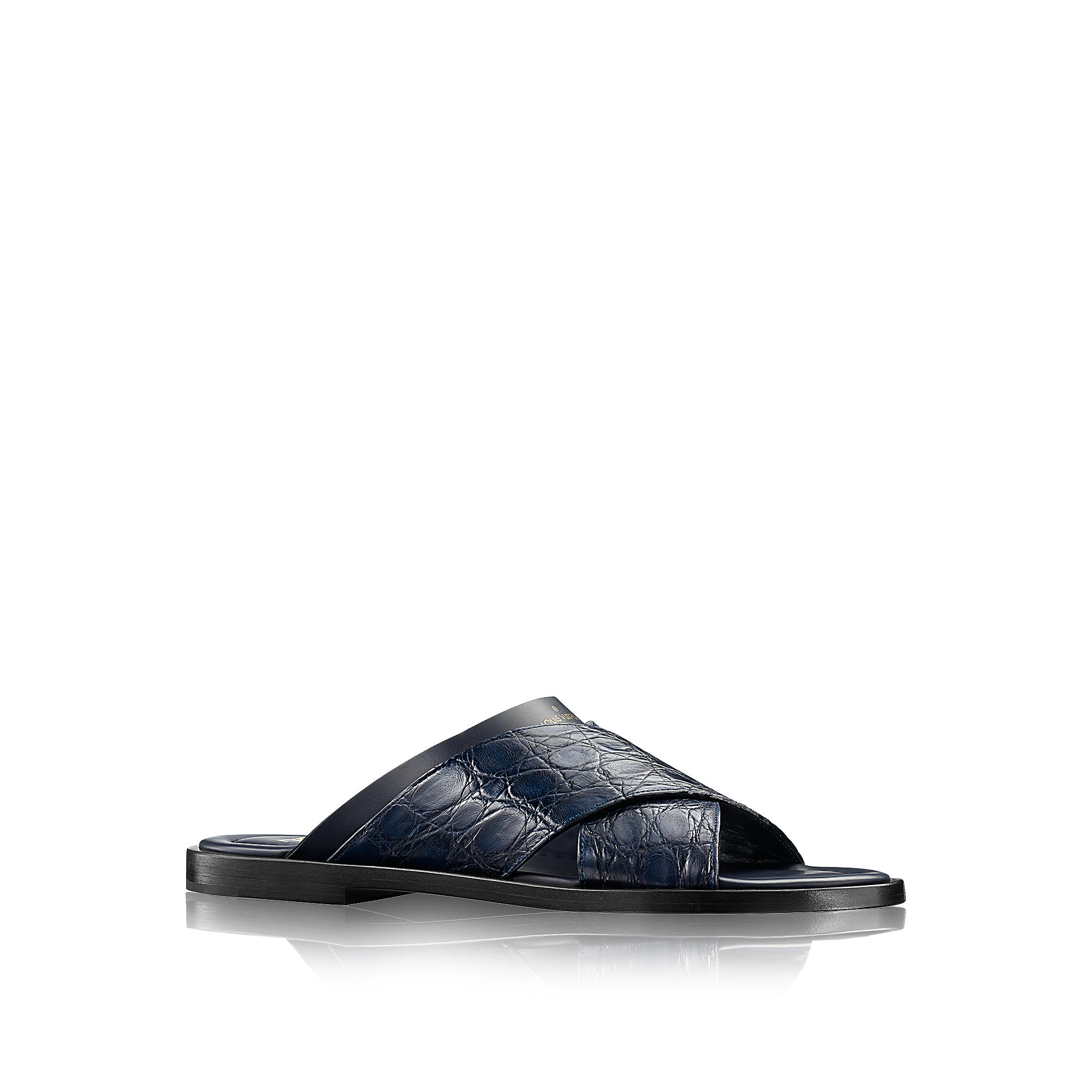 Mule in caïman and plain calf leather with leather outsole.