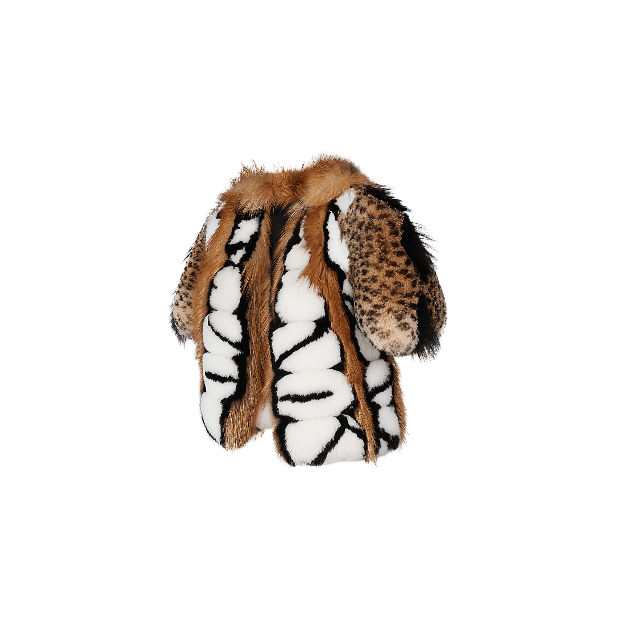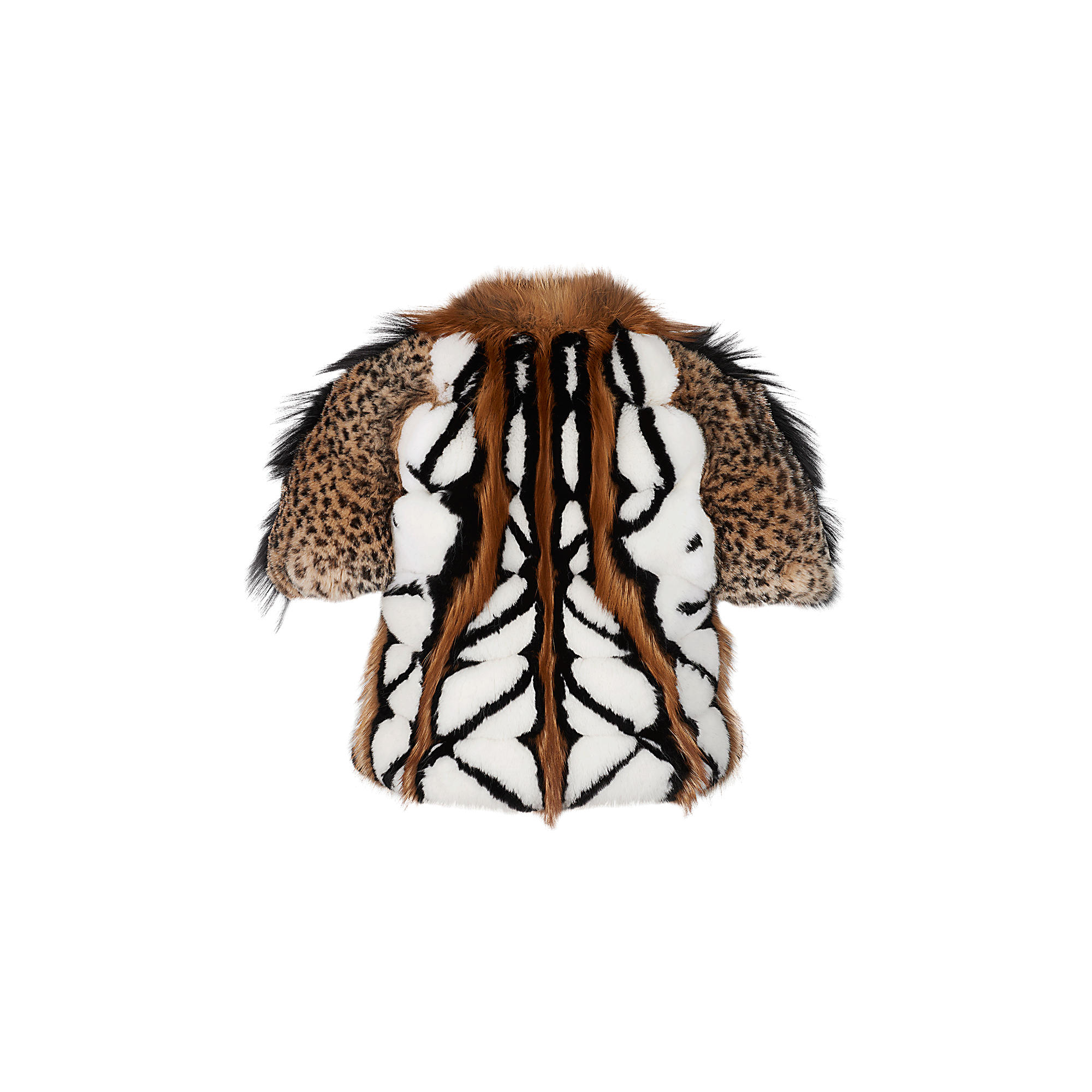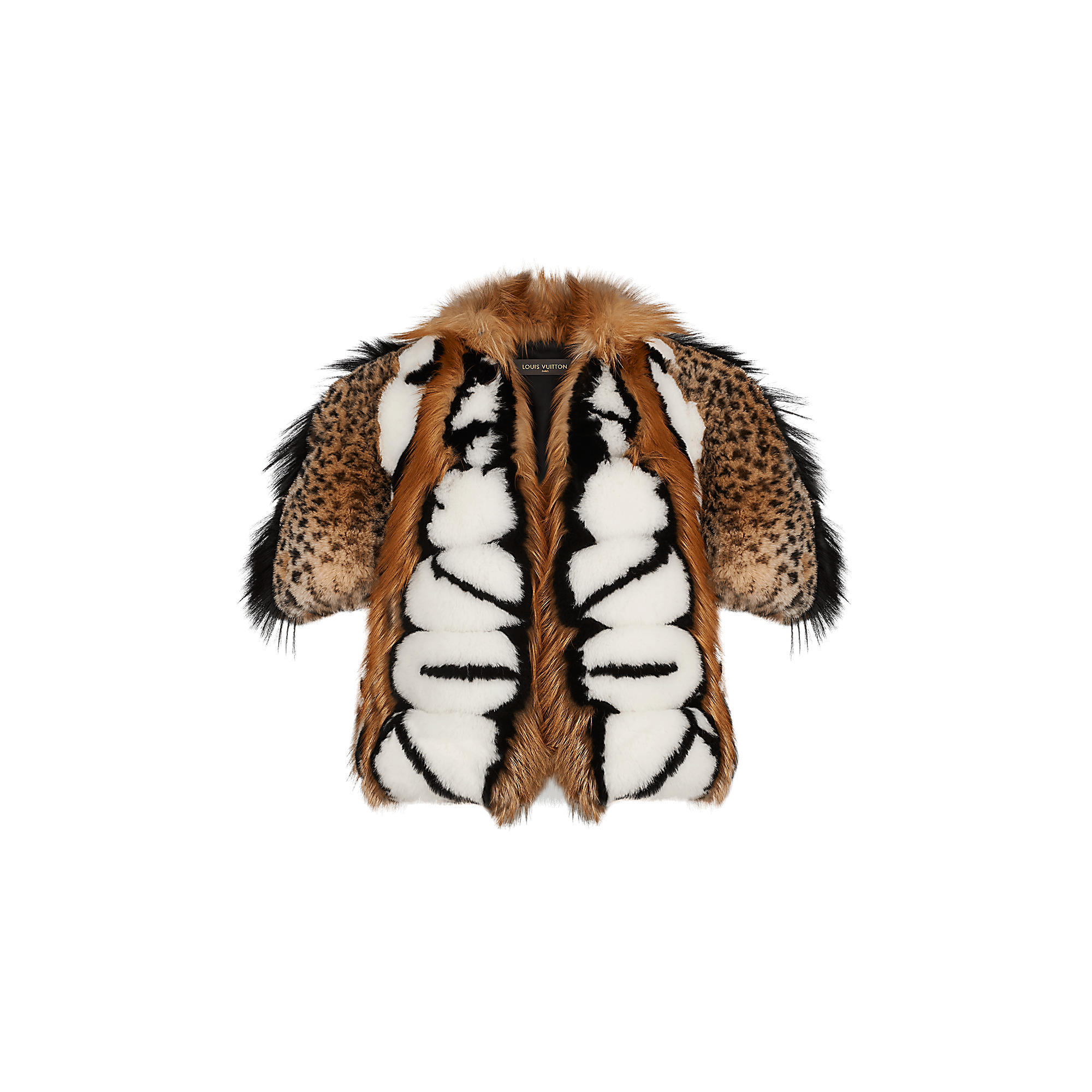 Handcrafted by master craftsmen, this statement piece reflects all the know-how and artistry of Louis Vuitton. The shoulders feature printed fox with long hair inserts, while the body is embellished with ribs of shaved fox, adorned with graphic black lines to heighten the visual impact.