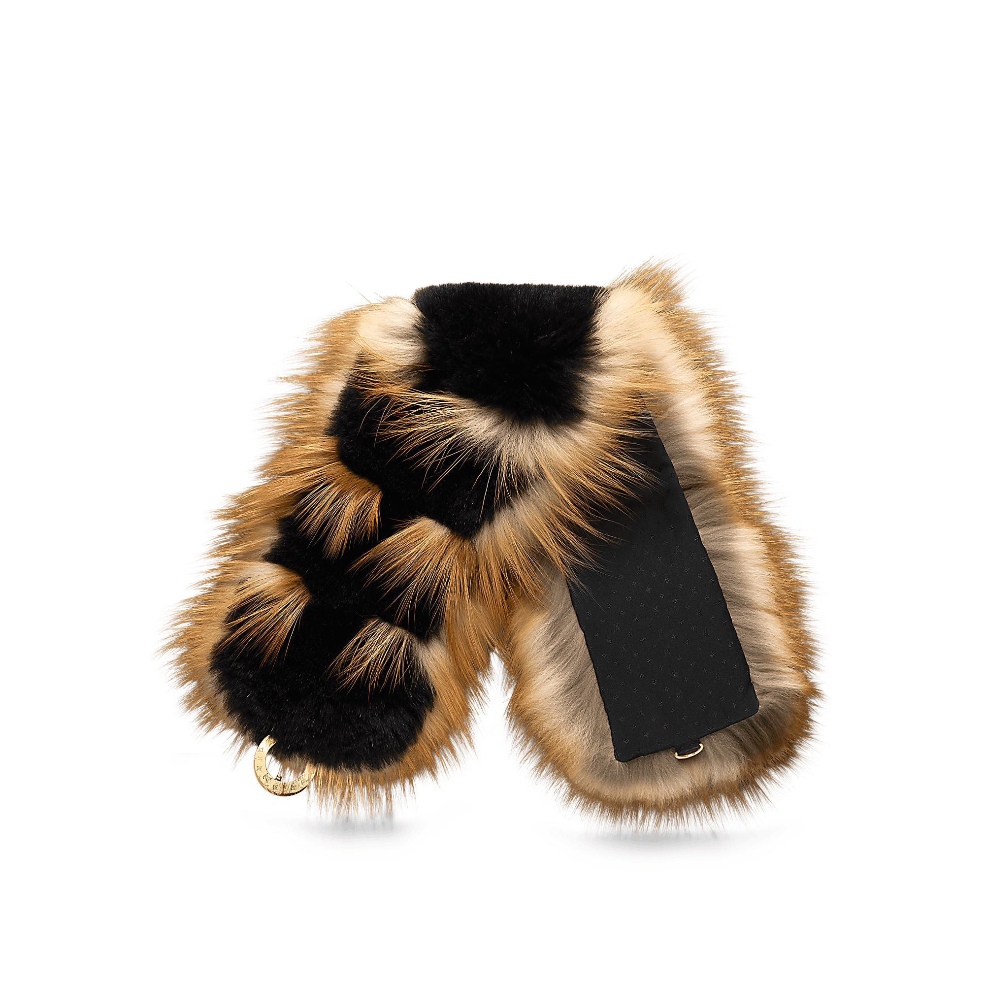 Inspired by the fur coats of the Louis Vuitton’s Fall/Winter 2017 fashion show, this fox collar will turn a winter coat into a style statement. It is crafted from a mix of long natural and shaved dyed fox fur for an eye-catching effect. The metallic Monogram engraved serrure bring a jewel touch.