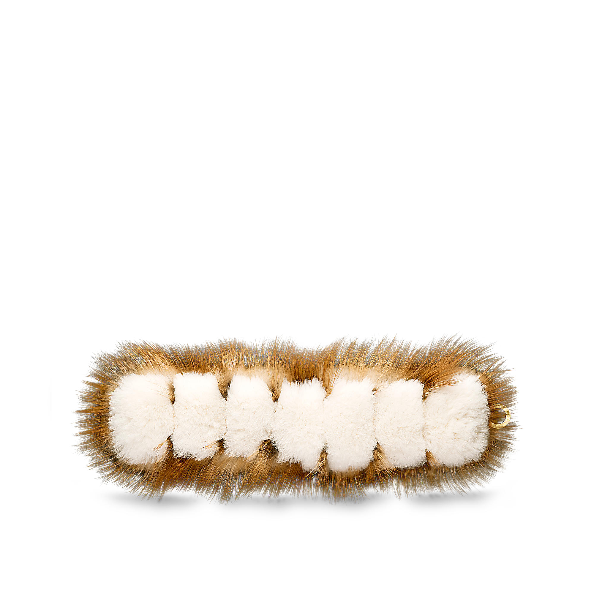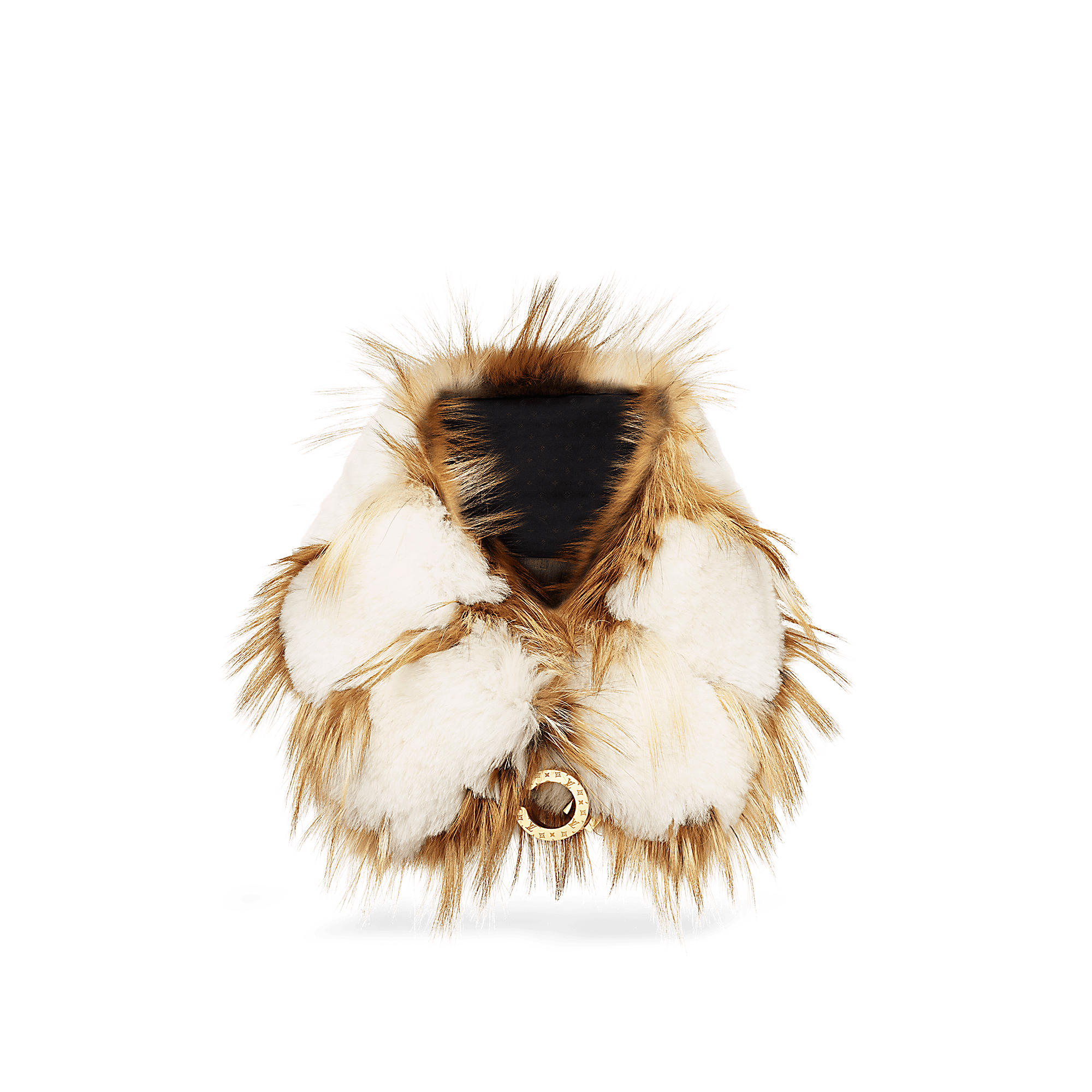Inspired by the fur coats of the Louis Vuitton’s Fall/Winter 2017 fashion show, this fox collar will turn a winter coat into a style statement. It is crafted from a mix of long natural and shaved dyed fox fur for an eye-catching effect. The metallic Monogram engraved serrure bring a jewel touch.