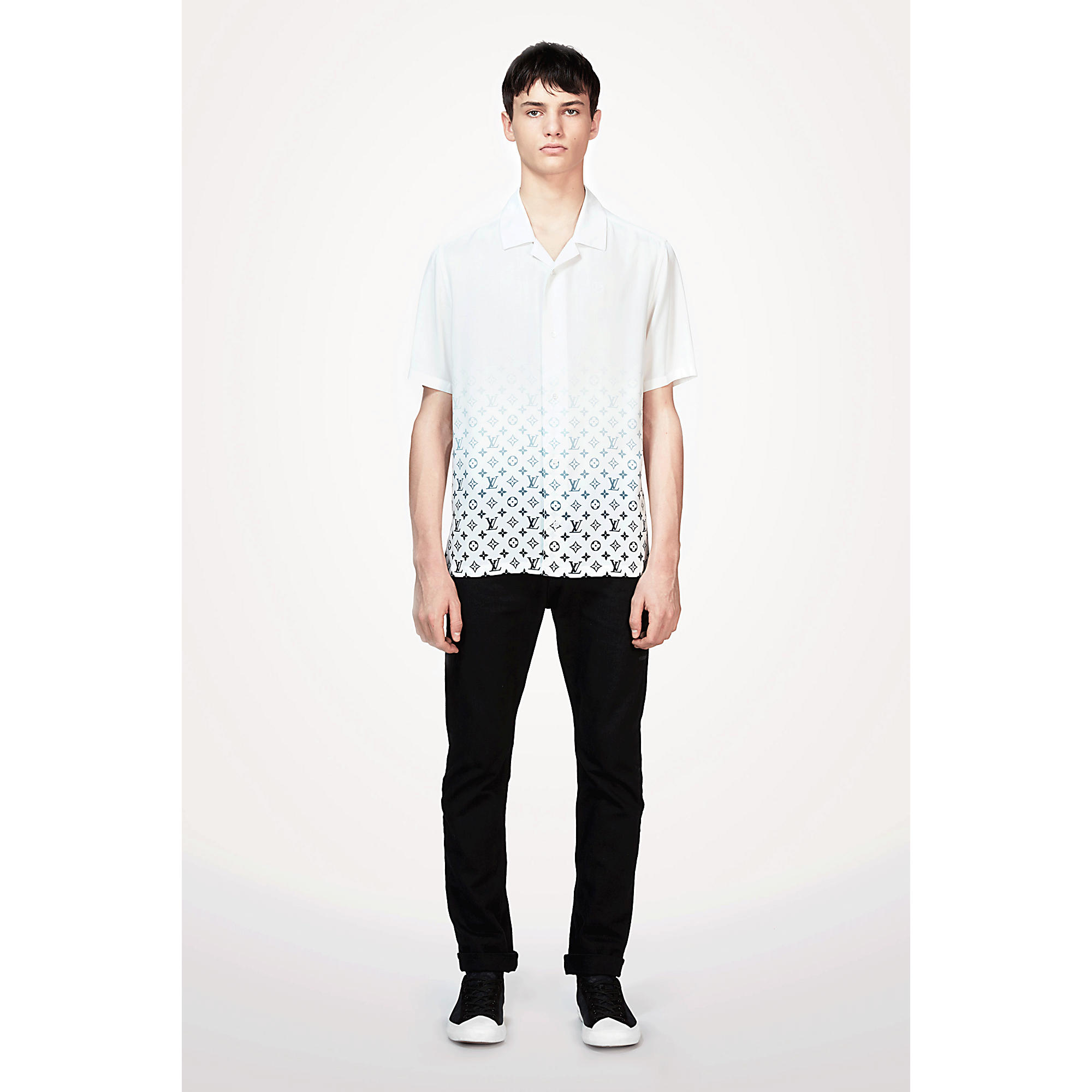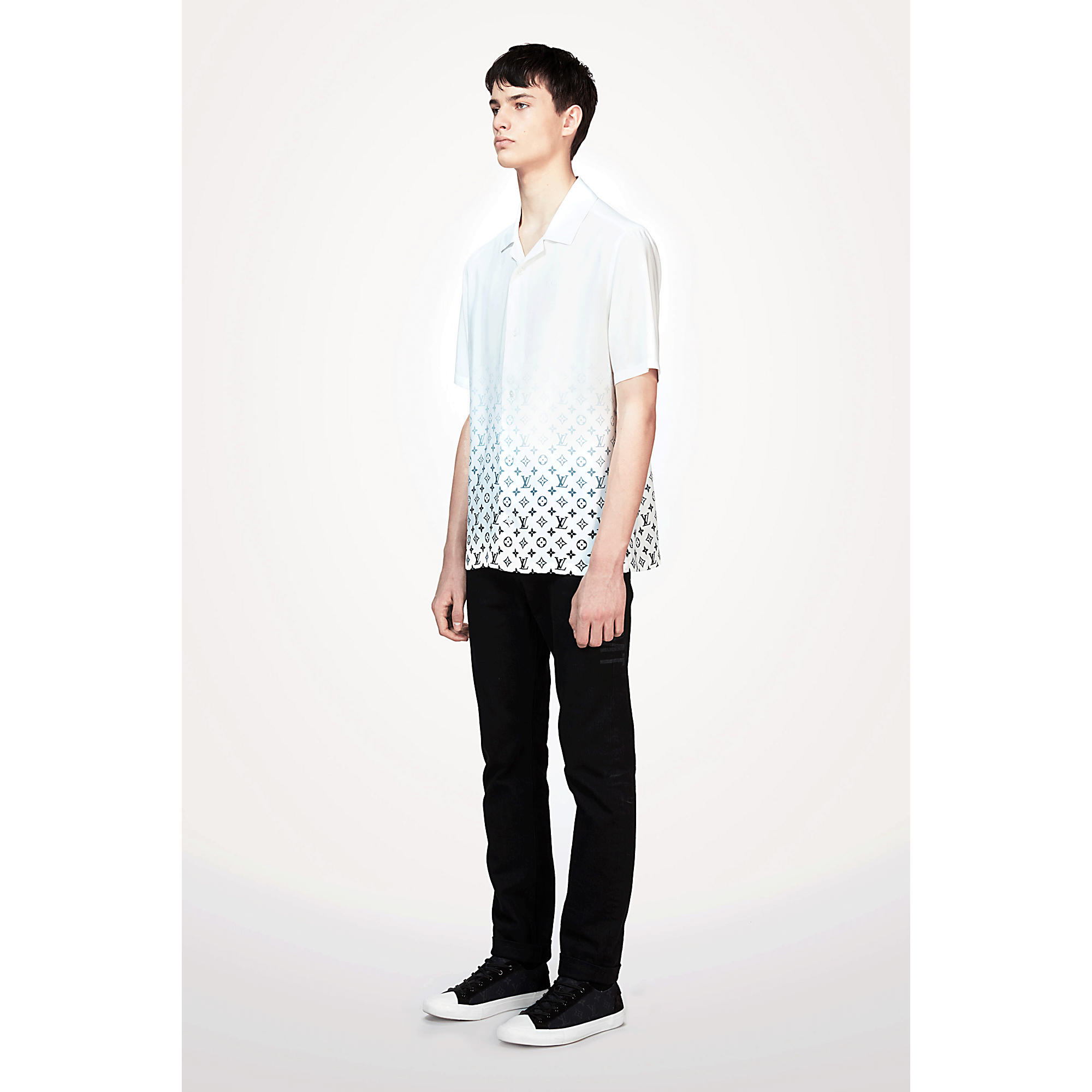 Designed with a loose and casual fit, this Hawaiian shirt is adorned with the season’s iconic Dégradé Monogram print. In a light and fluid poplin, it features an embroidered tone-on-tone Fragment logo on the chest.