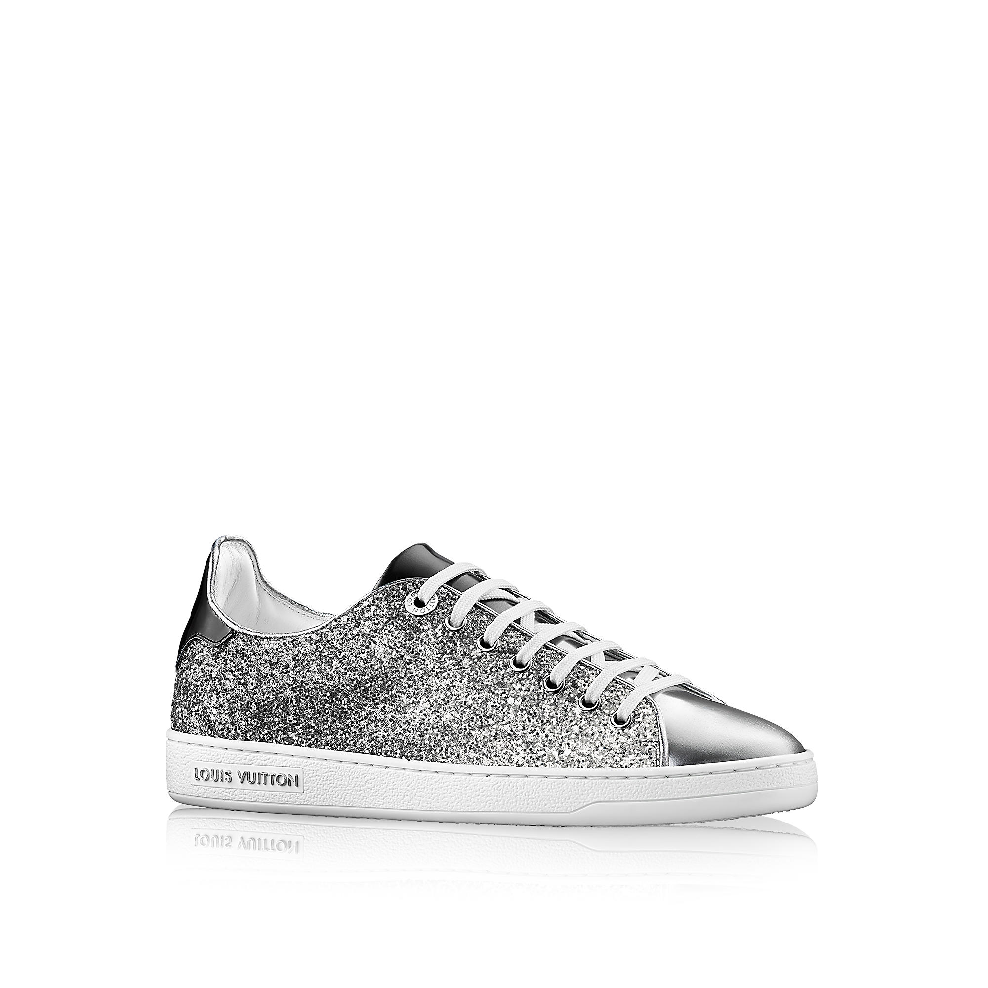 Reinterpreting the classic tennis shoe, this must-have sneaker has a clean-cut design complemented by eye-catching glitter and metallic calf leather details.
