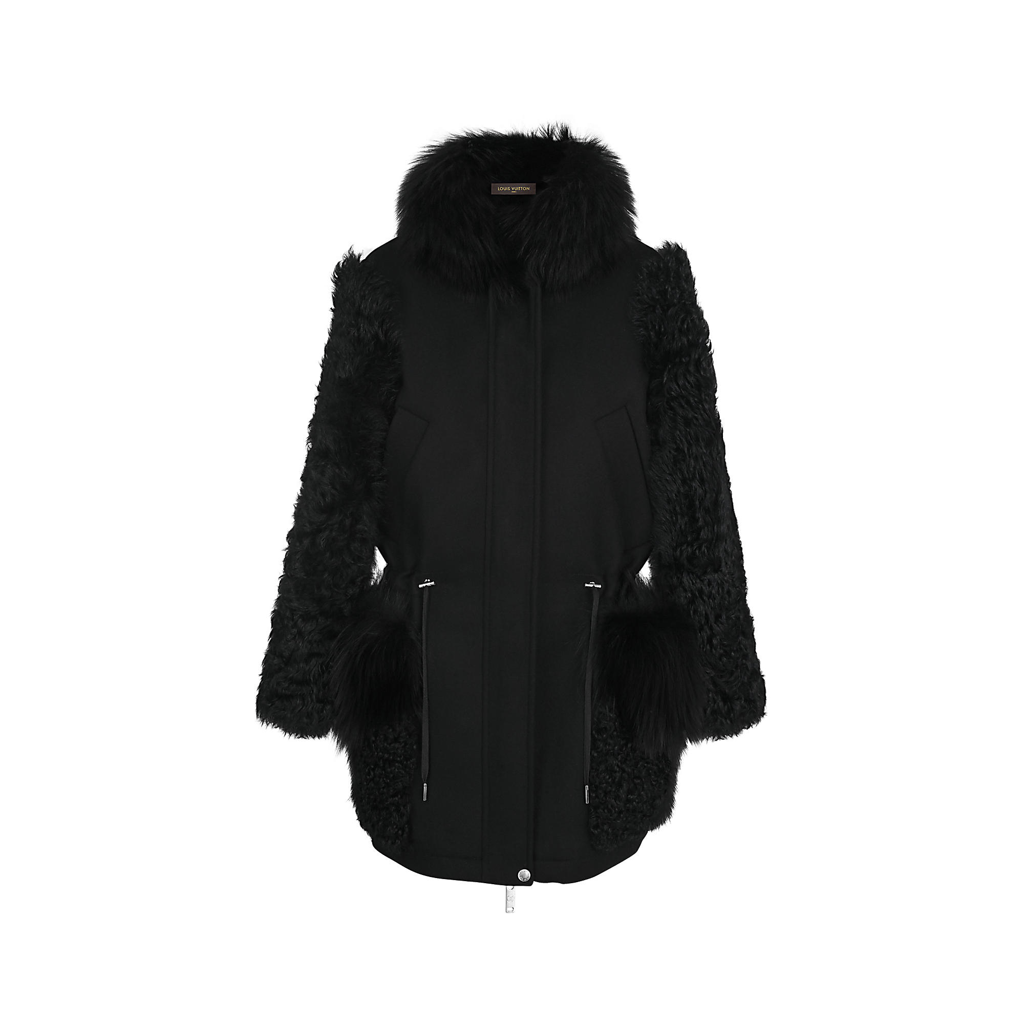 Crafted from compact cashmere and fur, this easy-but-chic outerwear piece is a perfect blend of luxury and functionality. Embellished with beaver, shearling and fox patchwork pockets, a fox collar and sleeves in black shearling, it can be cinched at the waist for a more feminine silhouette.