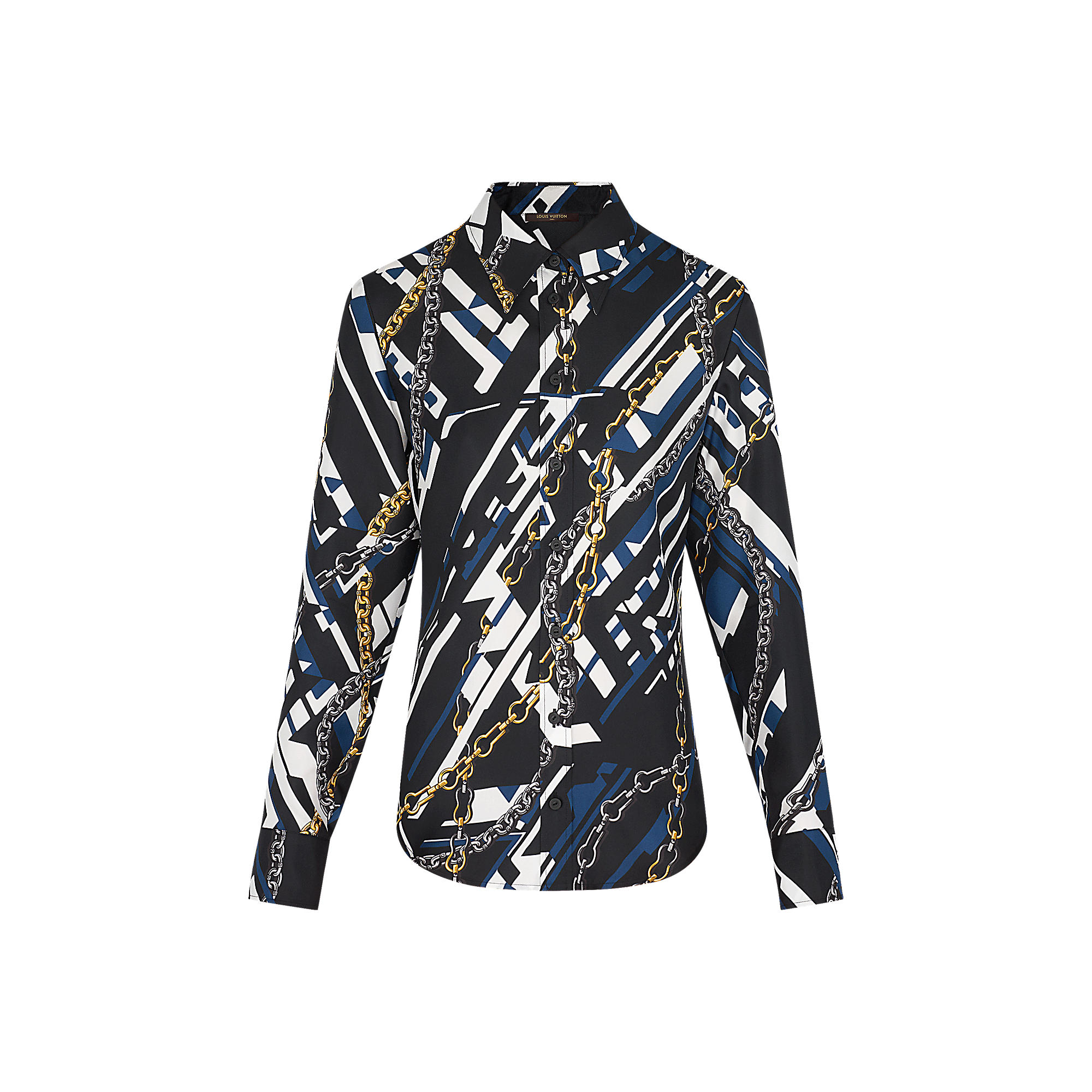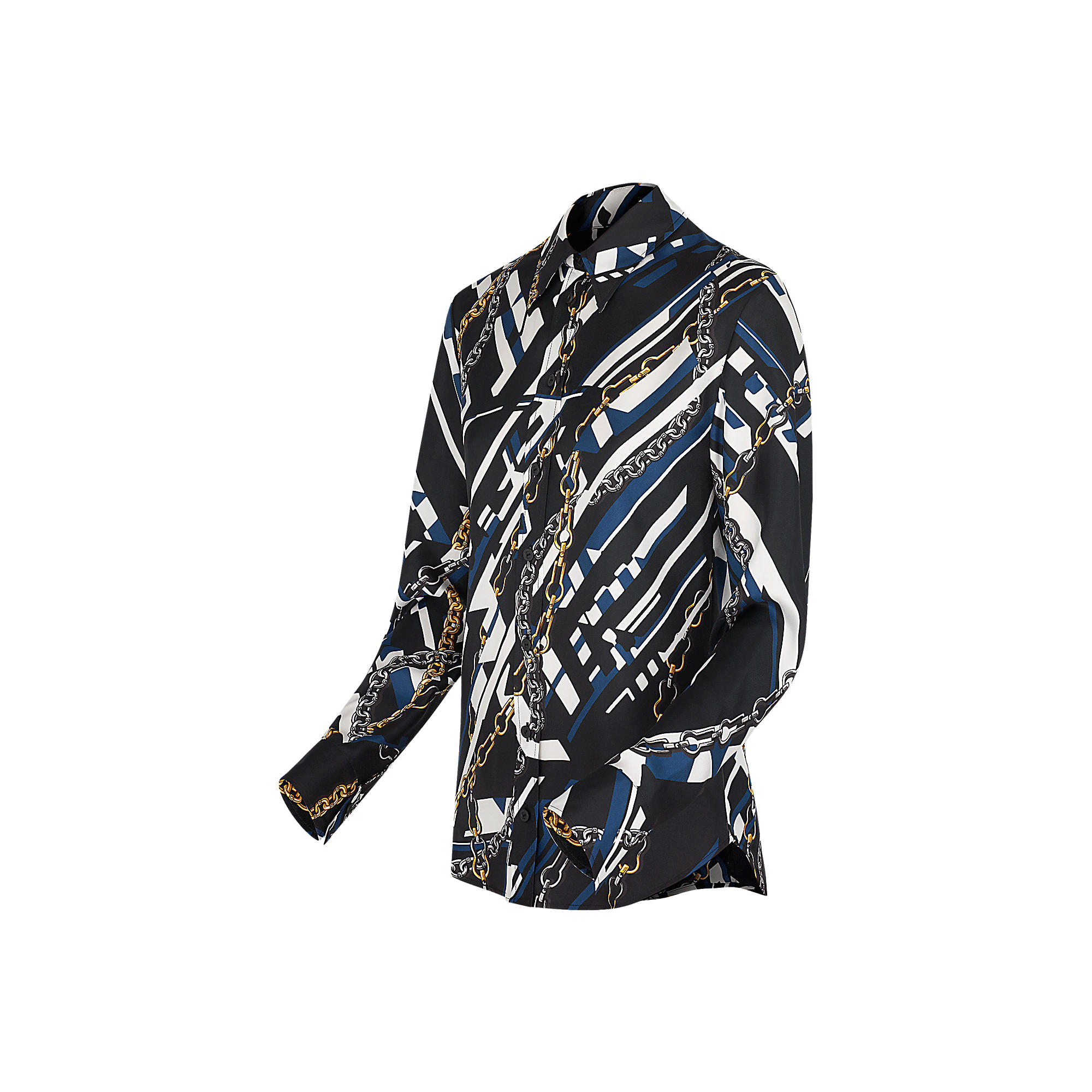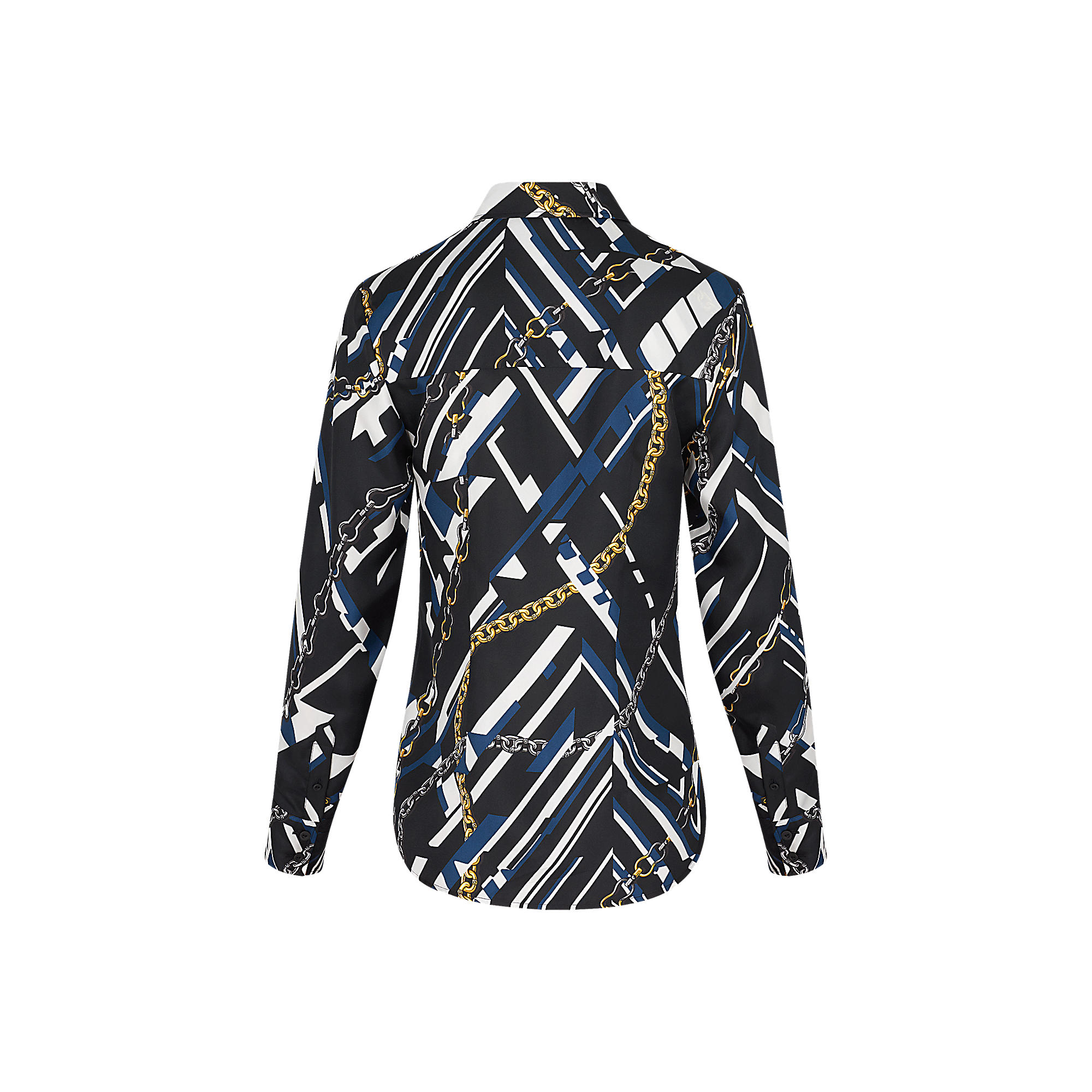 This shirt showcases one of this season’s key prints– the classic Chains motif re-interpreted with a graphic twist. It has a fitted shape, creating a feminine silhouette.
