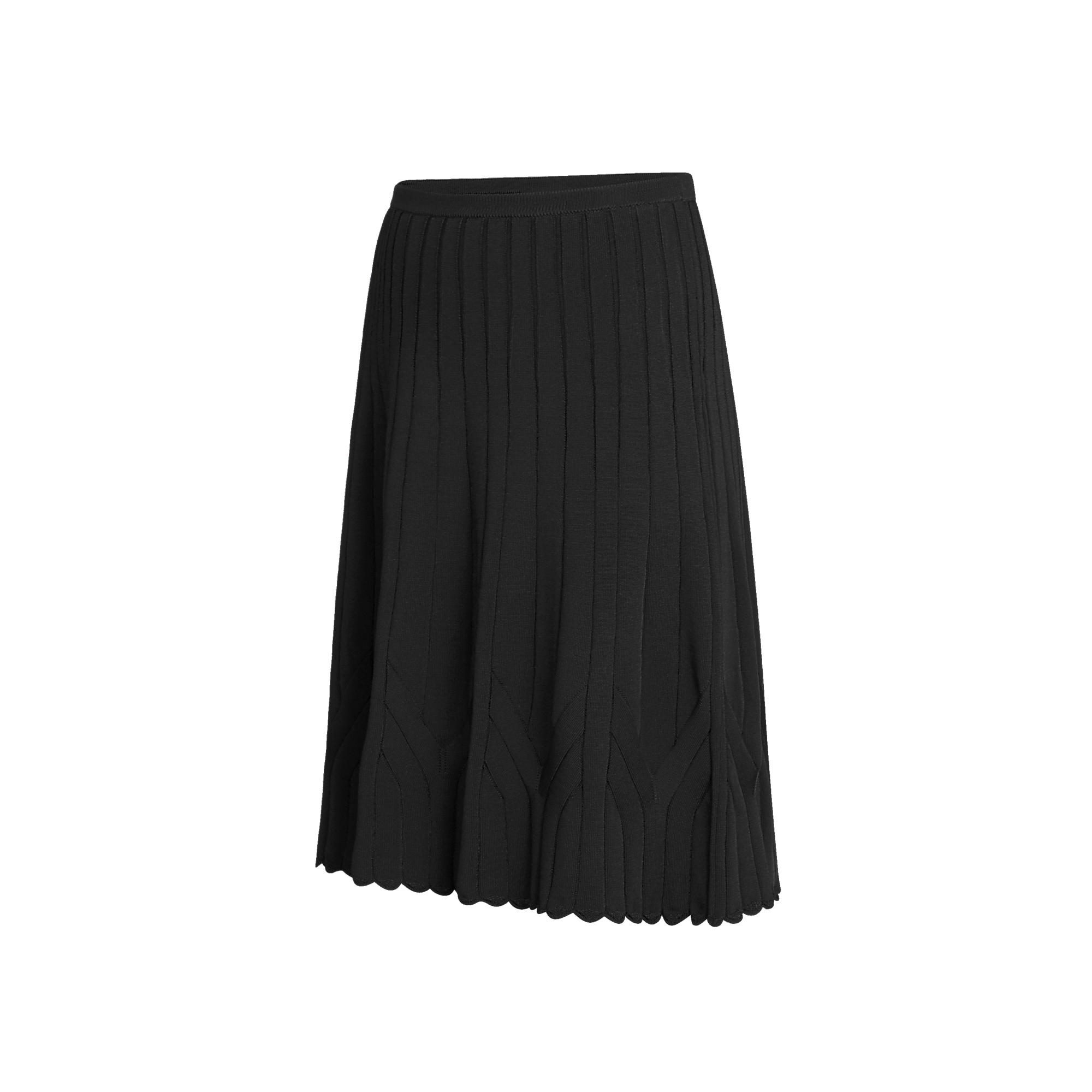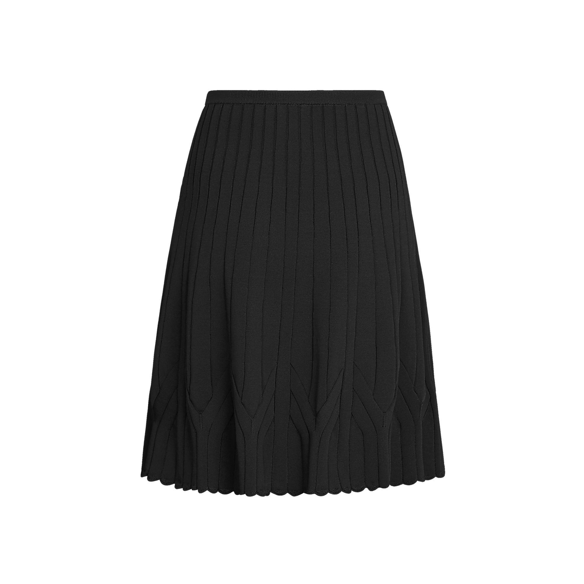 This midi skirt is adorned with a graphic knit of flat ribs, forming lines and the V motifs that are among this season’s distinctive signatures.