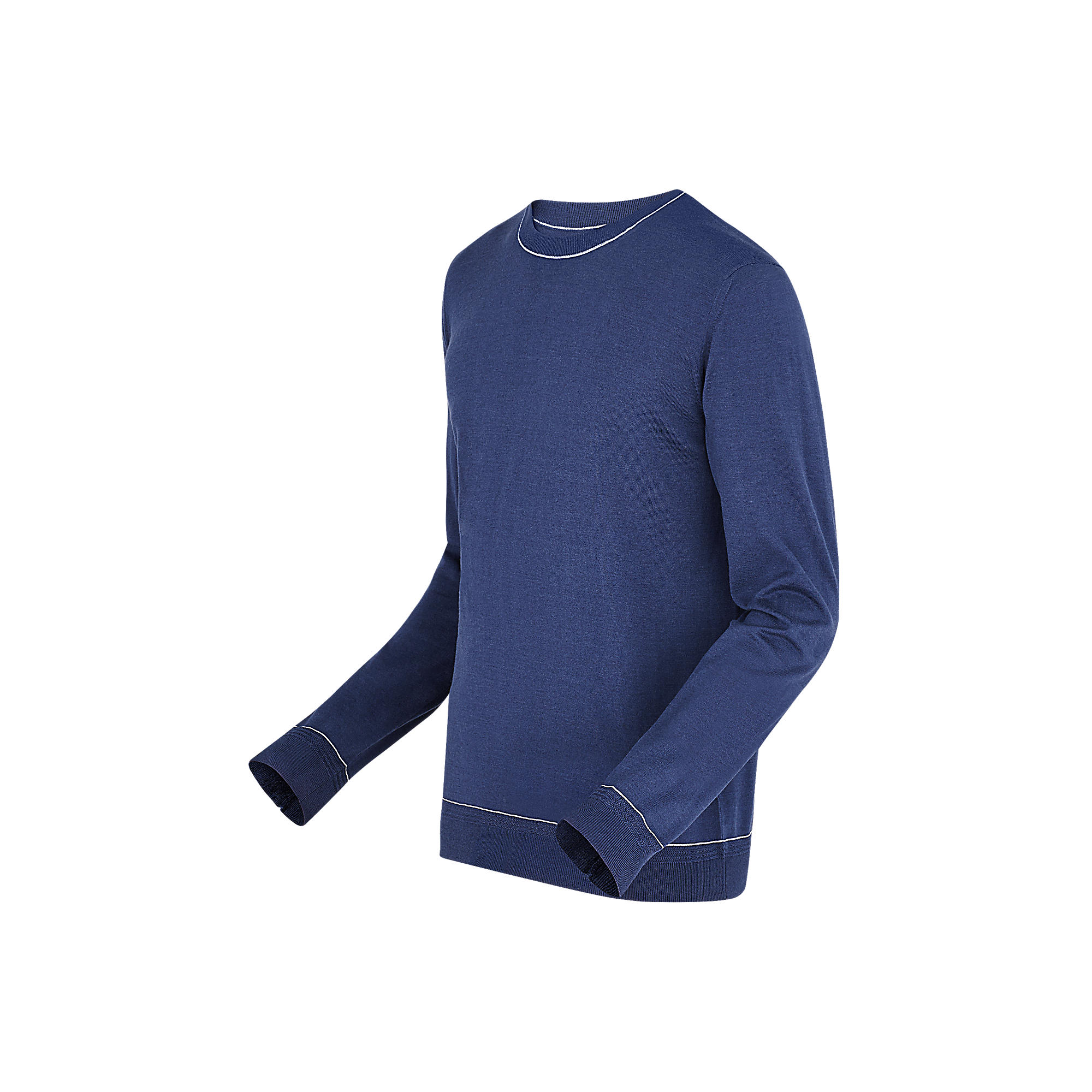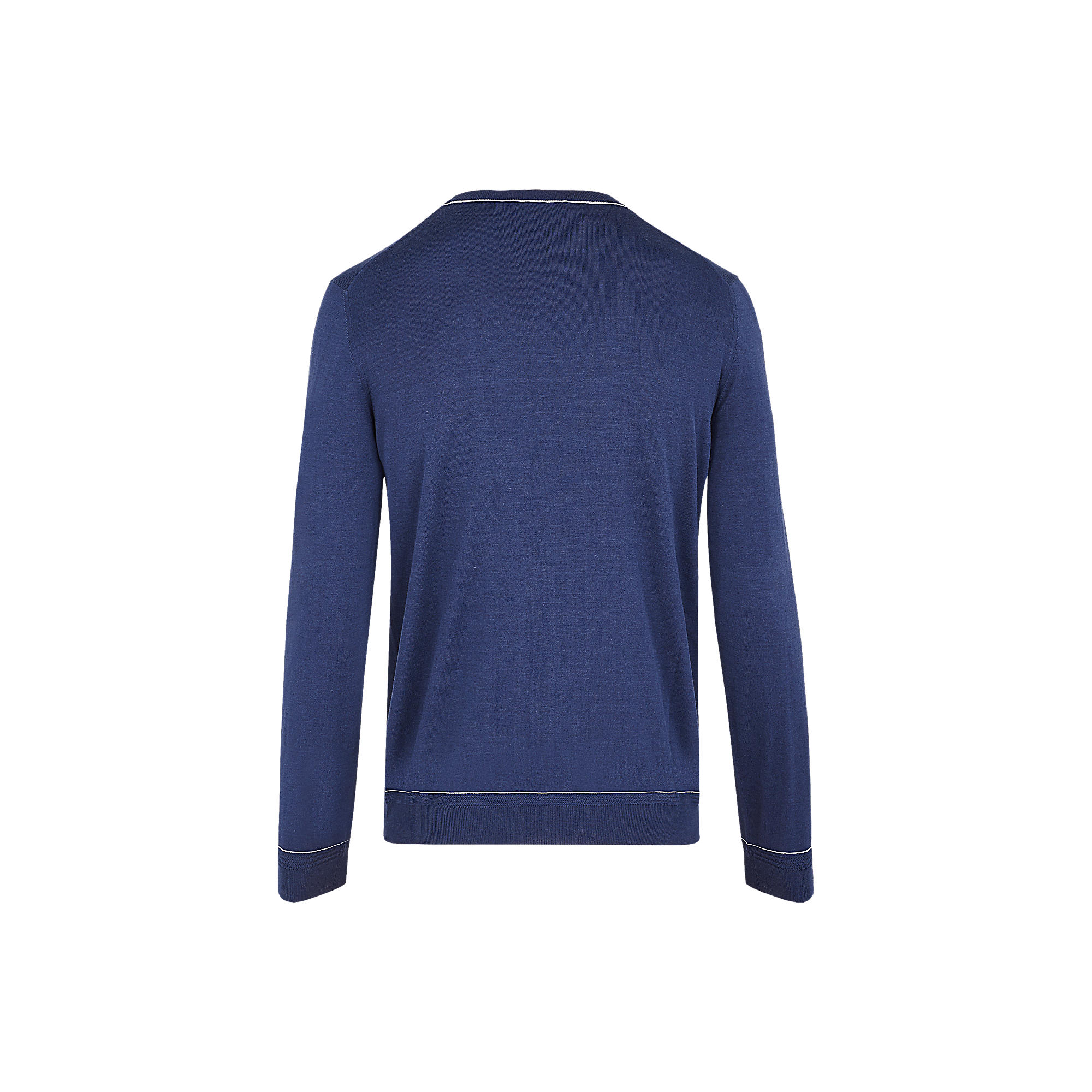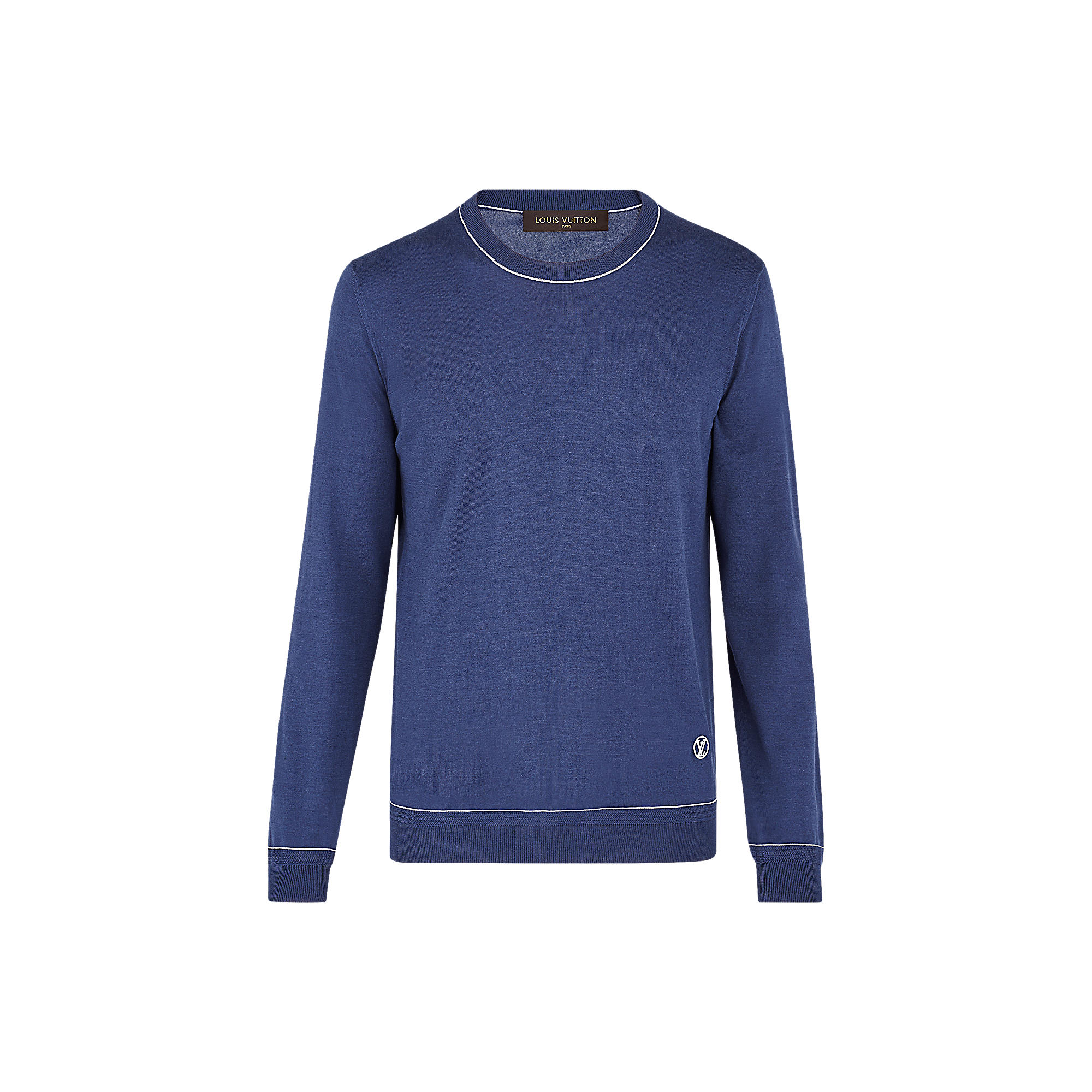 Crafted from a fine blend of cotton, silk and cashmere, this crew neck sweater features a contrasting collar and highlights on the ribs that match Louis Vuitton’s emblematic embroidery.