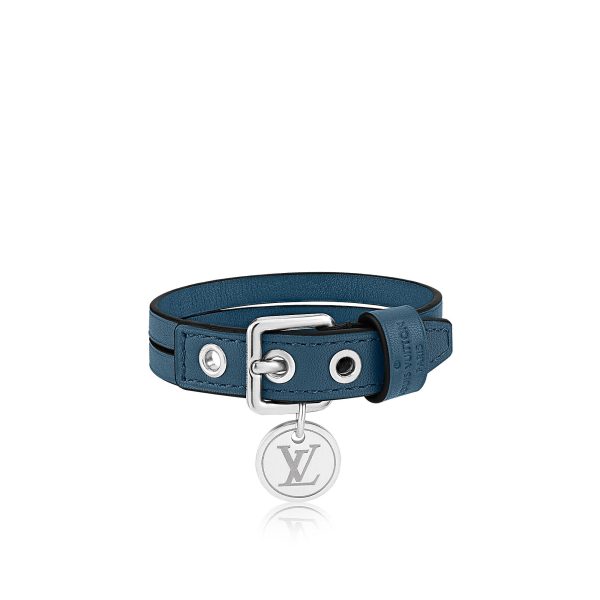 A stylish new urban talisman, the In Step bracelet features a finely crafted medal engraved with LV Initiales on one side, the Damier “rice grain” motif on the other. The calf leather strap is split for a chic double-wrap effect.