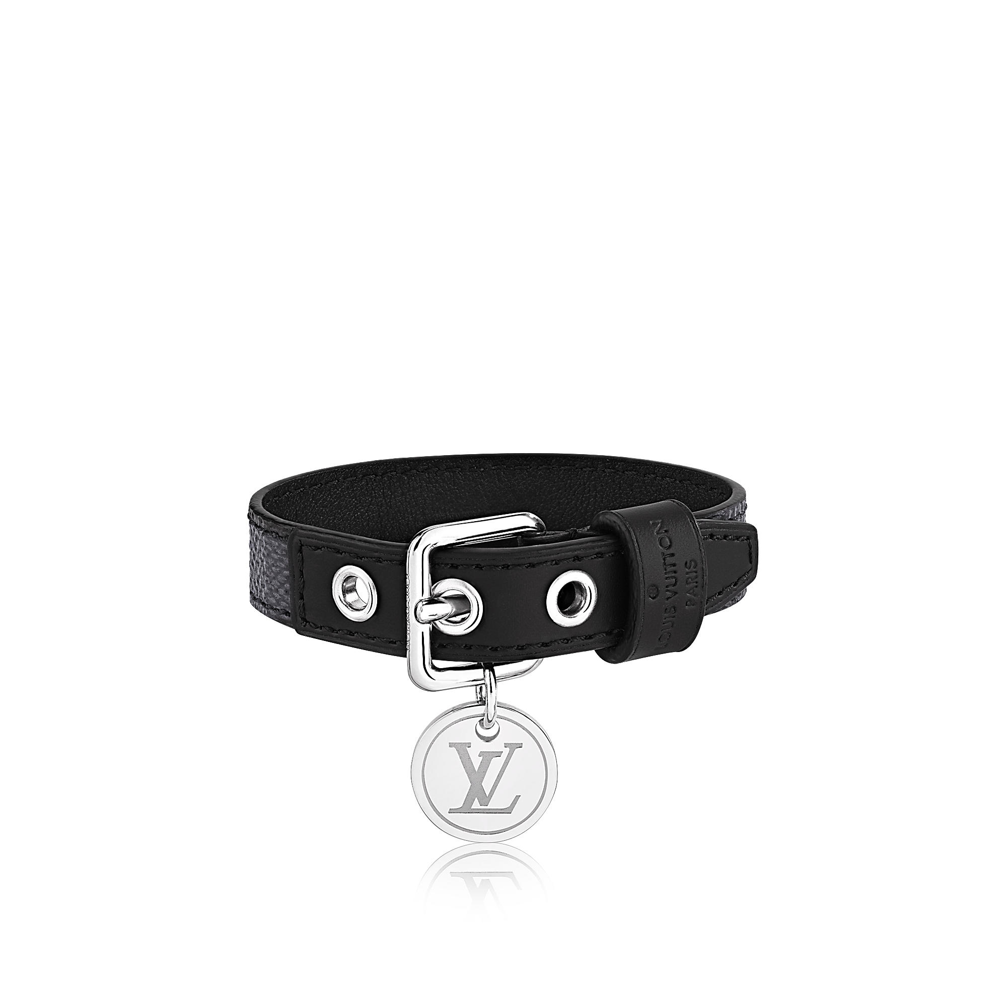 Aficionados of the iconic Damier pattern will appreciate this masculine bracelet, accented with a medal in shiny palladium-finished brass, engraved on one side with LV Initiales and on the other with the Damier “rice grain” motif.