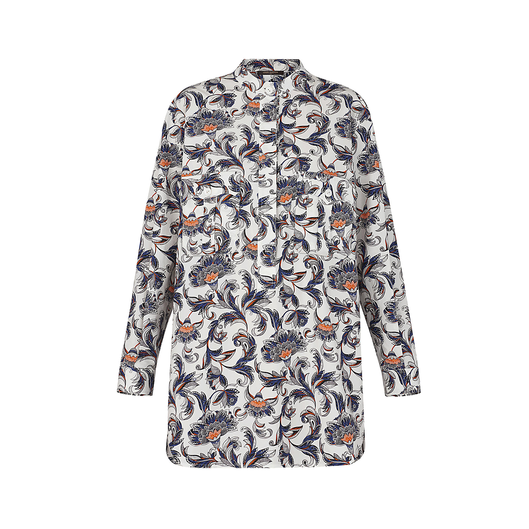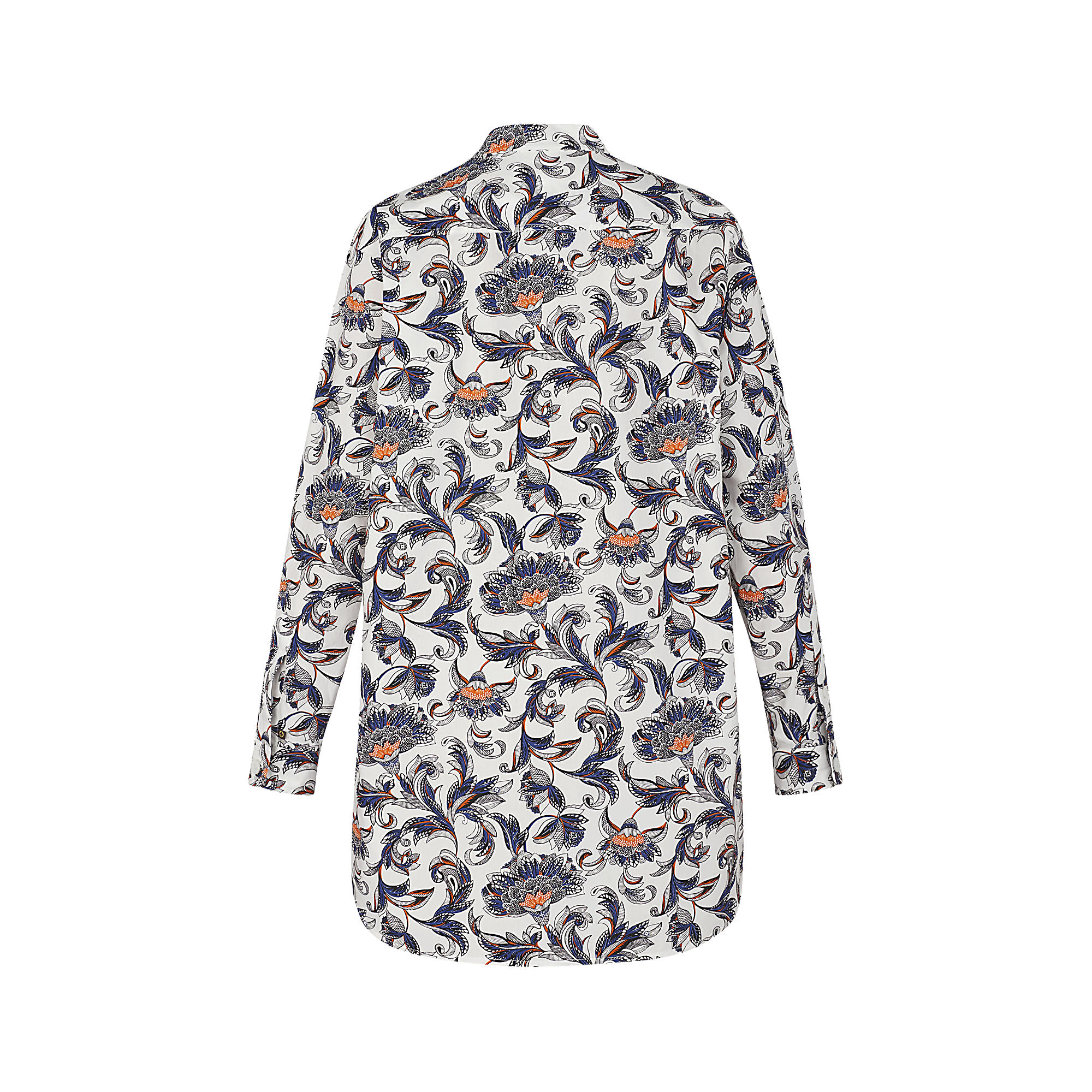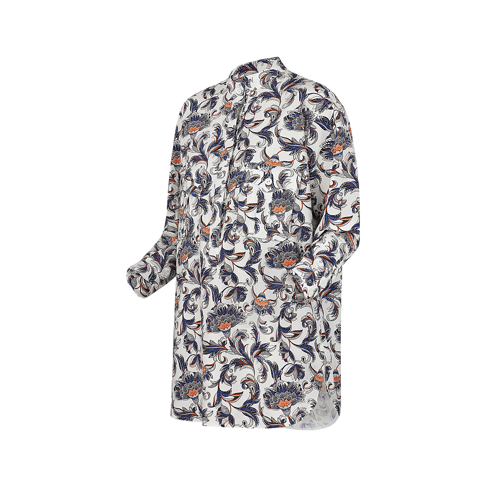This tunic shirt with long sleeves features two front pockets that lend a western flair to the piece. It has an oversize cut and stand collar. It is tailored from cotton poplin adorned with this season’s Indian Flowers print.