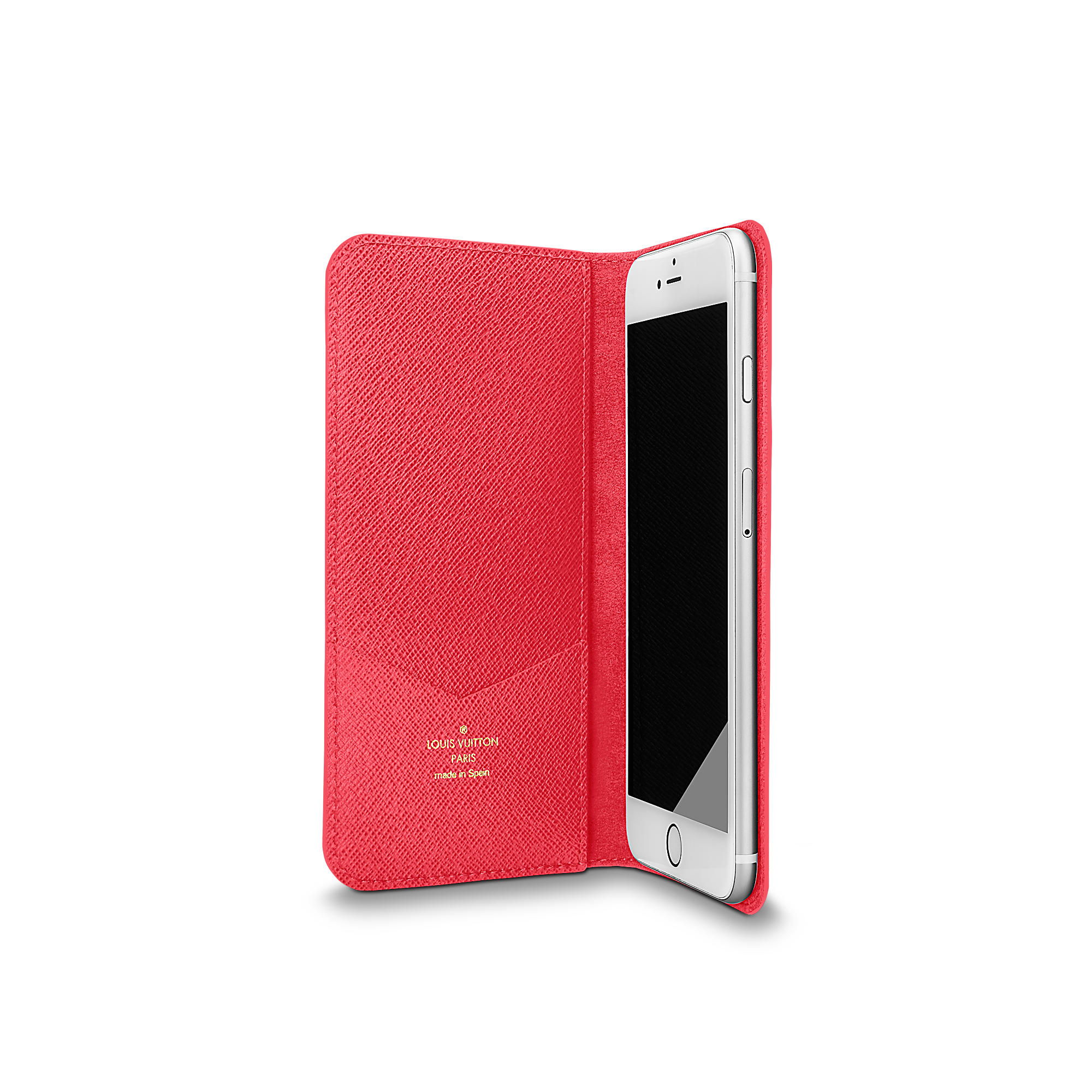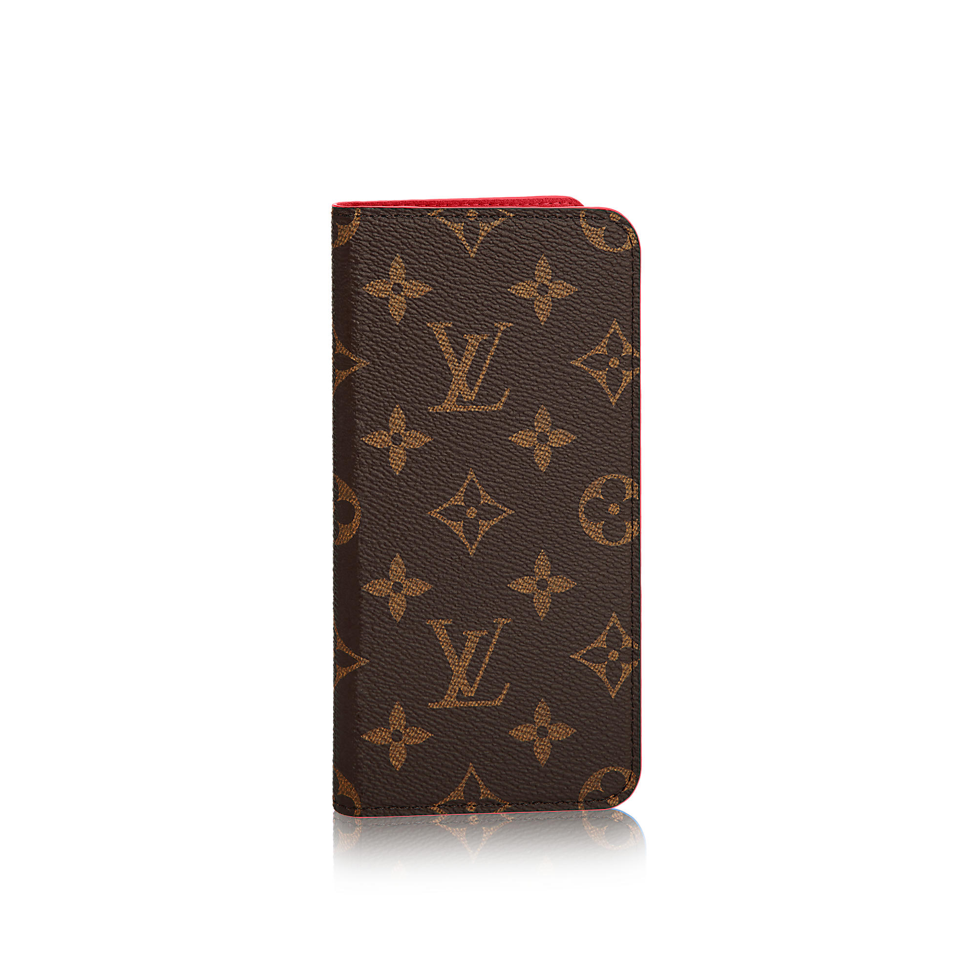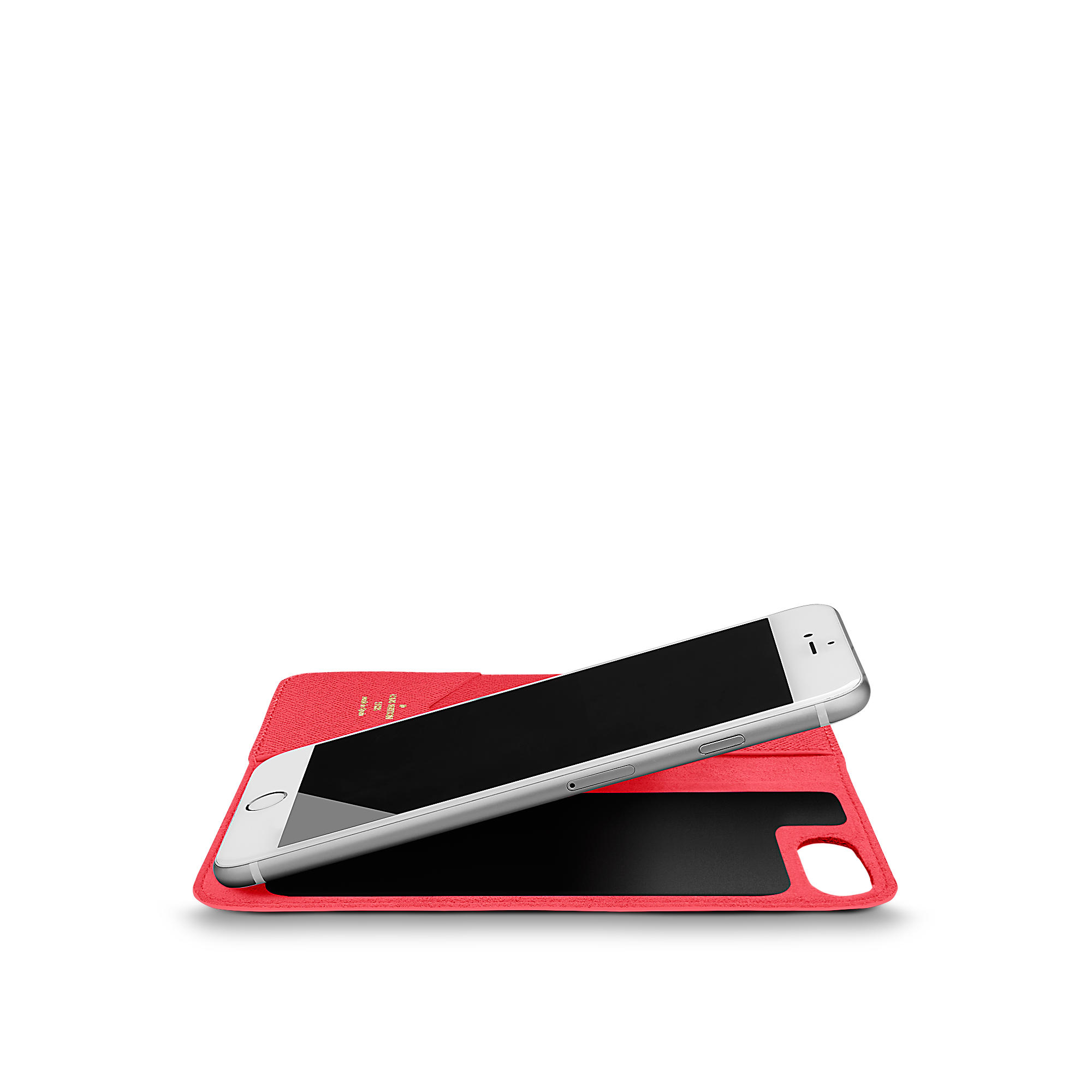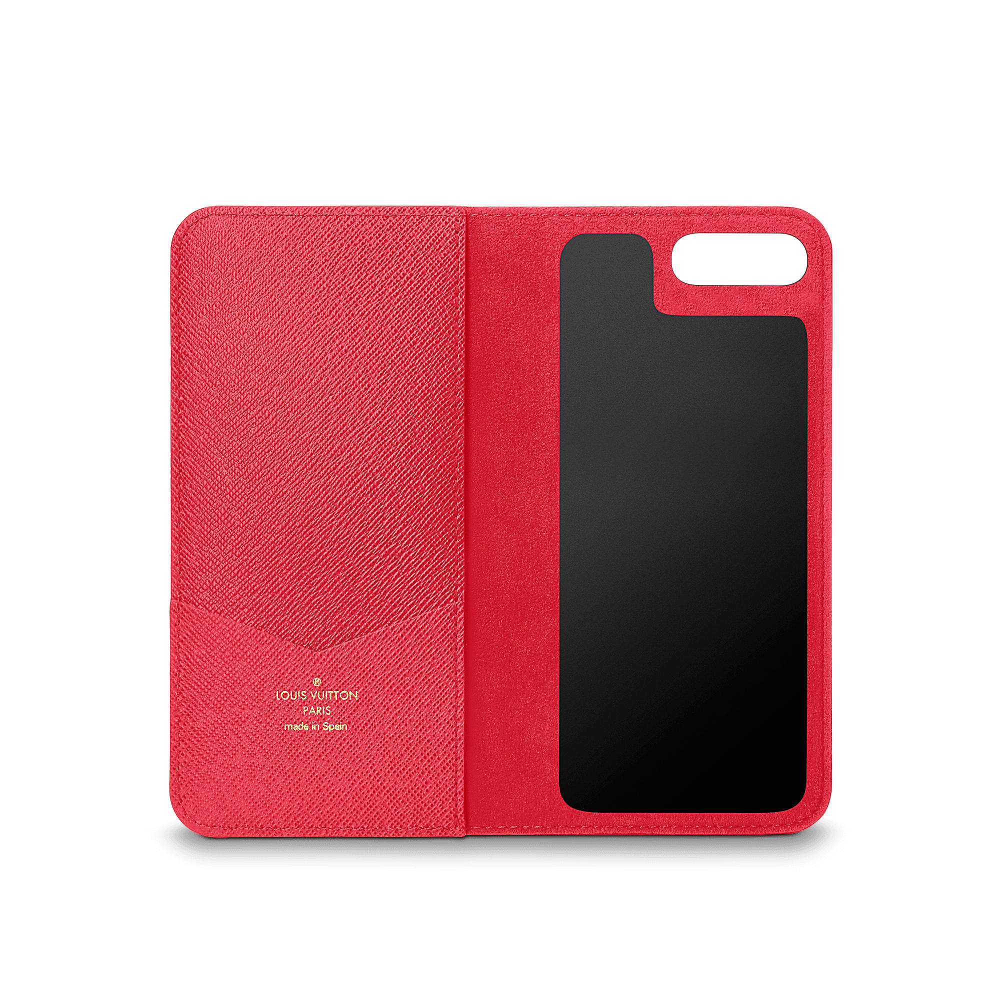 In iconic Monogram canvas with a brightly colored lining inspired by the covers of Louis Vuitton City Guides, the iPhone 7 Plus & 8 Plus Folio is as innovative as it is elegant. The functional adhesive surface, naturally integrated into its slim shape, holds the phone securely to protect it from the bumps and knocks of modern life