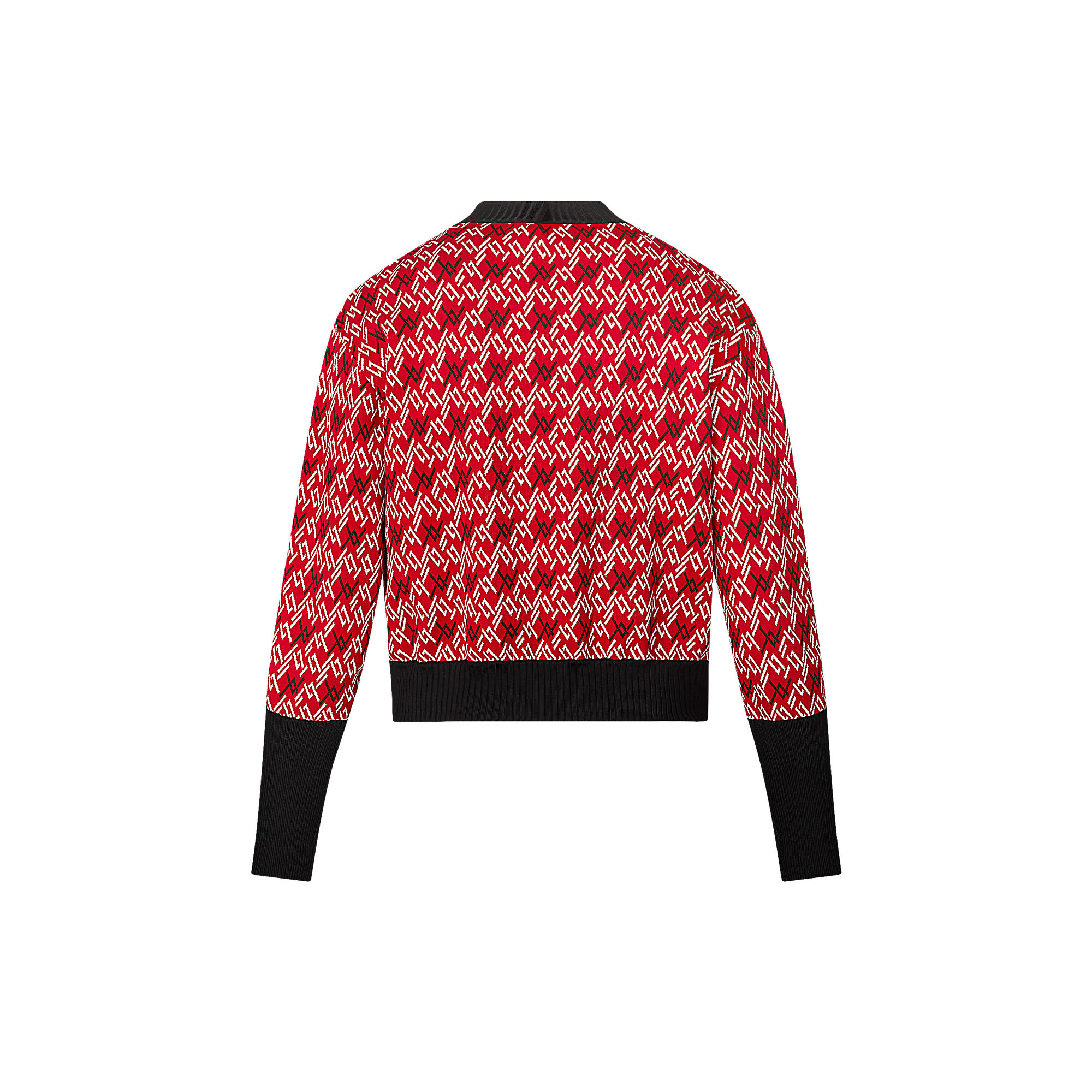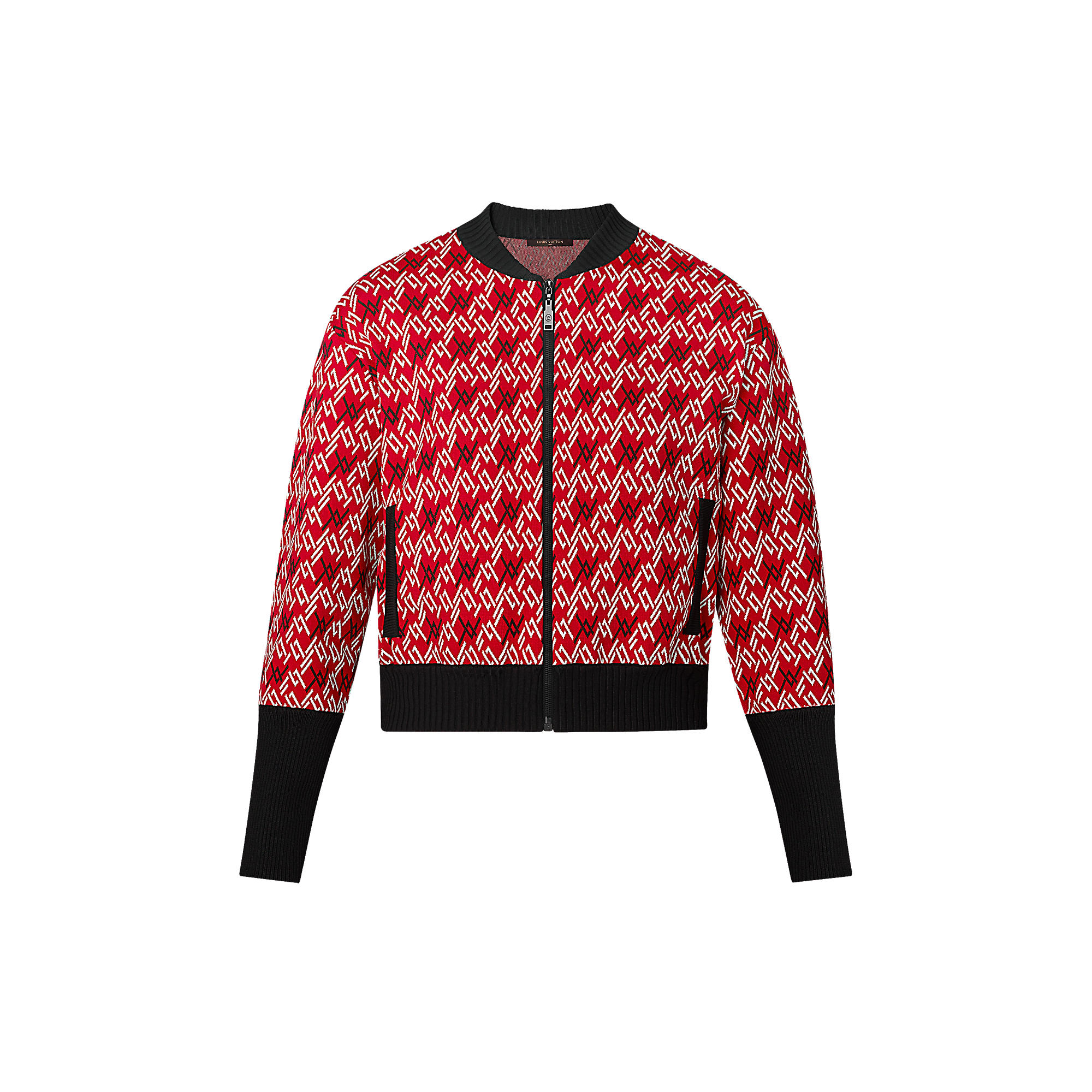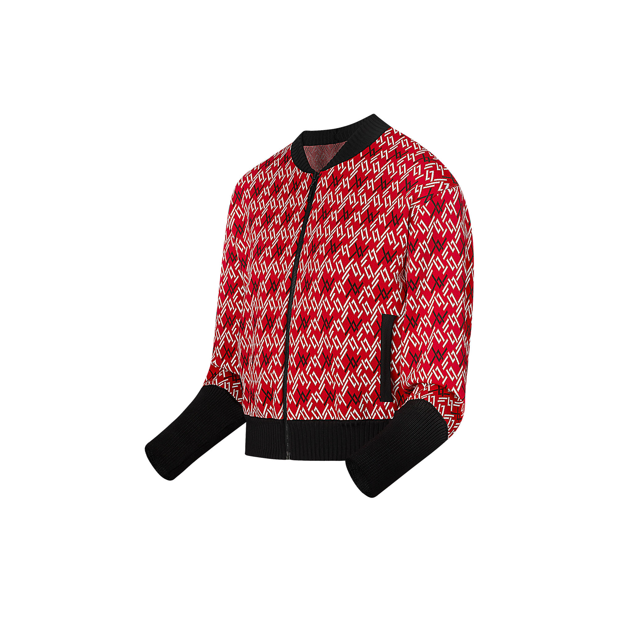 This bomber is a signature piece of this season thanks to it’s graphic design with abstract LV initials woven discreetly into the colourful pique knit jacquard fabric. Extra long ribbed cuffs are another distinctive feature.