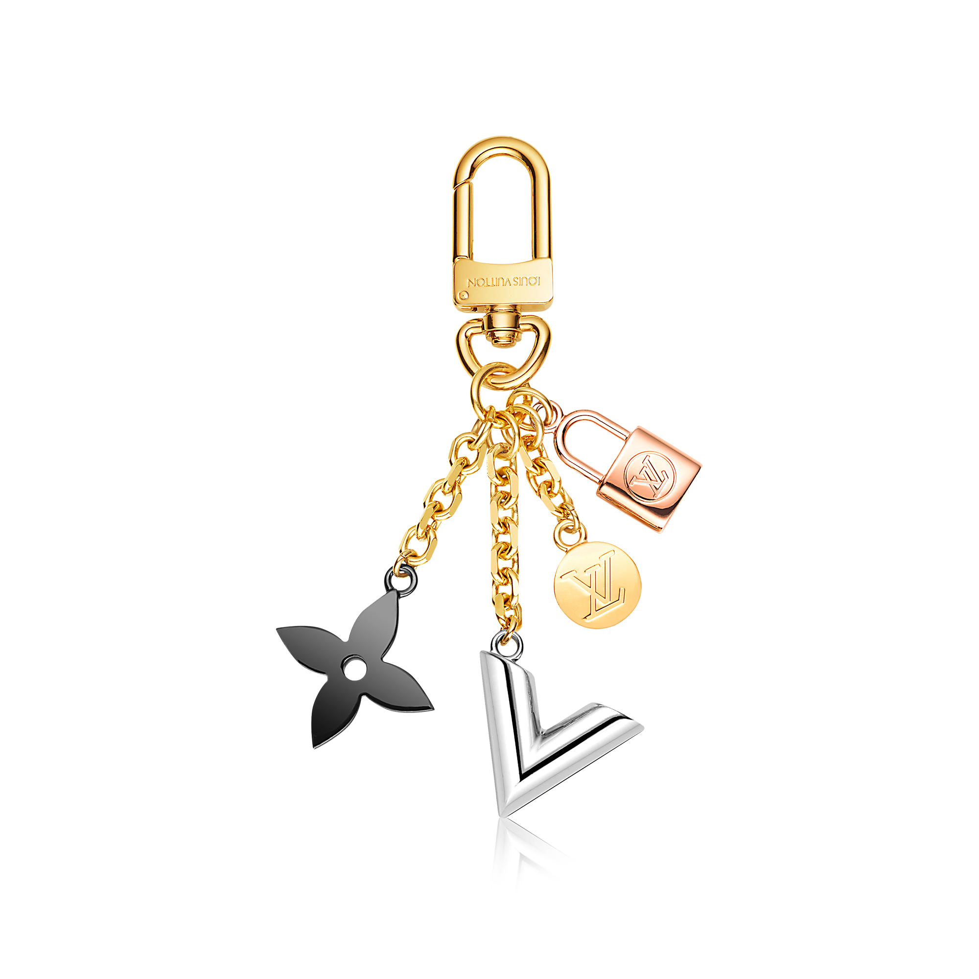This bag charm combines Louis Vuitton’s iconic signatures into a charm story. Its feminine shape is complemented by the association of diverse metal finishing.