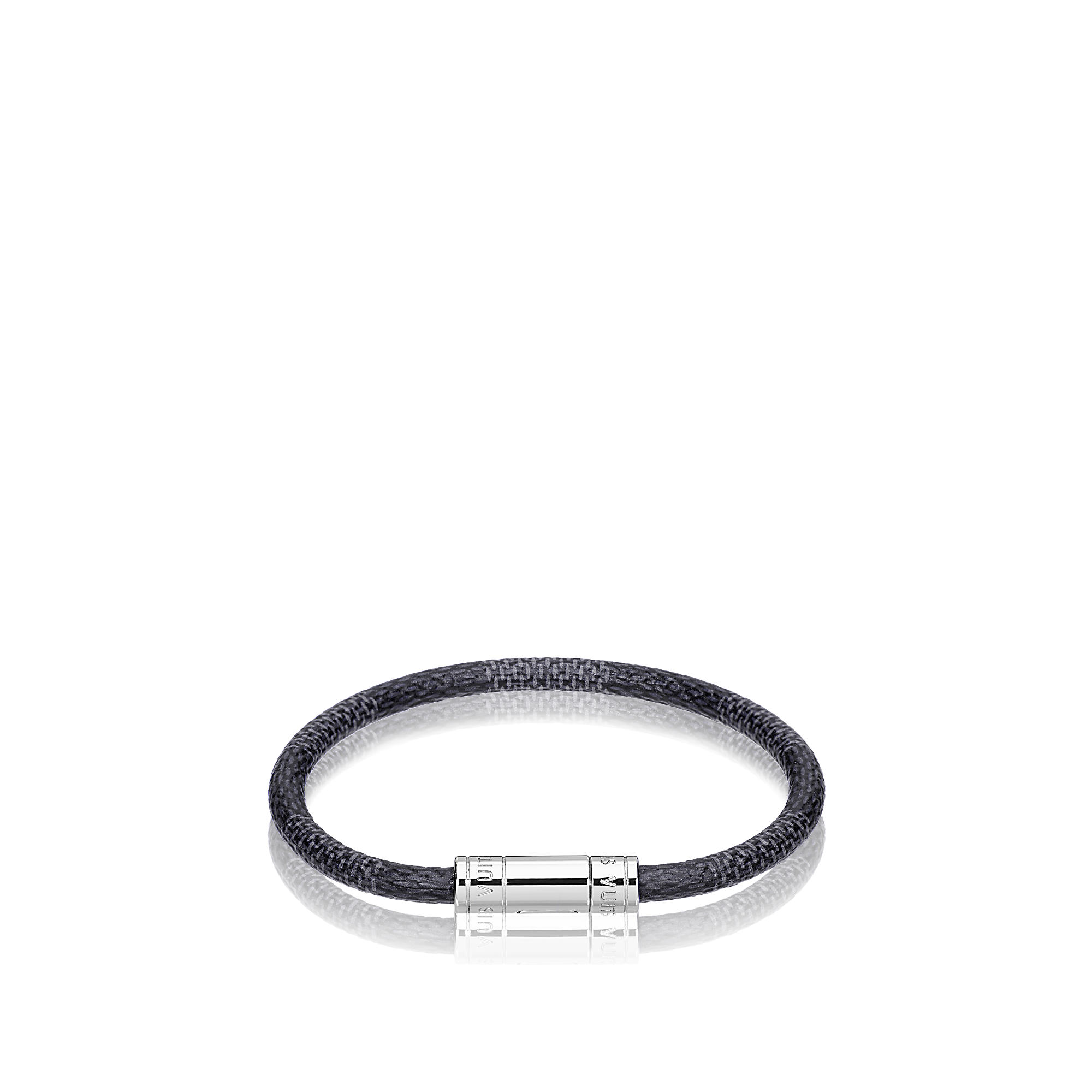 The iconic Keep It bracelet in historic Damier canvas is the perfect masculine accessory. The Louis Vuitton-engraved lock is easy to open and close.