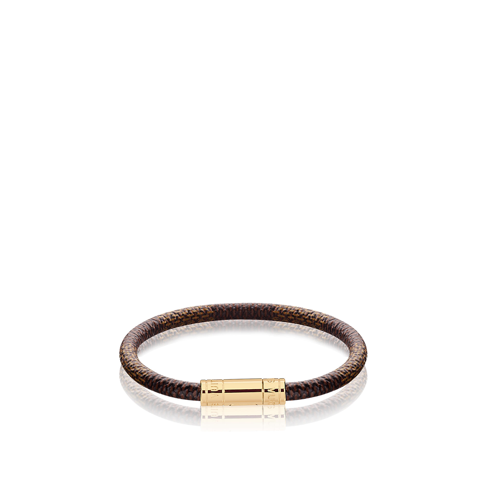 The iconic Keep It bracelet in historic Damier canvas is perfect for women. The Louis Vuitton-engraved lock is easy to open and close.
