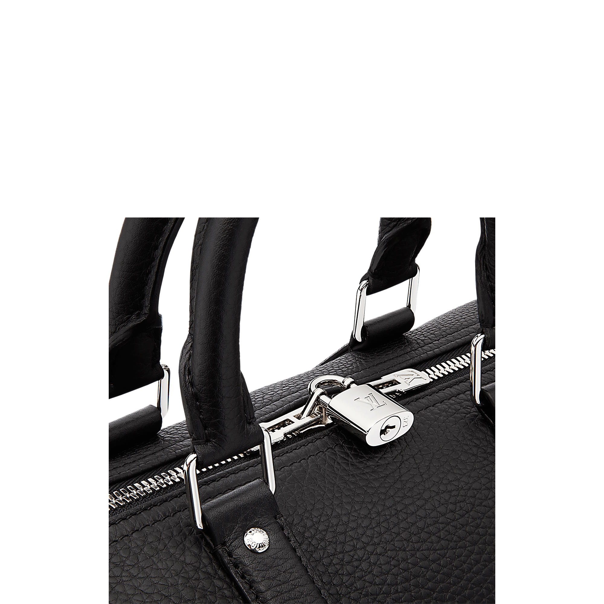 – Two-way zipper with leather loop and padlock
