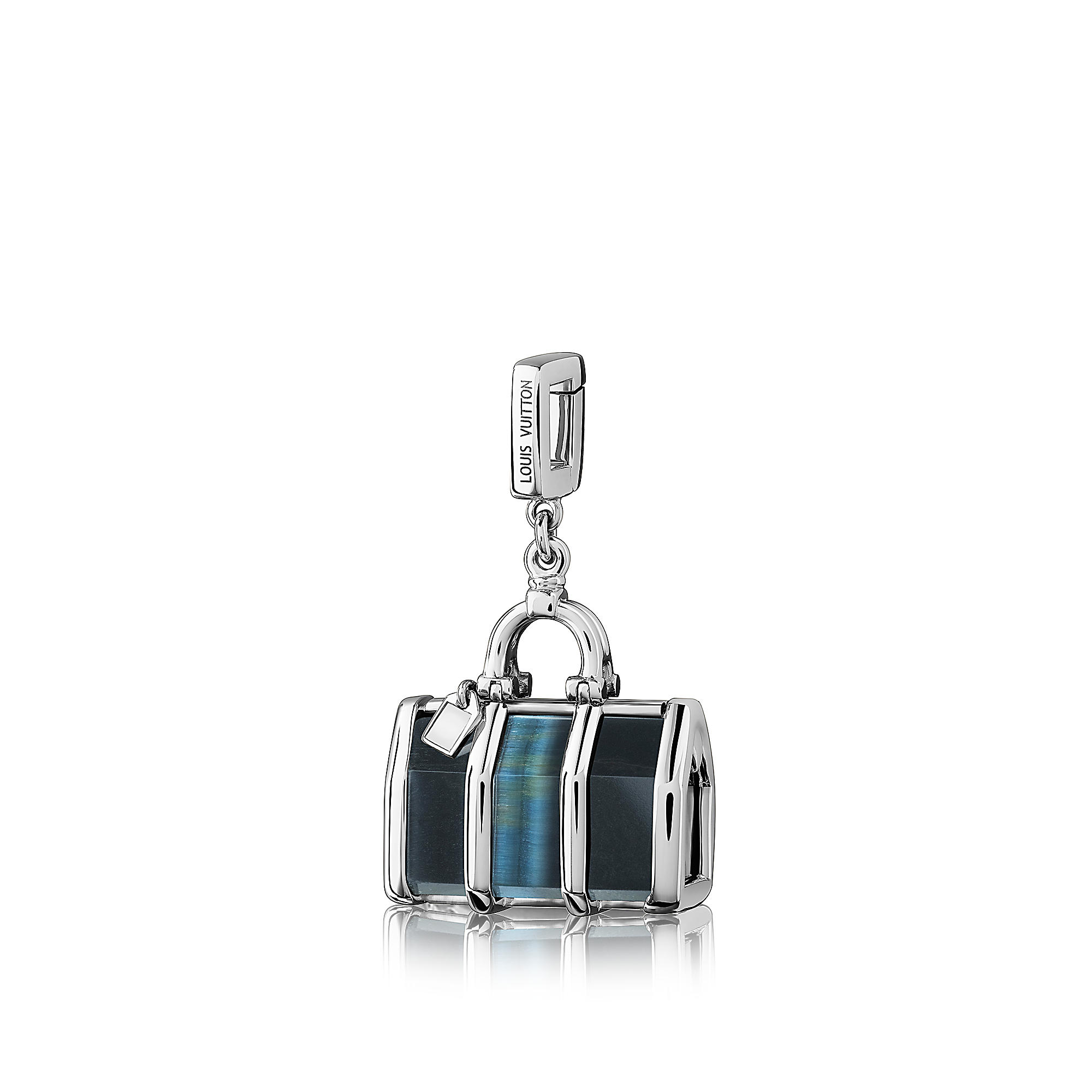 The Iconic Charms collection was inspired by Louis Vuitton’s most emblematic leather goods. Each charm is an exquisitely detailed replica in precious materials chosen to evoke the colours of the original. This miniature Keepall in white gold and hawk’s eye can be worn on a bracelet or as a pendant.