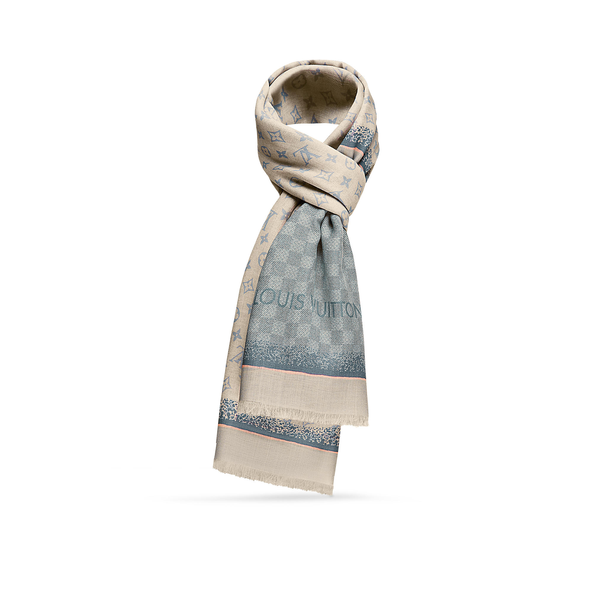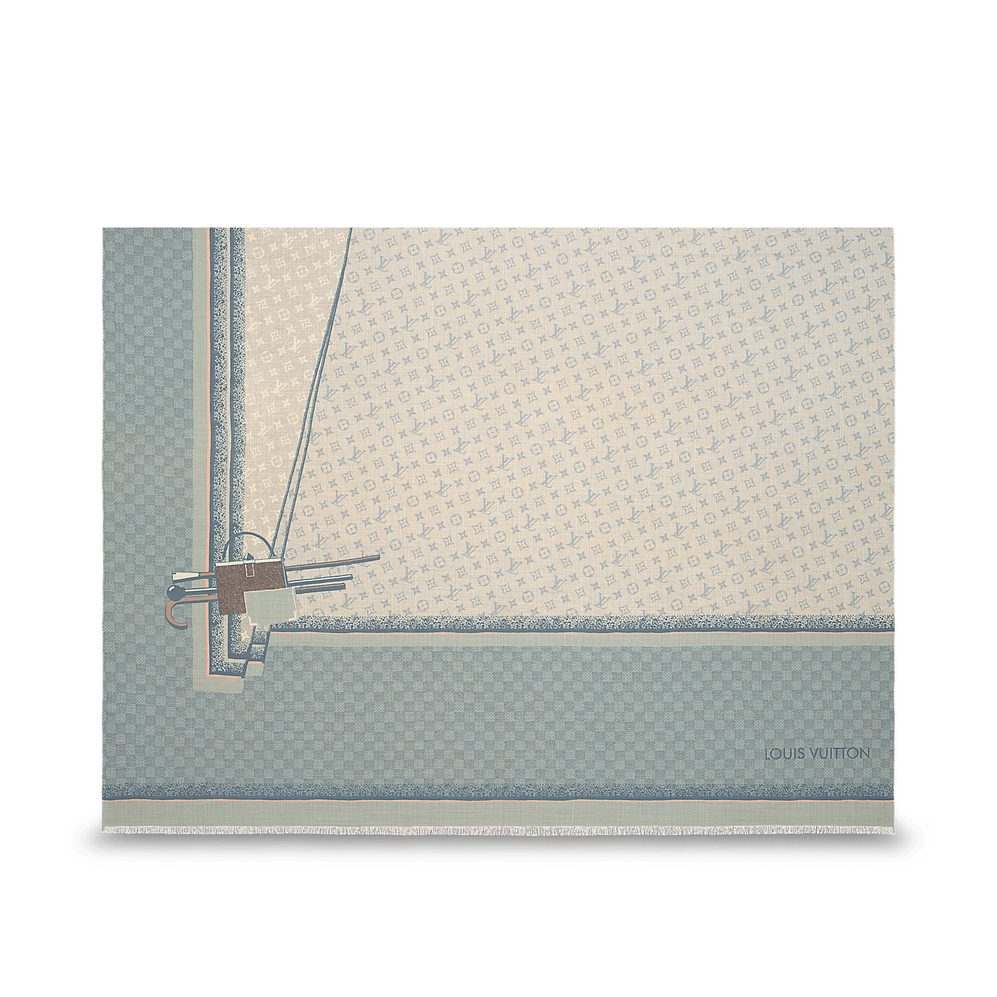 This elegant cashmere stole was inspired by Louis Vuitton’s Fall/Winter 2017 men’s show, reintepreting travel motifs from the archives. Soft, vintage colours add to the poetic quality of the design.
