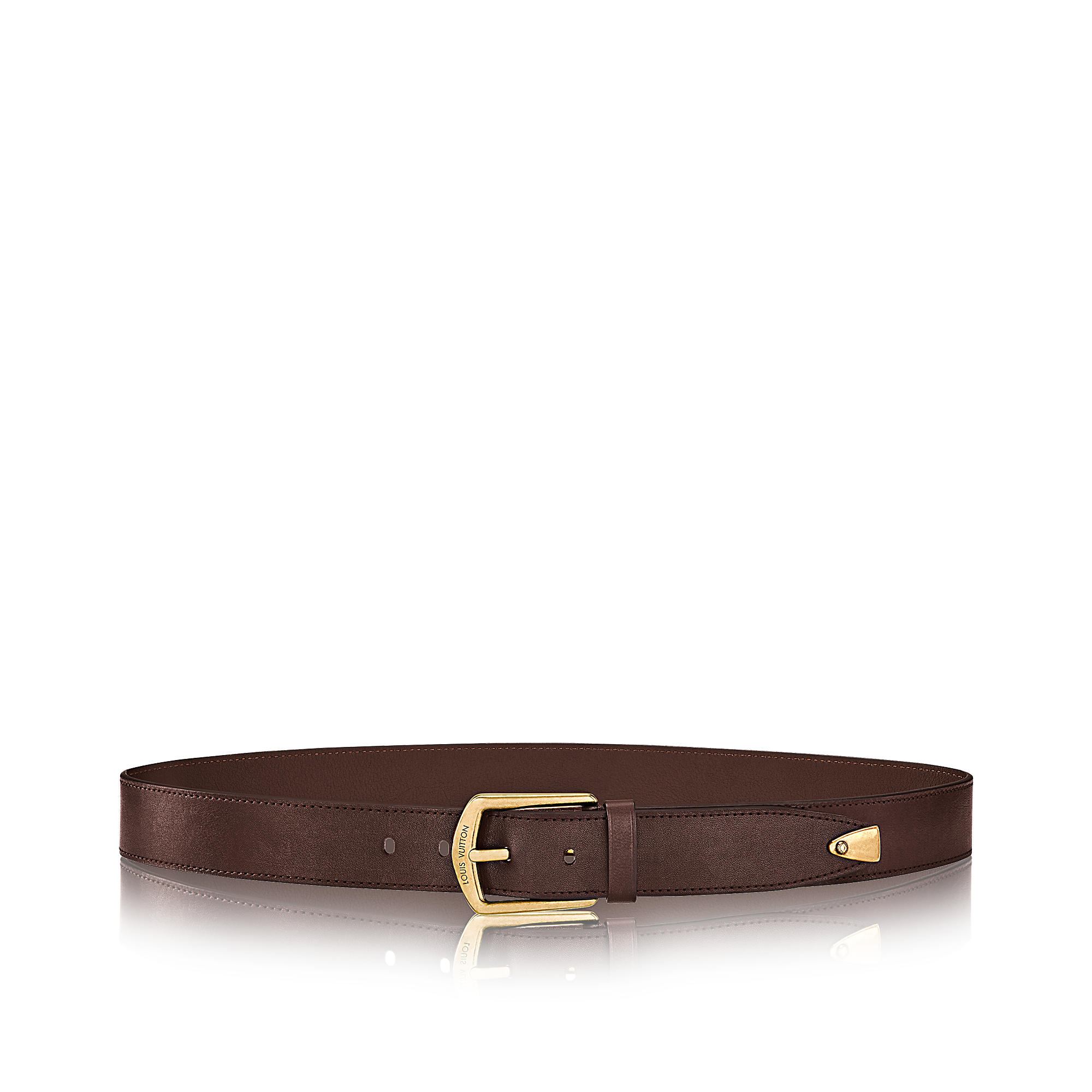 This modern and stylish belt in supple calf leather pays tribute to historic Louis Vuitton trunks with its trunk corner detail at the end of the strap. This Landscape belt is the perfect jeans belt.