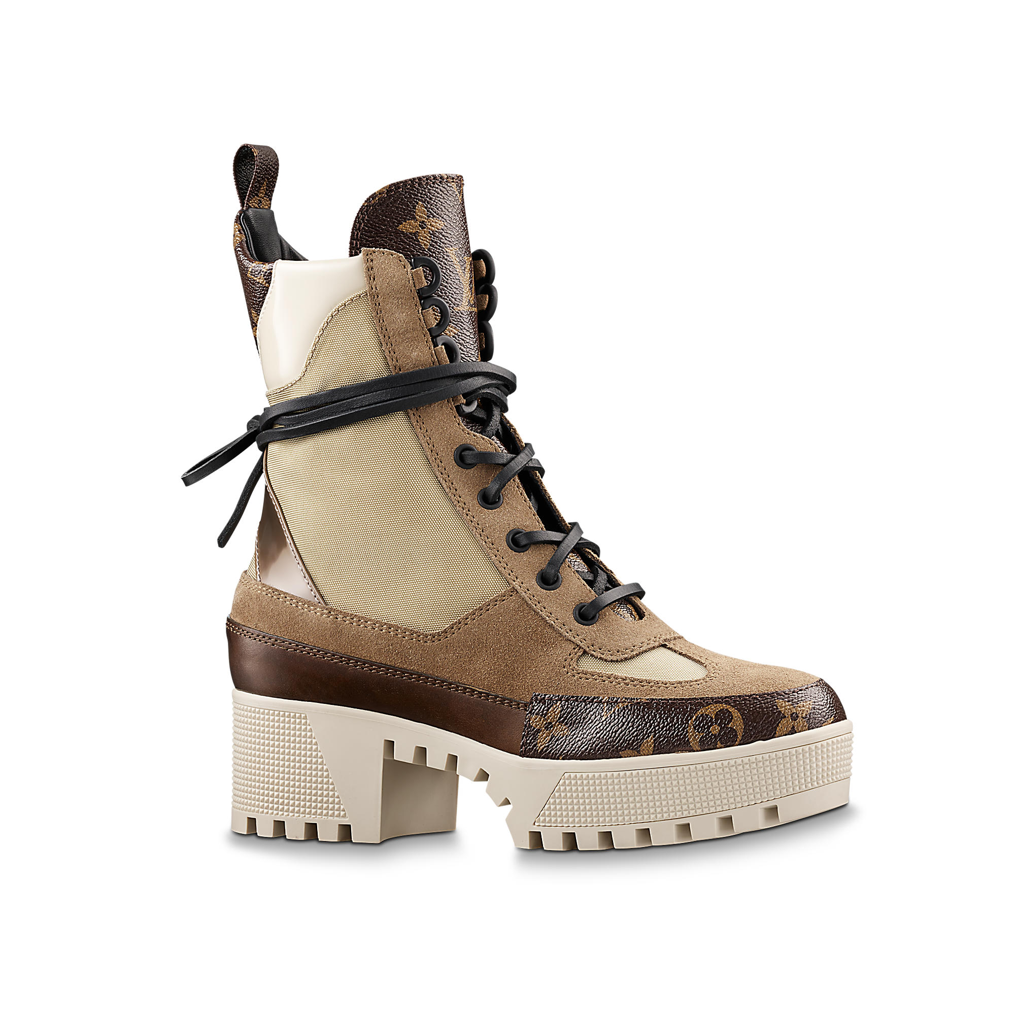 Louis Vuitton’s iconic desert boot is reinterpreted for Spring/Summer 2018 in suede calf leather and technical nylon with Monogram canvas trim.