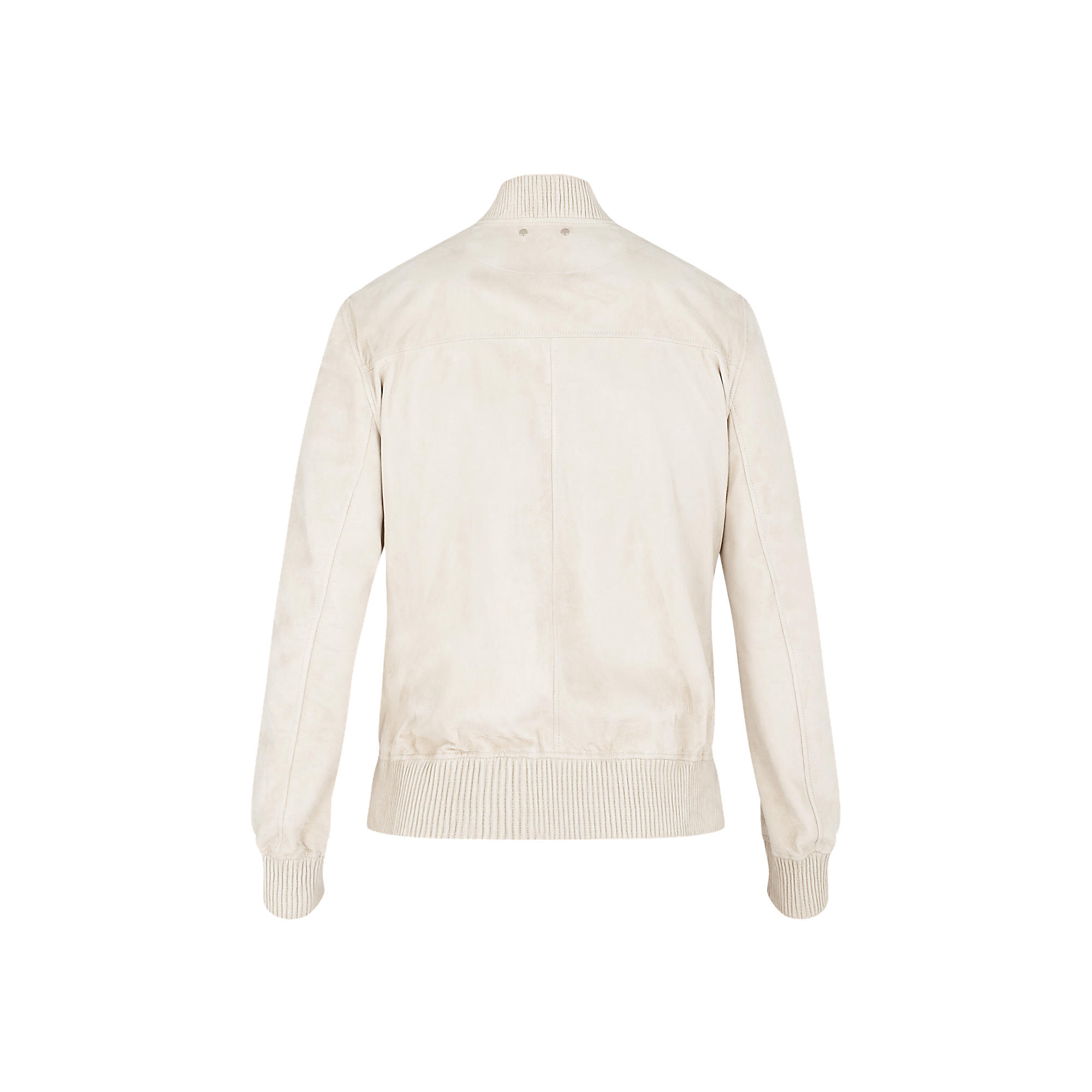 A summery piece in bicolour lambskin, featuring suede on the outside and nappa on the inside. This season’s iconic Chapman brothers elephant design is lasered onto the chest, while the piped pockets are embellished with edge dying and collar, waist and cuffs are ribbed in leather.