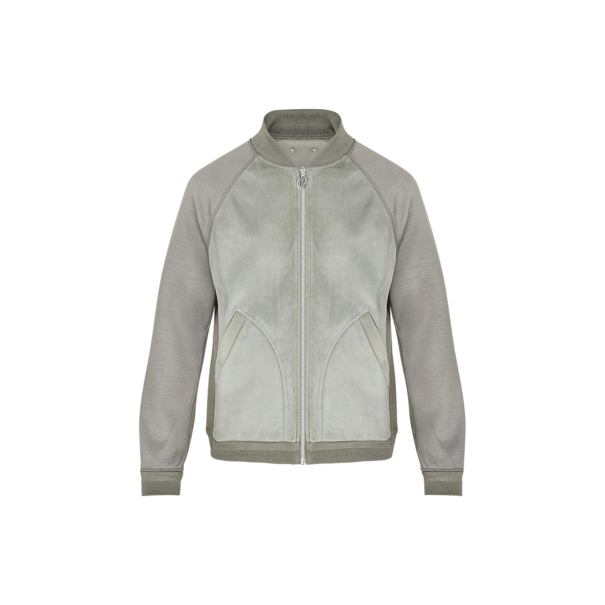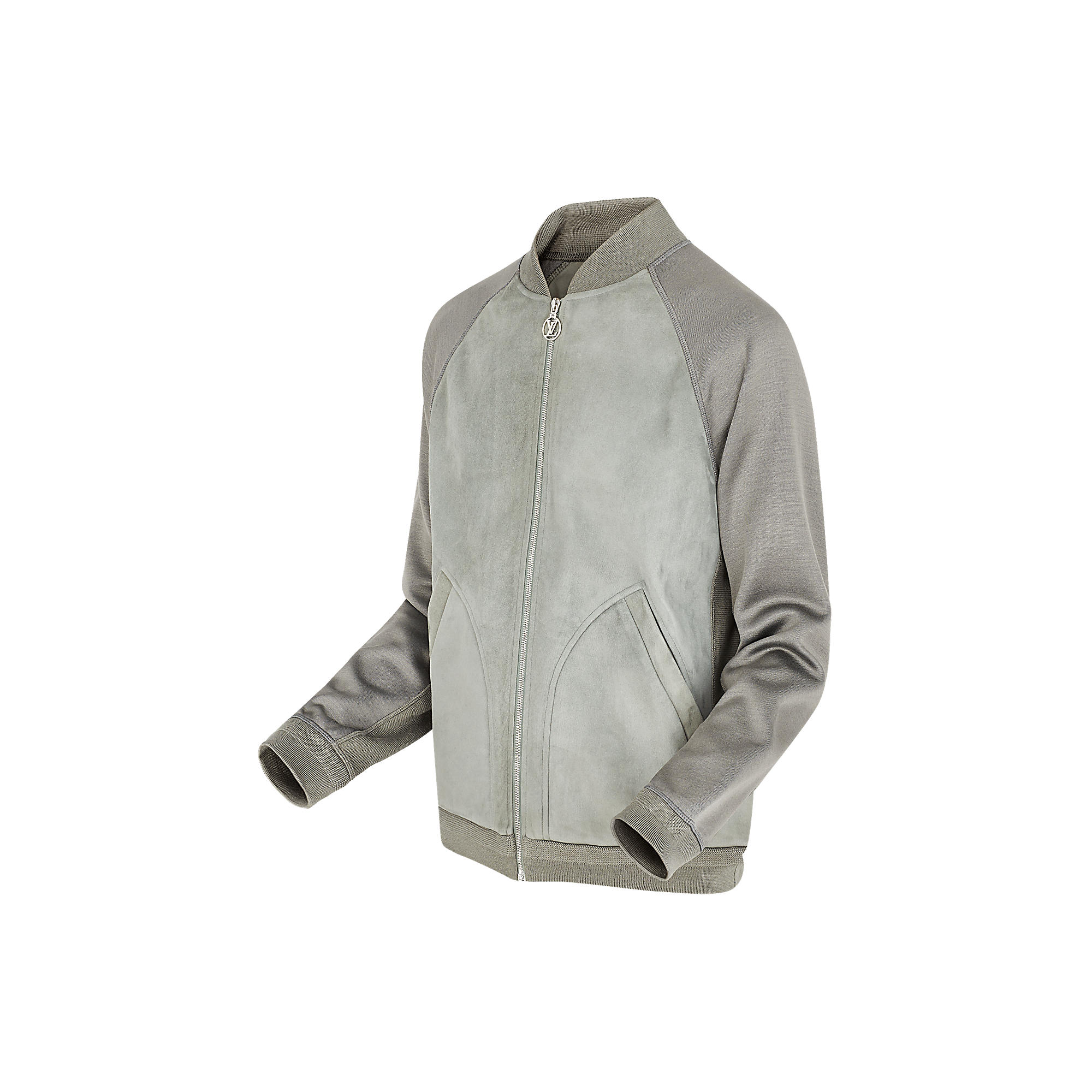 A luxurious jacket in a double face silk and cotton blend, featuring suede inserts on the front and back and knitted ribbing on the waist, cuffs and collar. Our metallic LV zip puller adds a discrete touch of branding.
