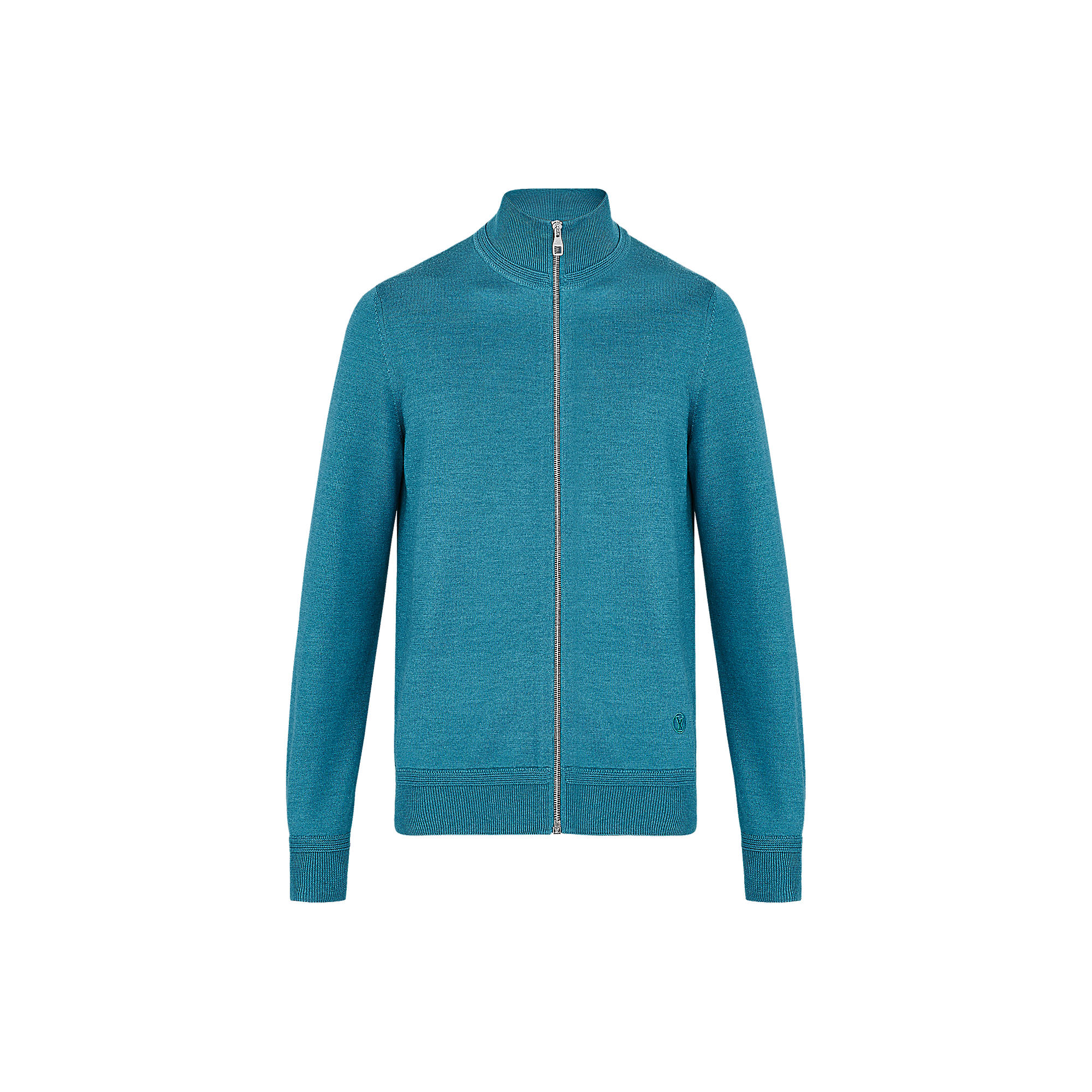 Crafted from a luxurious light blend of silk and wool, this classic zipped cardigan is available in a range of this season’s colours. The elbows feature suede patches, while an LV leather patch adds a discrete signature.