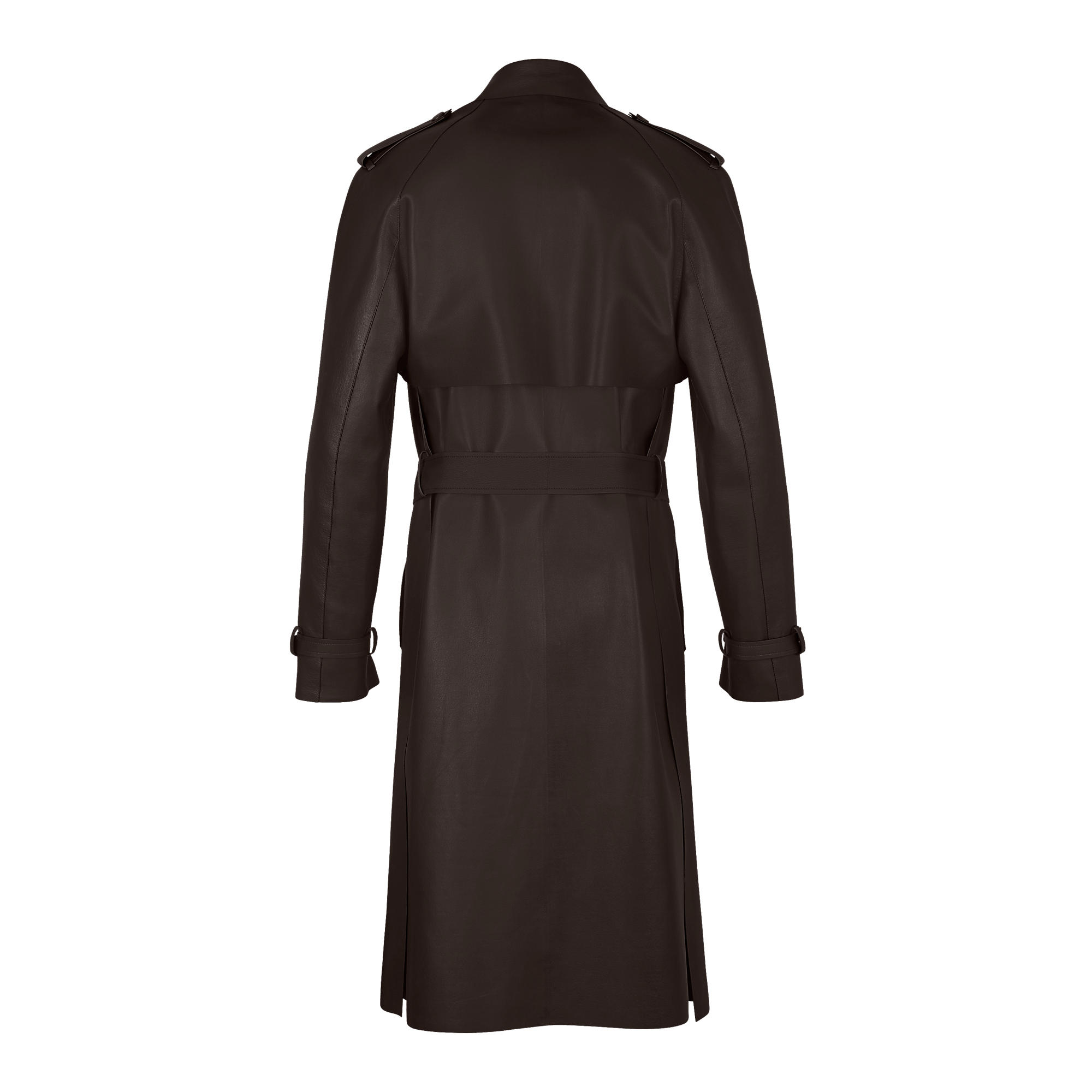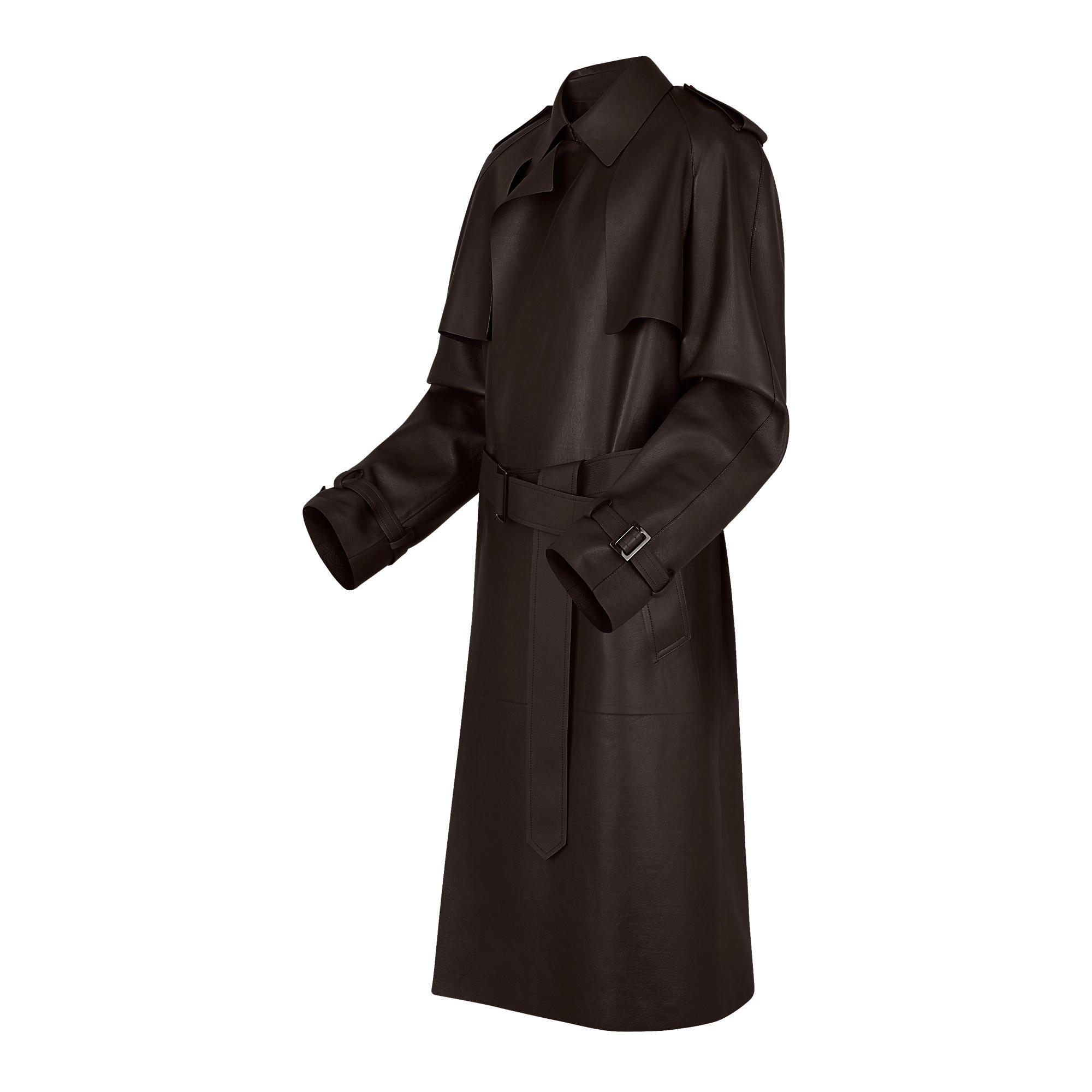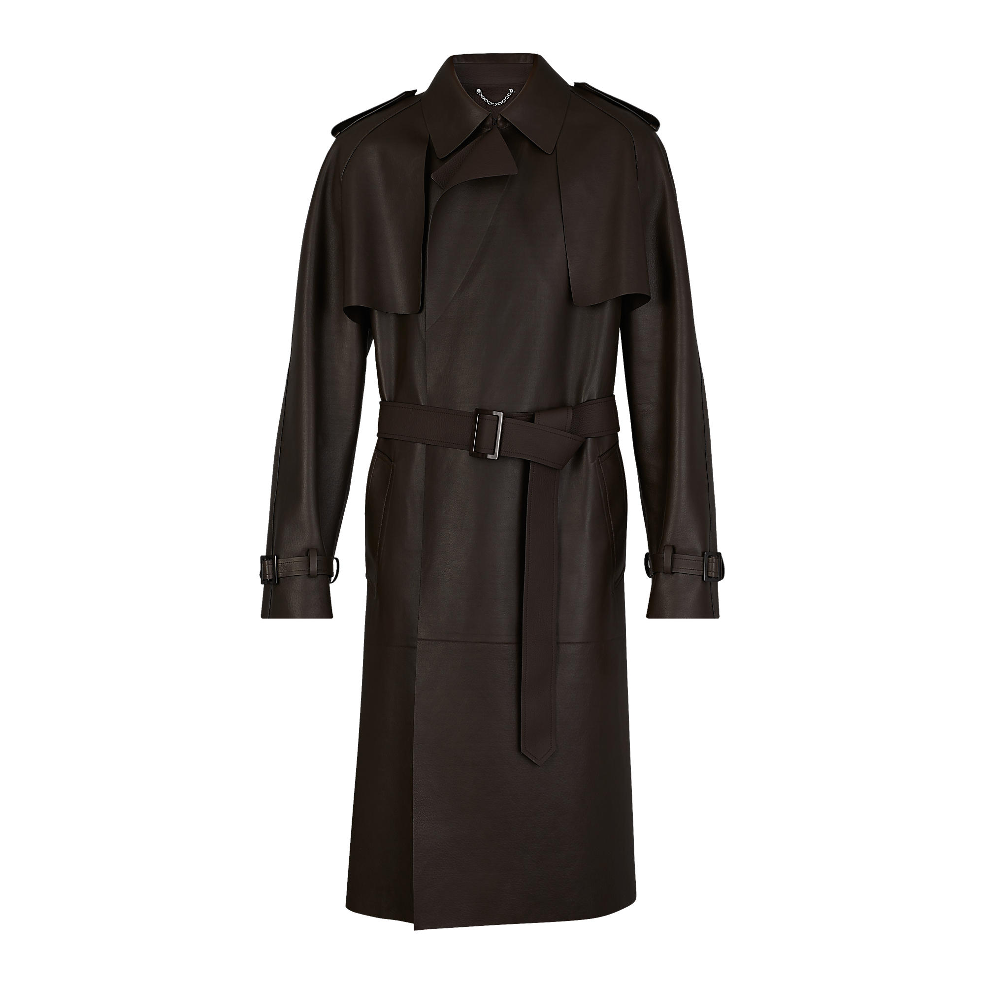 Crafted from smooth and supple lambskin leather bonded to a Napa leather interior, this belted trenchcoat offers a sophisticated silhouette.