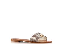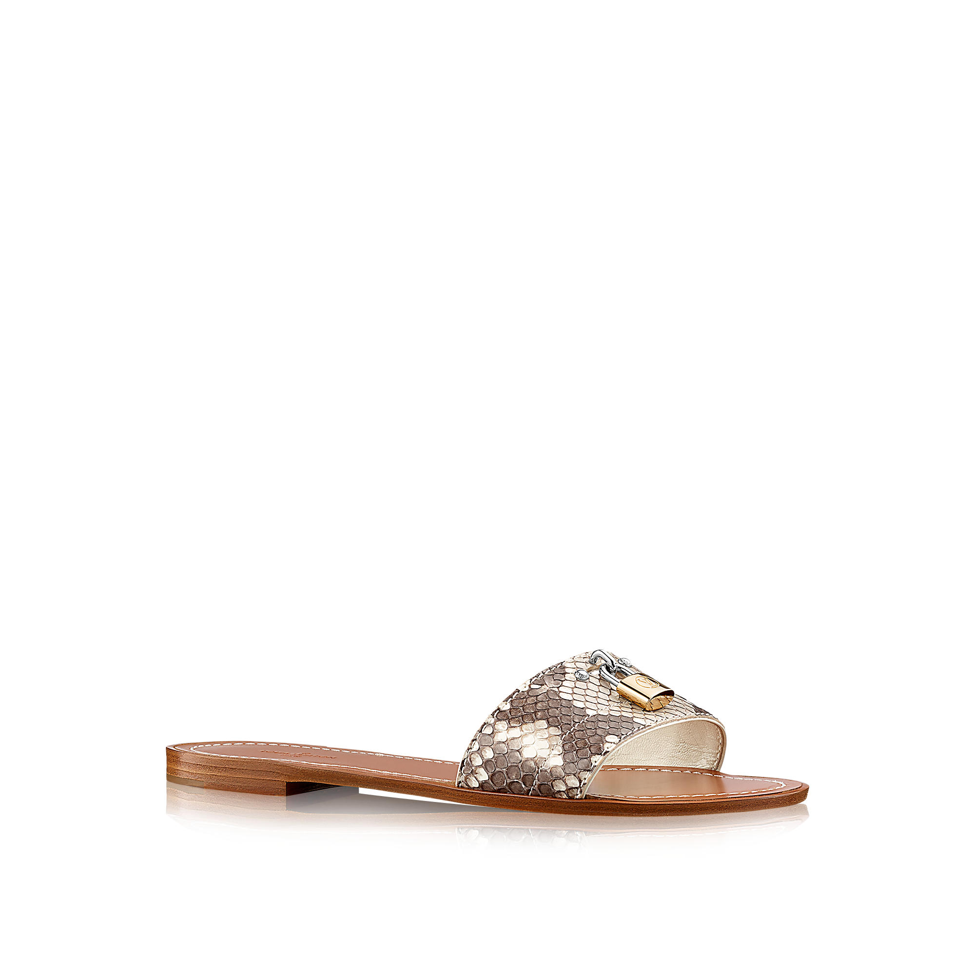 This timeless flat mule in luxurious python leather is accessorized with an iconic Louis Vuitton padlock engraved with the LV circle signature.