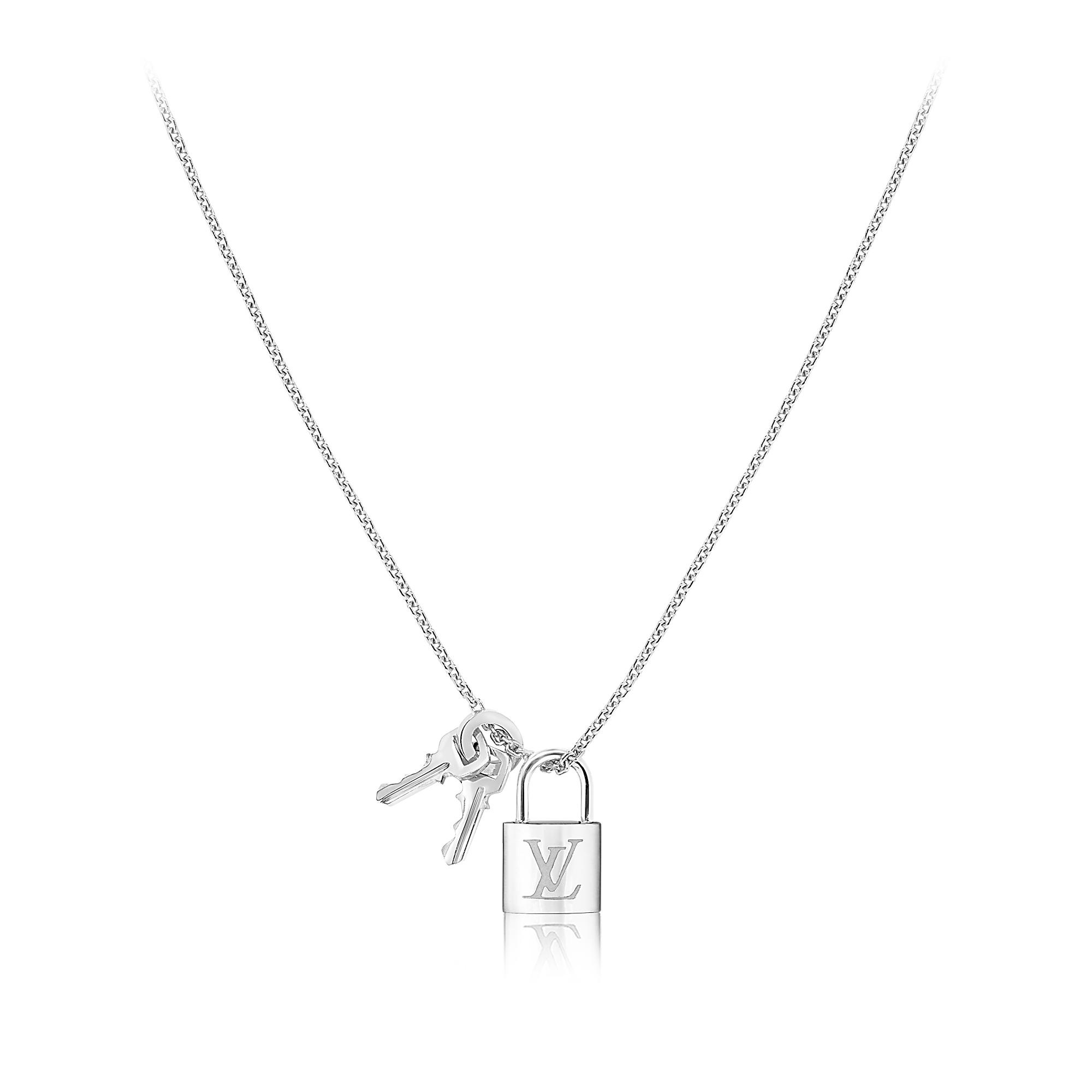 The padlock and keys, two iconic codes of Louis Vuitton, have been adorning bags and protecting the most precious belongings of our clients since the Steamer bag in 1901. In the Lockit Fine Jewellery collection, they become an audacious way to symbolize protection and attachment. Indeed, they echo the universal ”lovelocks” tradition: legend has it that attaching a padlock to the railing of bridges before throwing away the key into the water will seal love forever. Perfect for every day, this modern pendant in white gold features a padlock and keys on a chain. The padlock is removable to be worn by the loved one.