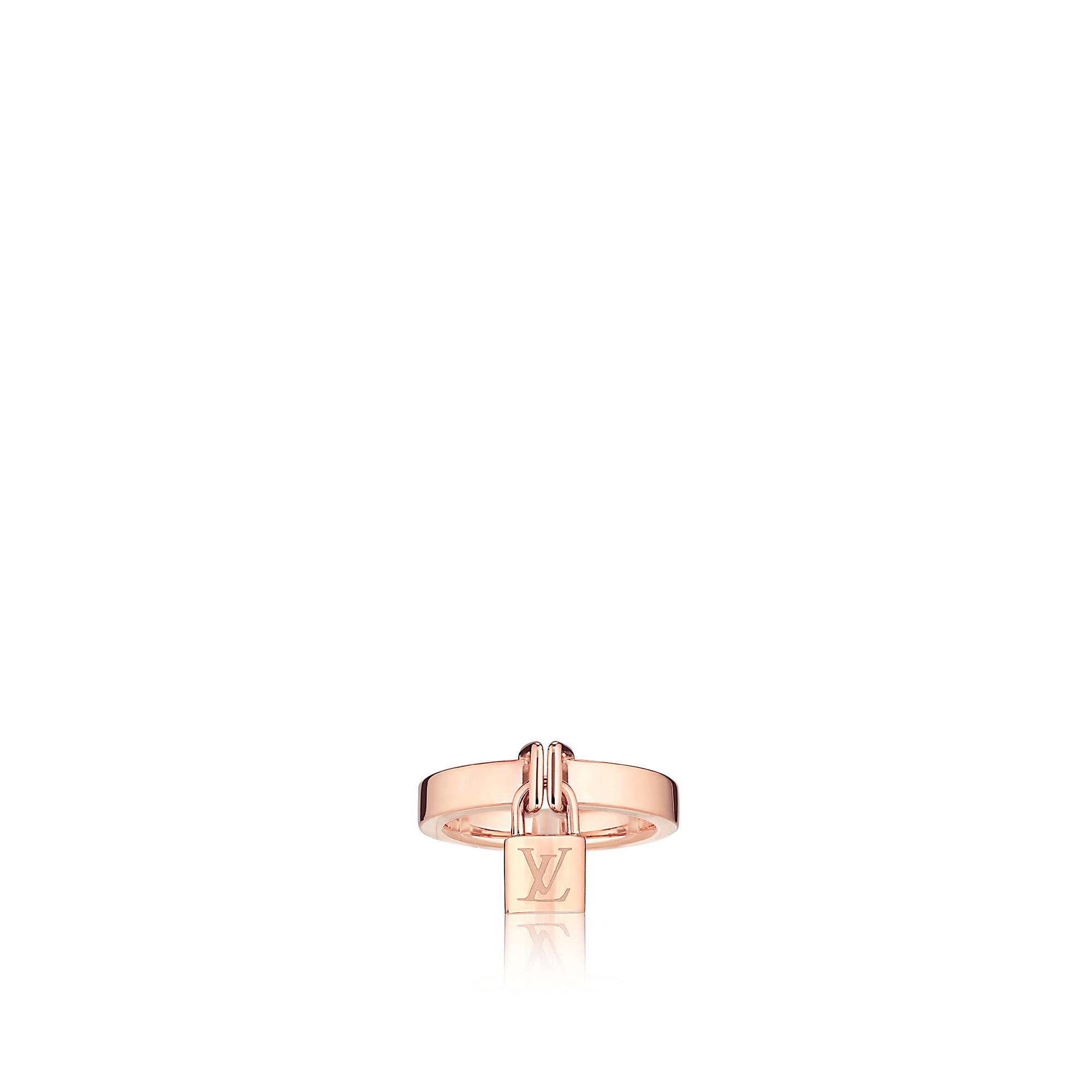 The padlock and keys, 2 iconic codes of Louis Vuitton, have been adorning bags and protecting the most precious belongings of our clients since the Steamer bag in 1901. In the Lockit Fine Jewellery collection, they become an audacious way to symbolize protection and attachment. Indeed, they echo the universal ”lovelocks” tradition: legend has it that attaching a padlock to the railing of bridges before throwing away the key into the water will seal love forever. With its miniature LV padlock that moves playfully with the hand, this charming pink gold ring evokes the closing system of the historic Steamer bag.