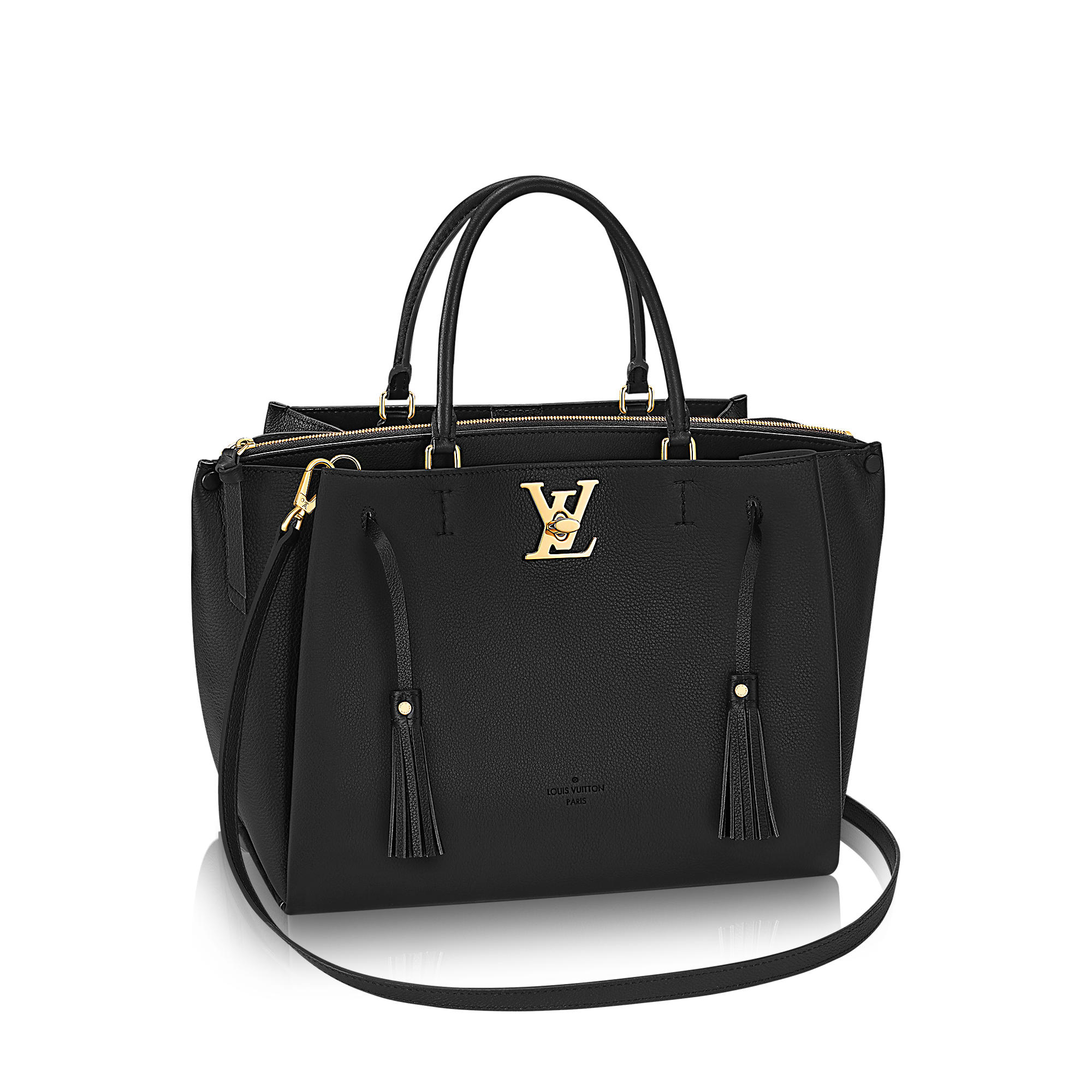 Perfect for every day, the Lockme Tote in soft calfskin combines a spacious, functional design with sophisticated, feminine details, including swinging tassels and the LV twist-lock, a signature of the Lockme line.