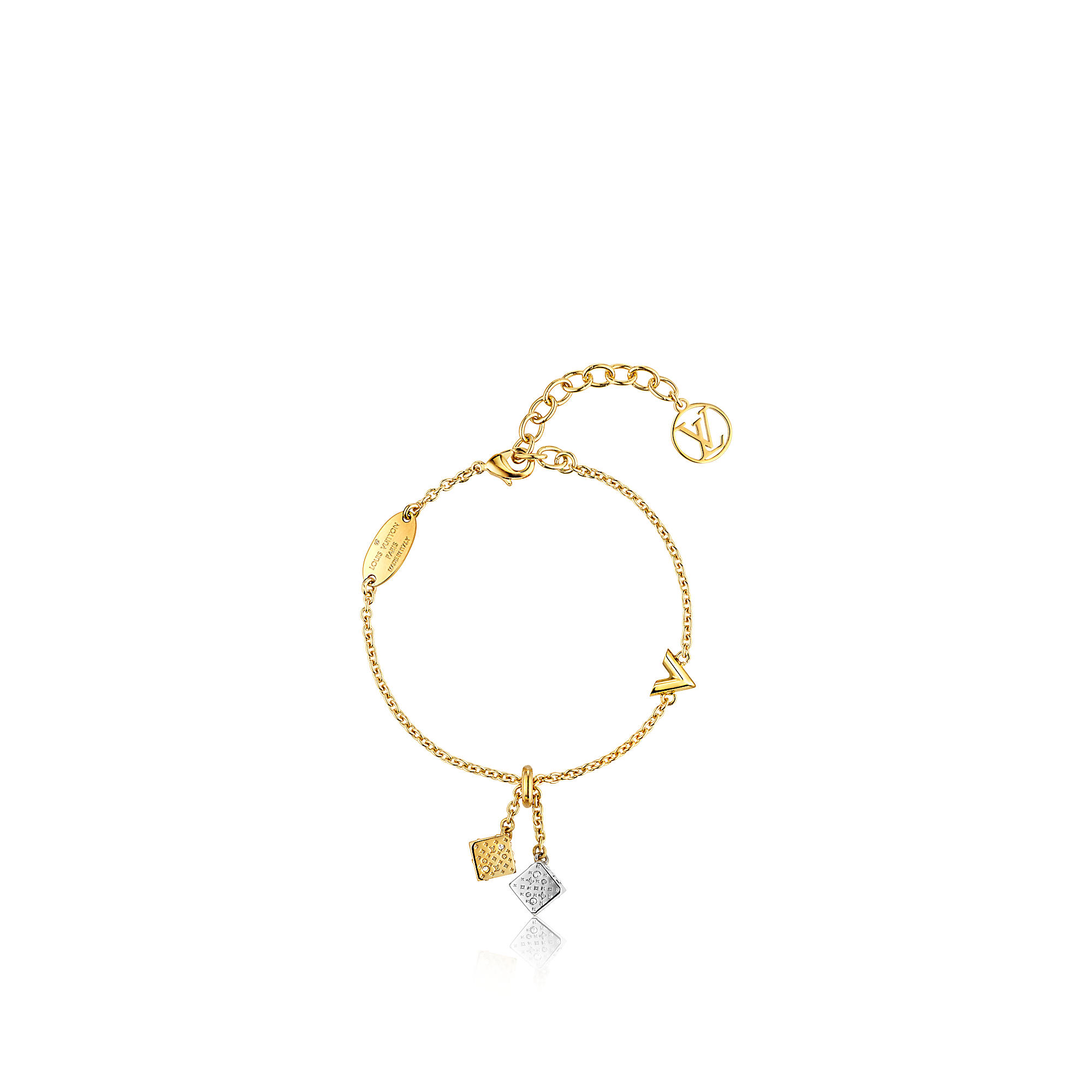 The duet of dice on this bracelet acts as lucky charms, illuminated with feminine strass and delicately engraved with the Maison’s iconic Monogram pattern. Playful and ideal to be worn in accumulation, it makes a perfect gift.