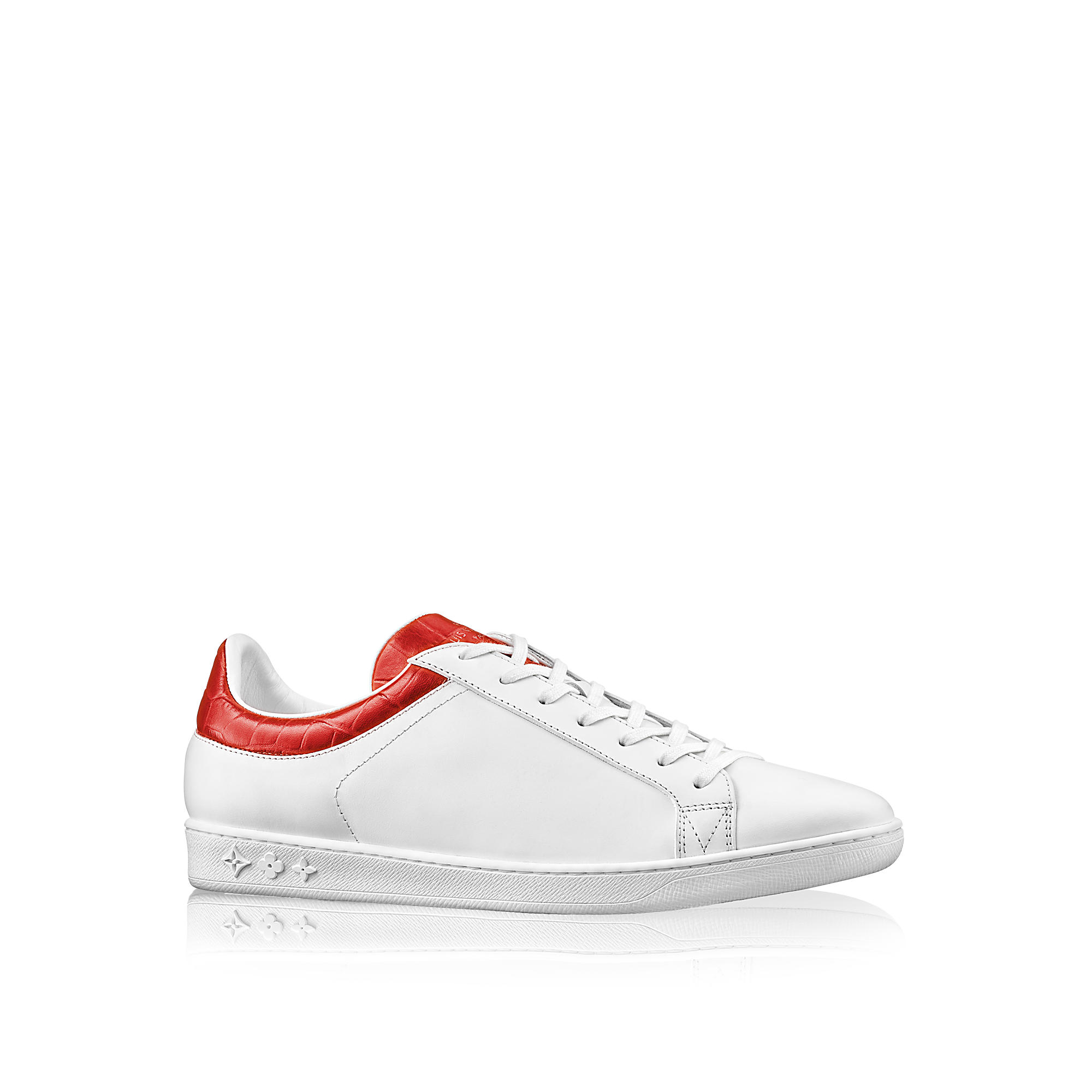 Sneaker in plain and embossed calf leather, rubber outsole with debossed Monogram flowers.