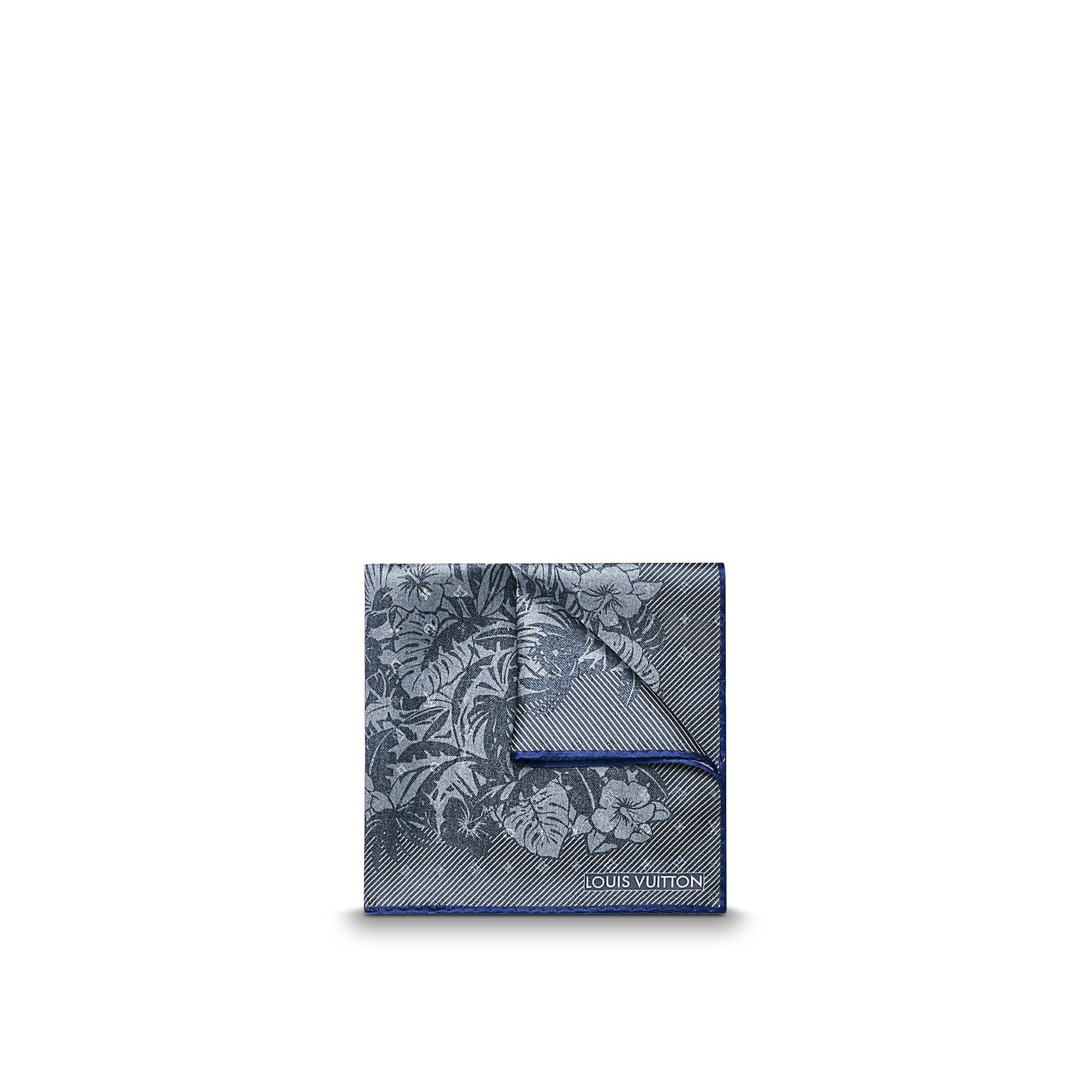 Inspired by the season’s Hawaiian fashion theme, this pocket square offers a delicate and poetic way of playing a floral print with fine stripes. Available in a refined denimy-grey, it is a perfect accompaniment for fashion-forward looks.