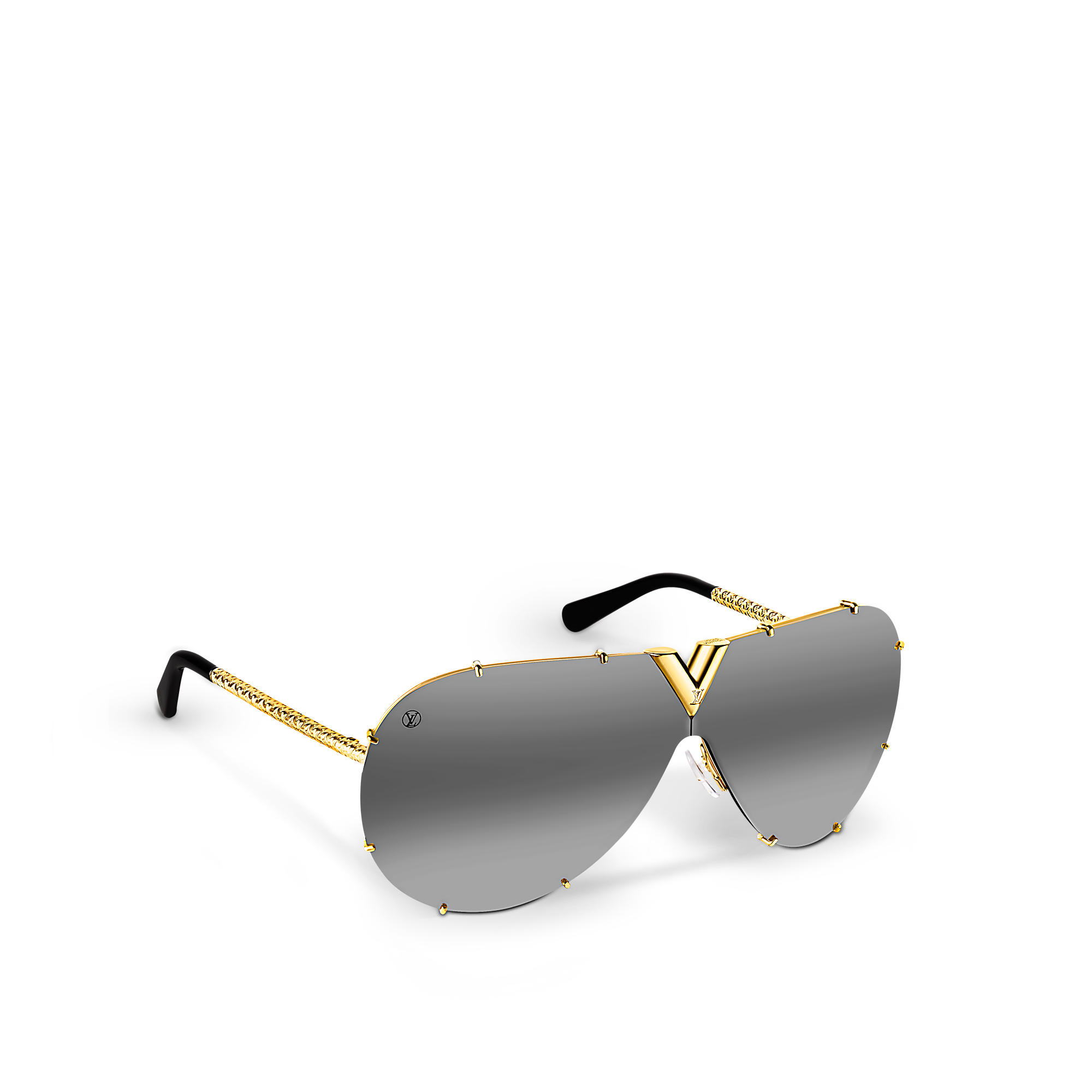 – Oversized Essential V on front, LV Circle logo on lenses