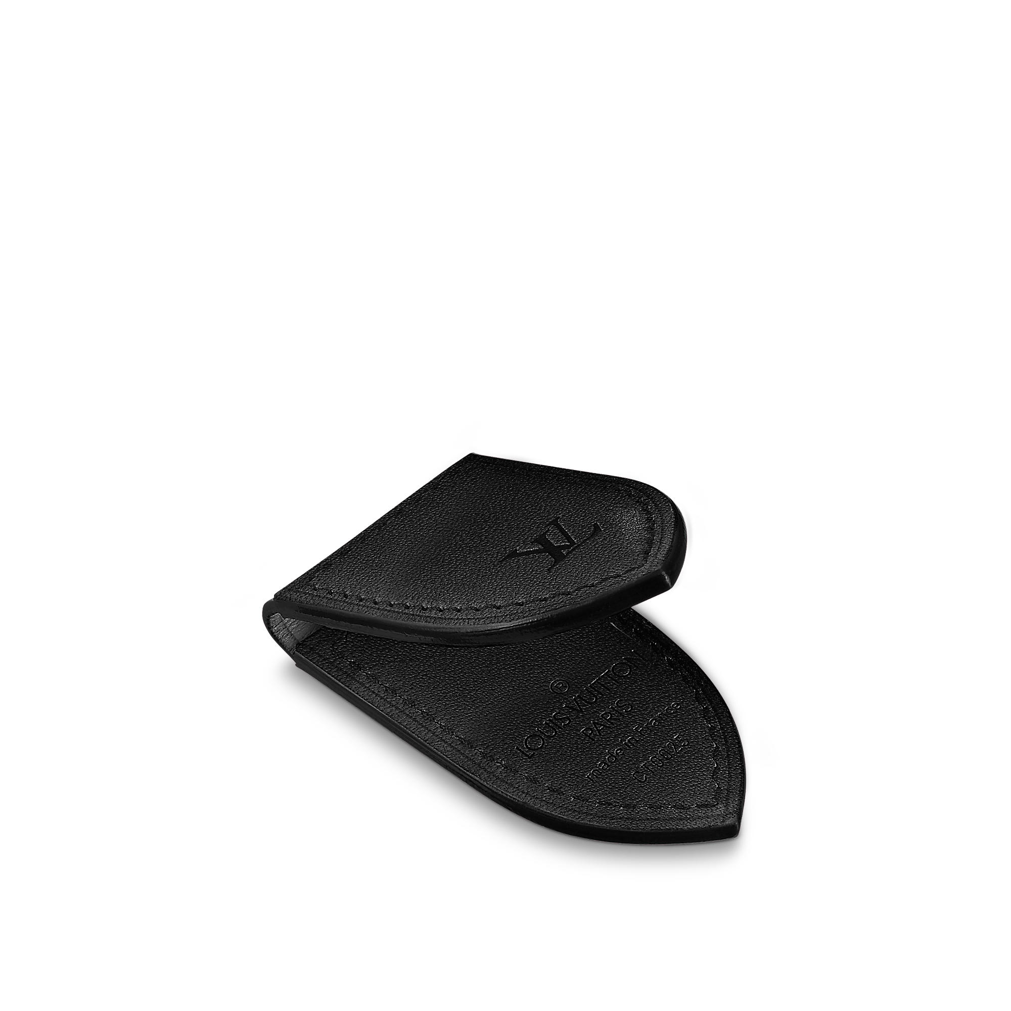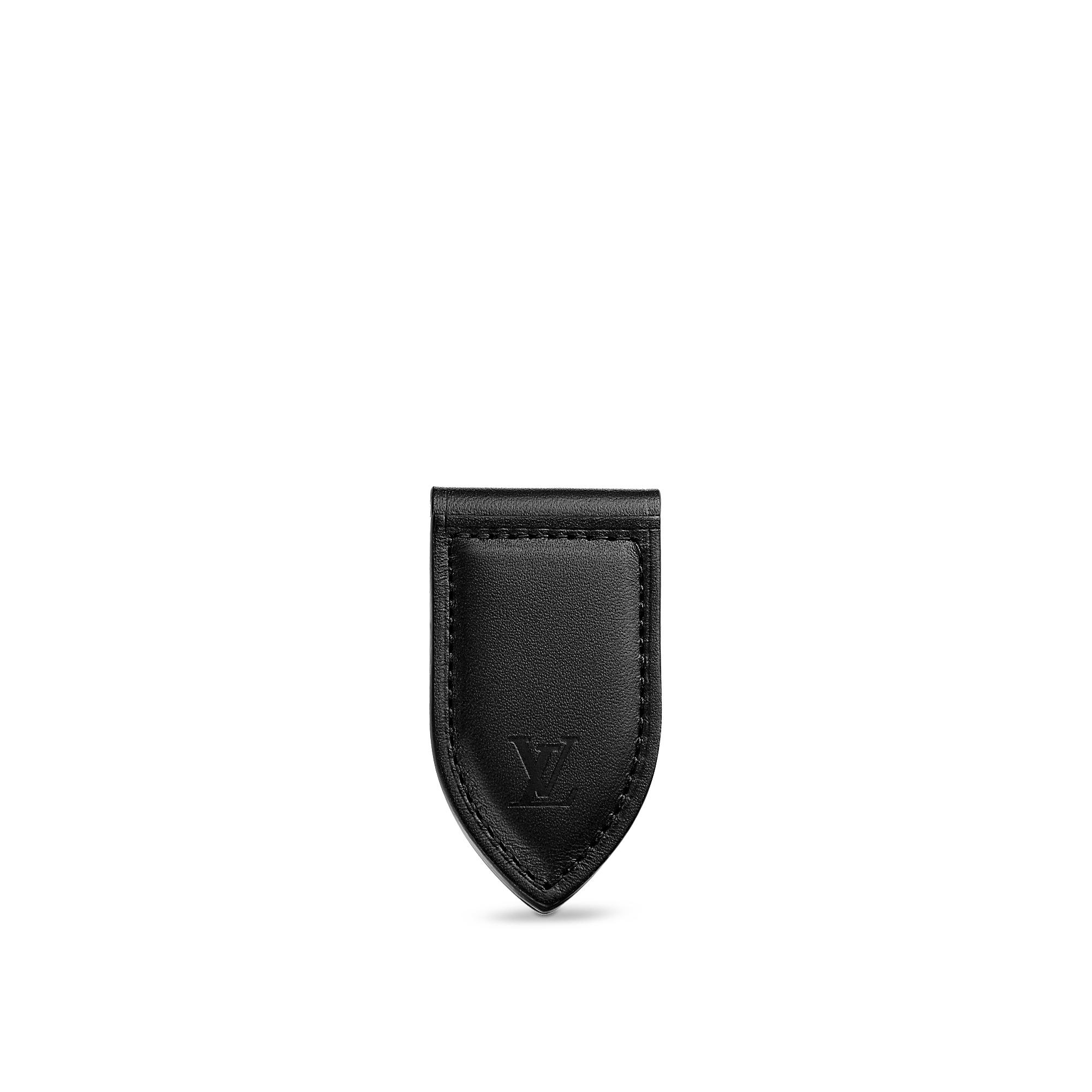 In a tribute to Louis Vuitton’s travel universe, this functional bill clip is inspired by the leather straps from the Maison’s historic trunks. Its refined black finish is a perfect match for the Maison’s belts.