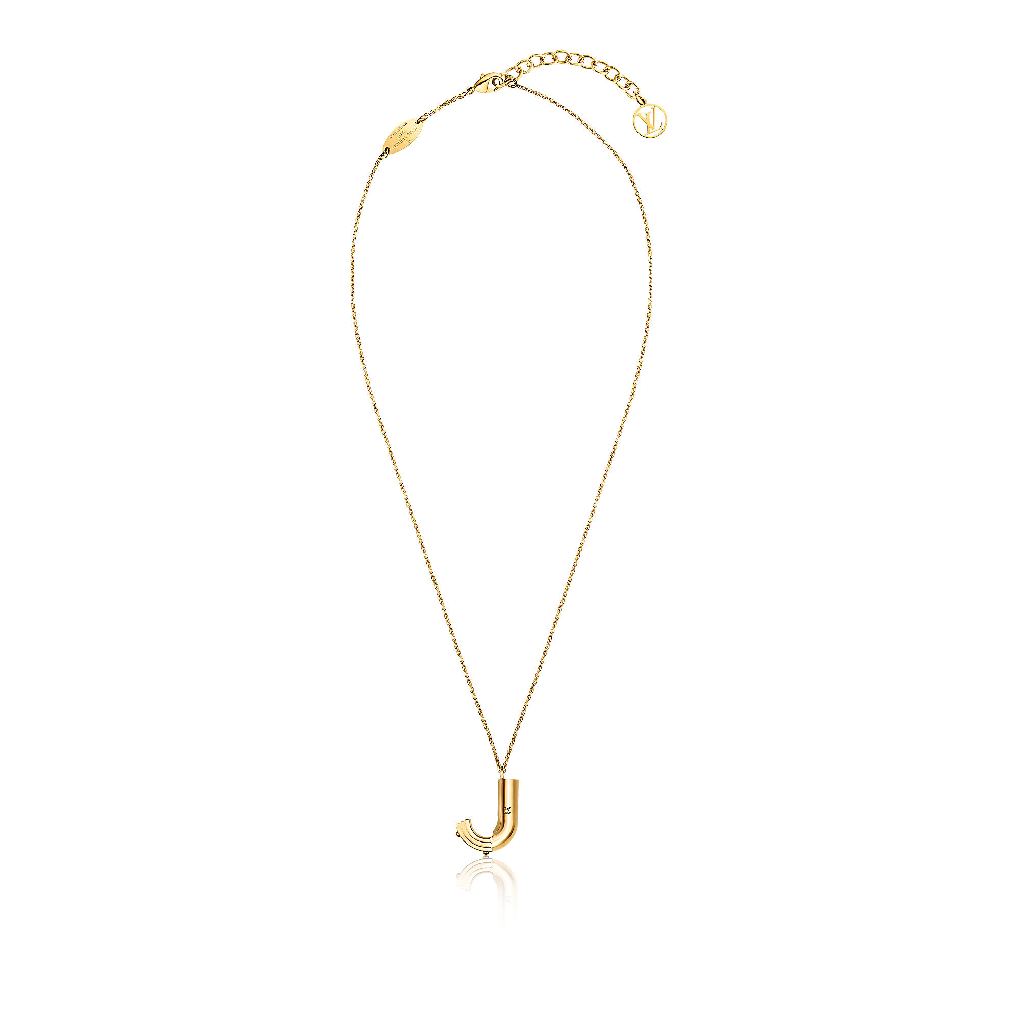 LV & Me necklace is engraved with the discreet LV hallmark. The letter ‘J’ is enriched with screws reminiscent of iconic Louis Vuitton trunks. An ideal, easy-to-match gift.