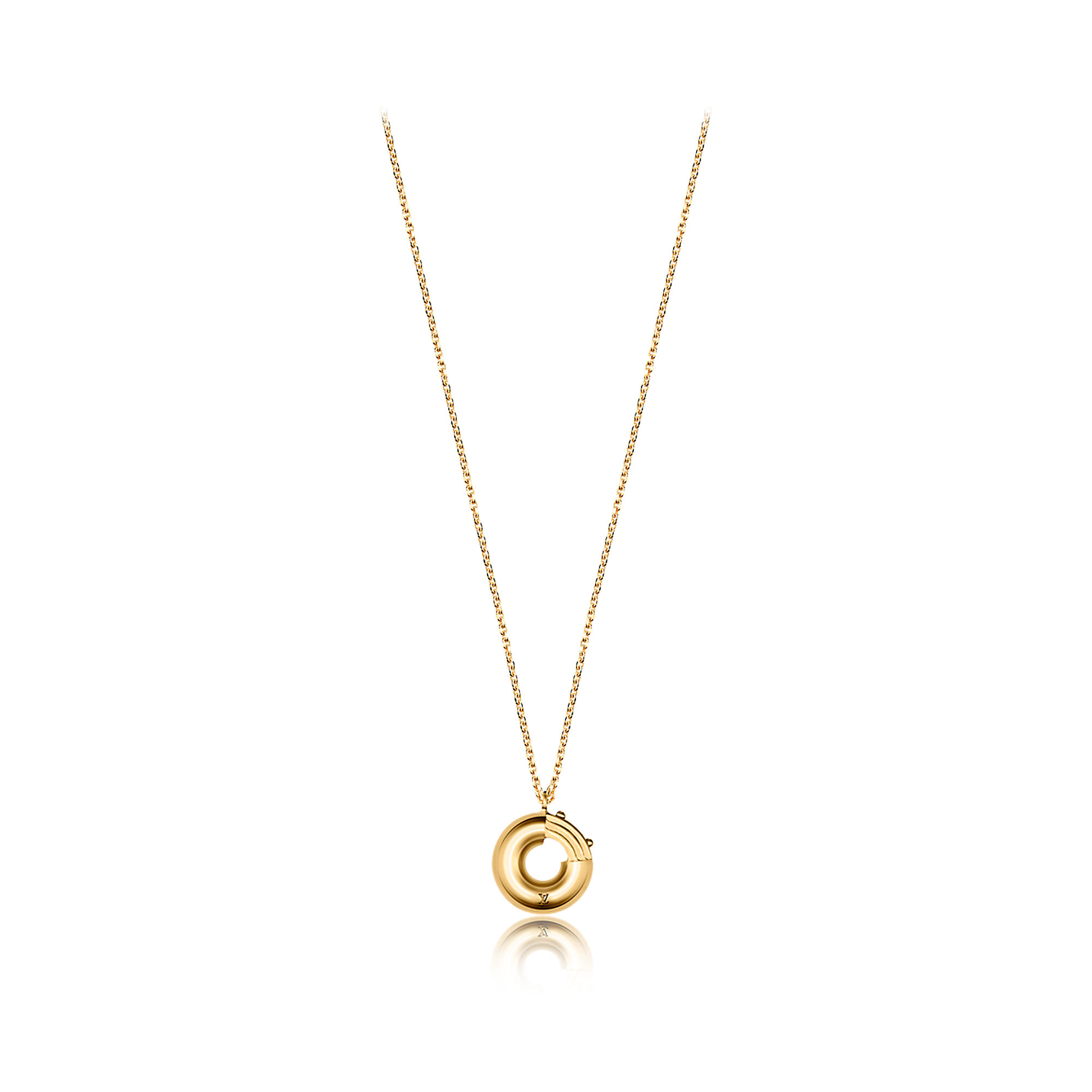 LV & Me necklace is engraved with the discreet LV hallmark. The letter ‘O’ is enriched with screws reminiscent of iconic Louis Vuitton trunks. An ideal, easy-to-match gift.