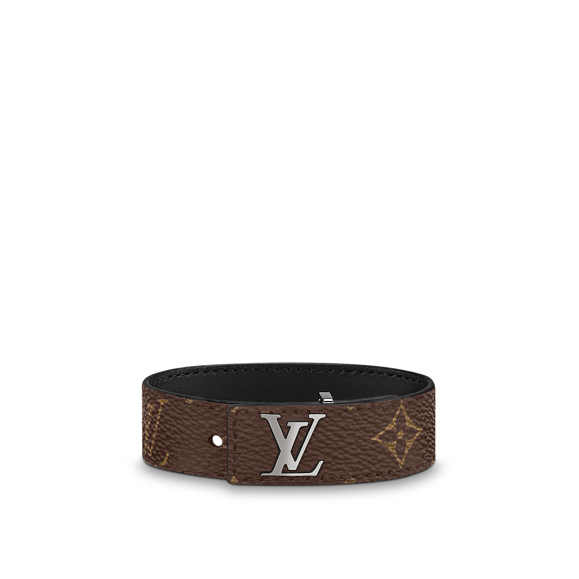 Slim and sleek, with an inlaid LV clasp that lies flush to the strap, this new masculine bracelet is offered in black calfskin, Monogram or Monogram Eclipse coated canvas. All are calf-leather lined. Easy to wear, this signature piece makes a handsome little gift.
