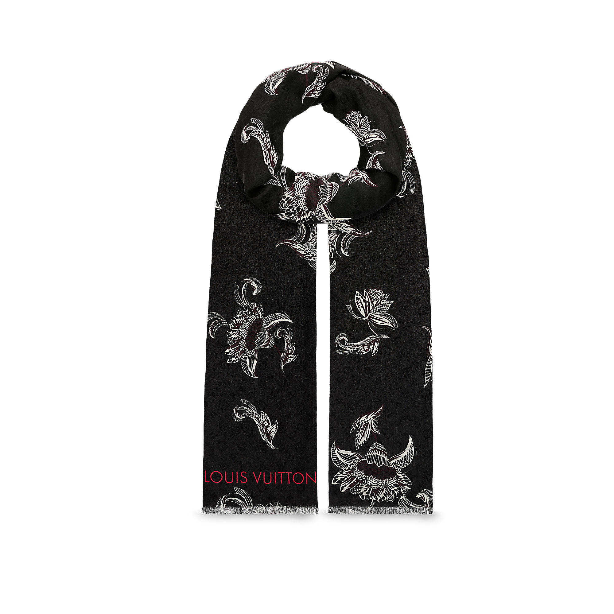 The Macro Indian Flower stole is printed with an intricately detailed floral pattern. With its generous dimensions and soft, airy blend of precious materials, it will add effortless elegance to any look.